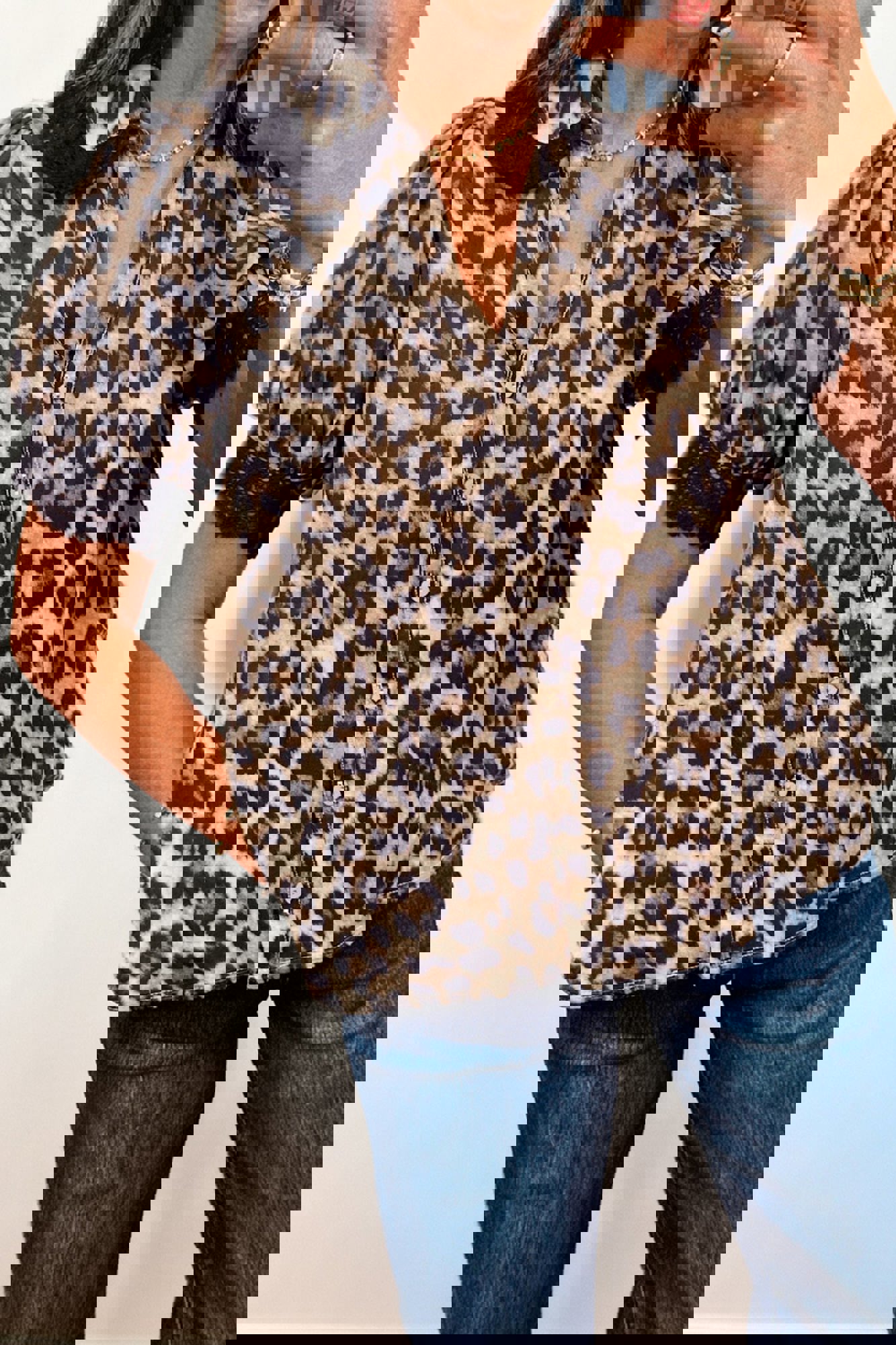 Make a statement with this shirt that effortlessly blends wild style with everyday wearability. Delicate lace trim adds a touch of feminine flair against the bold animal print, while short sleeves keep things breezy and comfortable when temperatures rise. The classic button-down silhouette means endless styling possibilities, dress it up with tailored trousers or keep it casual with your favorite jeans. Perfect for anyone ready to add some spotted sass to their wardrobe. 100% Polyester