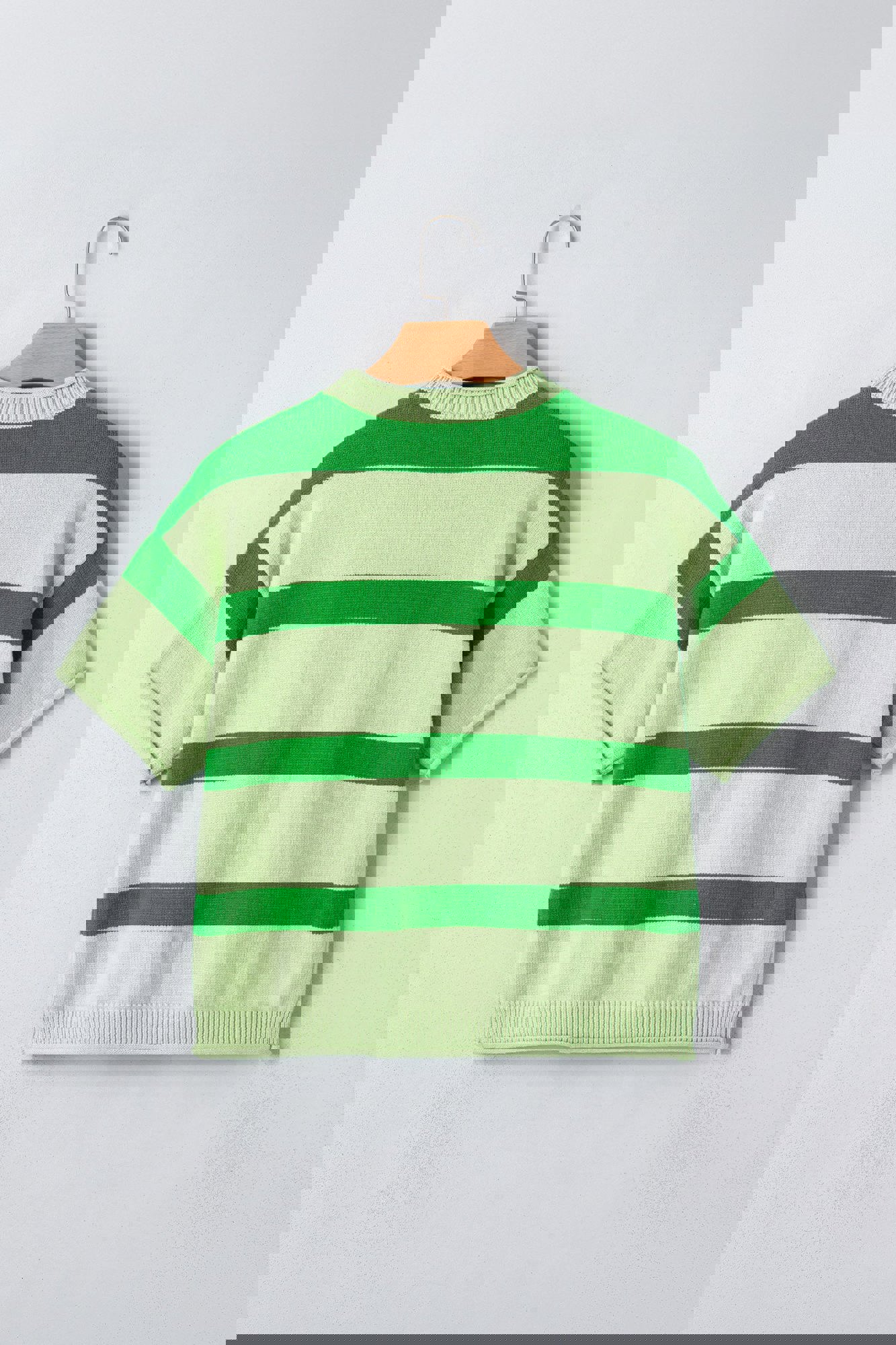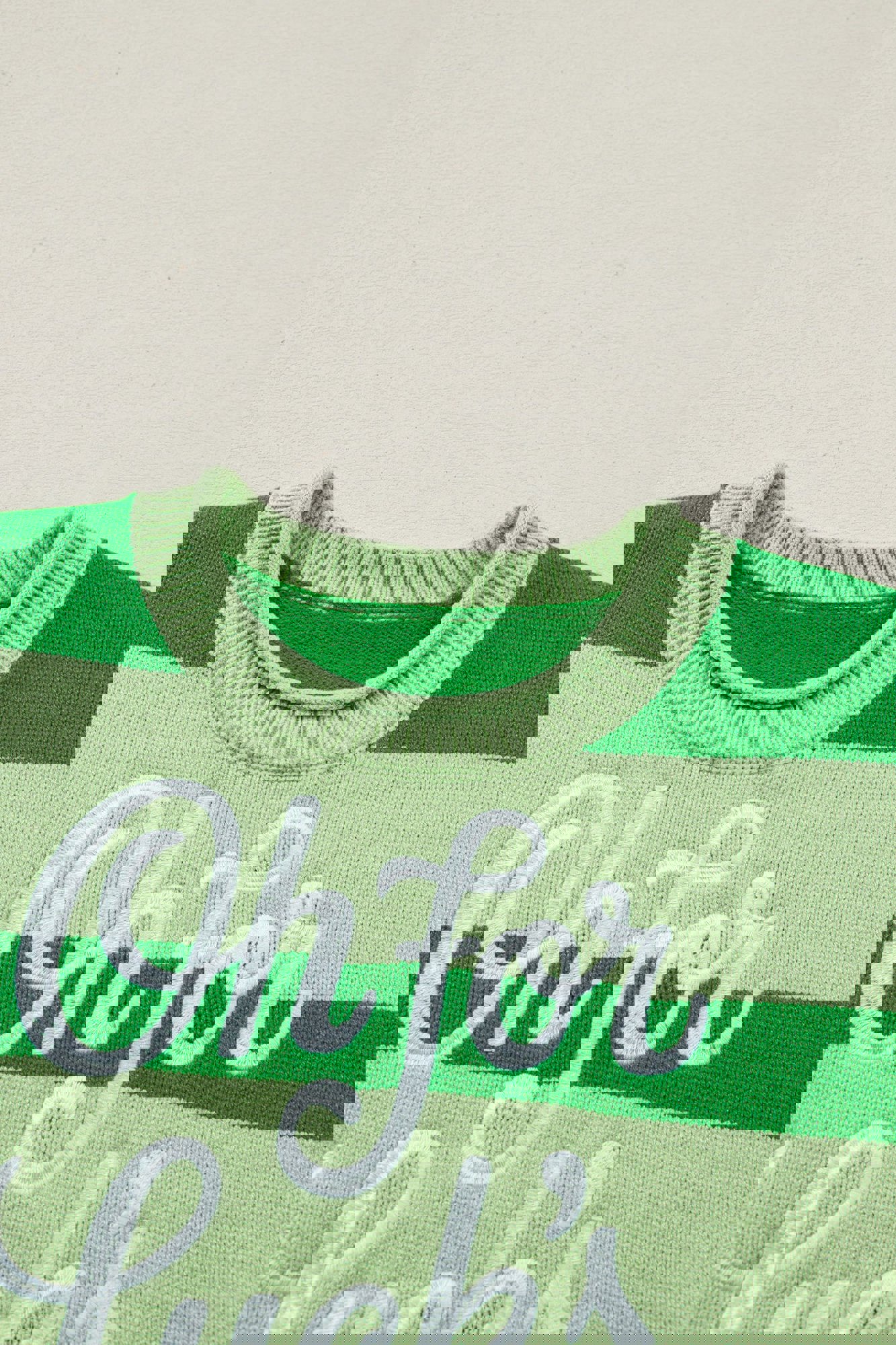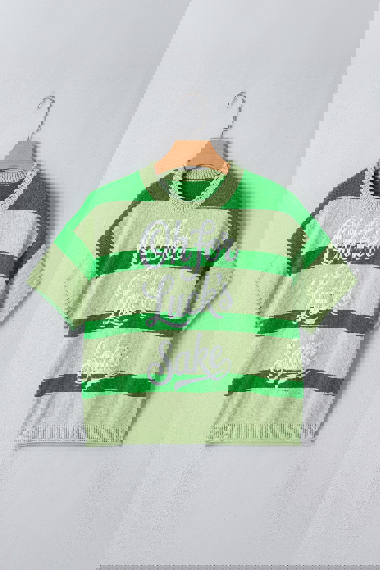 Get lucky in style with this playful striped sweater! Featuring a cheeky embroidered text design and raw edge details, it's the perfect St. Patrick's Day pick. The high-stretch, lightweight knit moves with you all day long, making it ideal for celebrations or casual hangouts. Throw it on with your favorite jeans and you're ready to spread the good vibes. Fun, comfortable, and totally festive, what's not to love? Viscose/Polyester/Poly