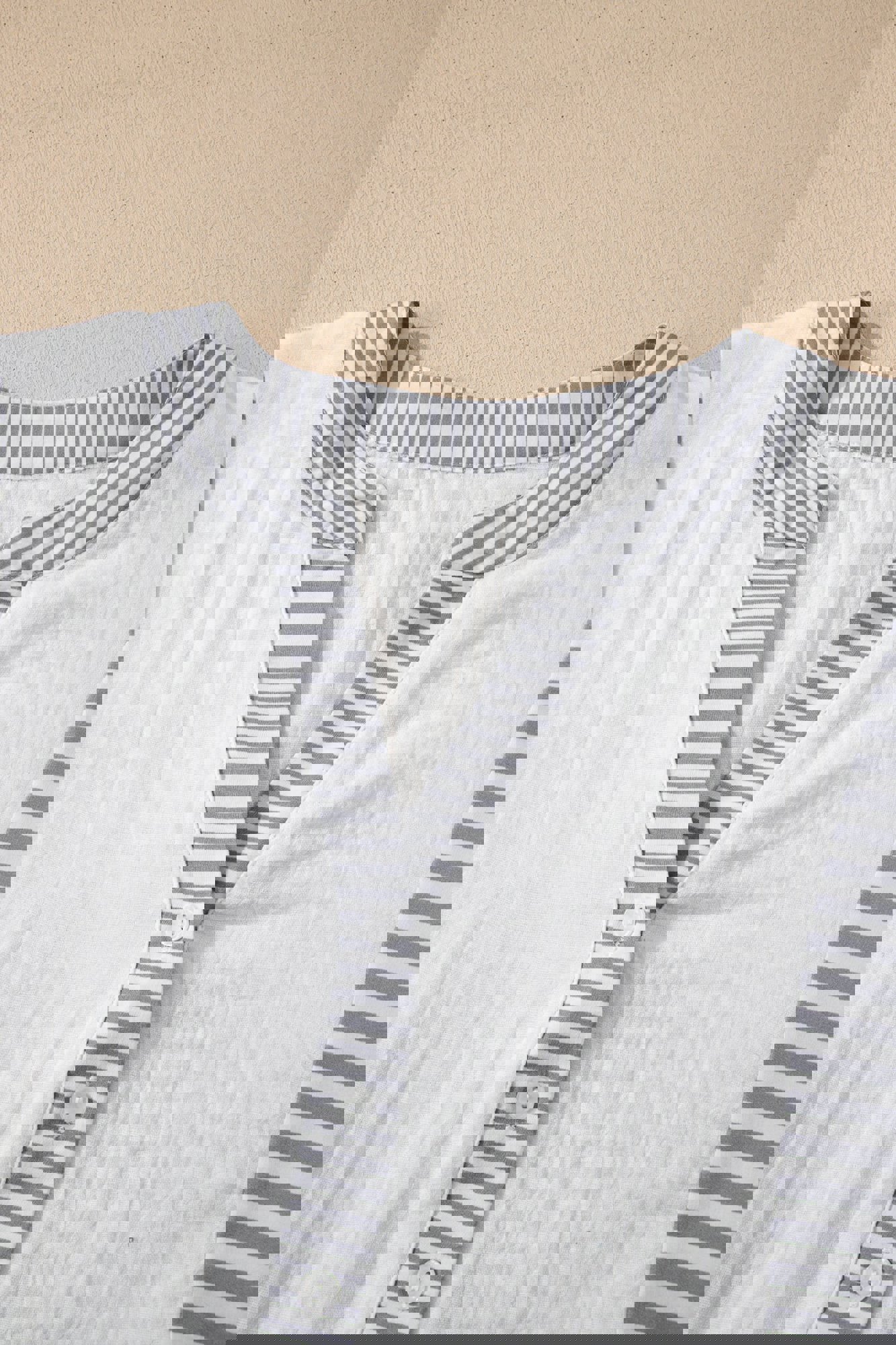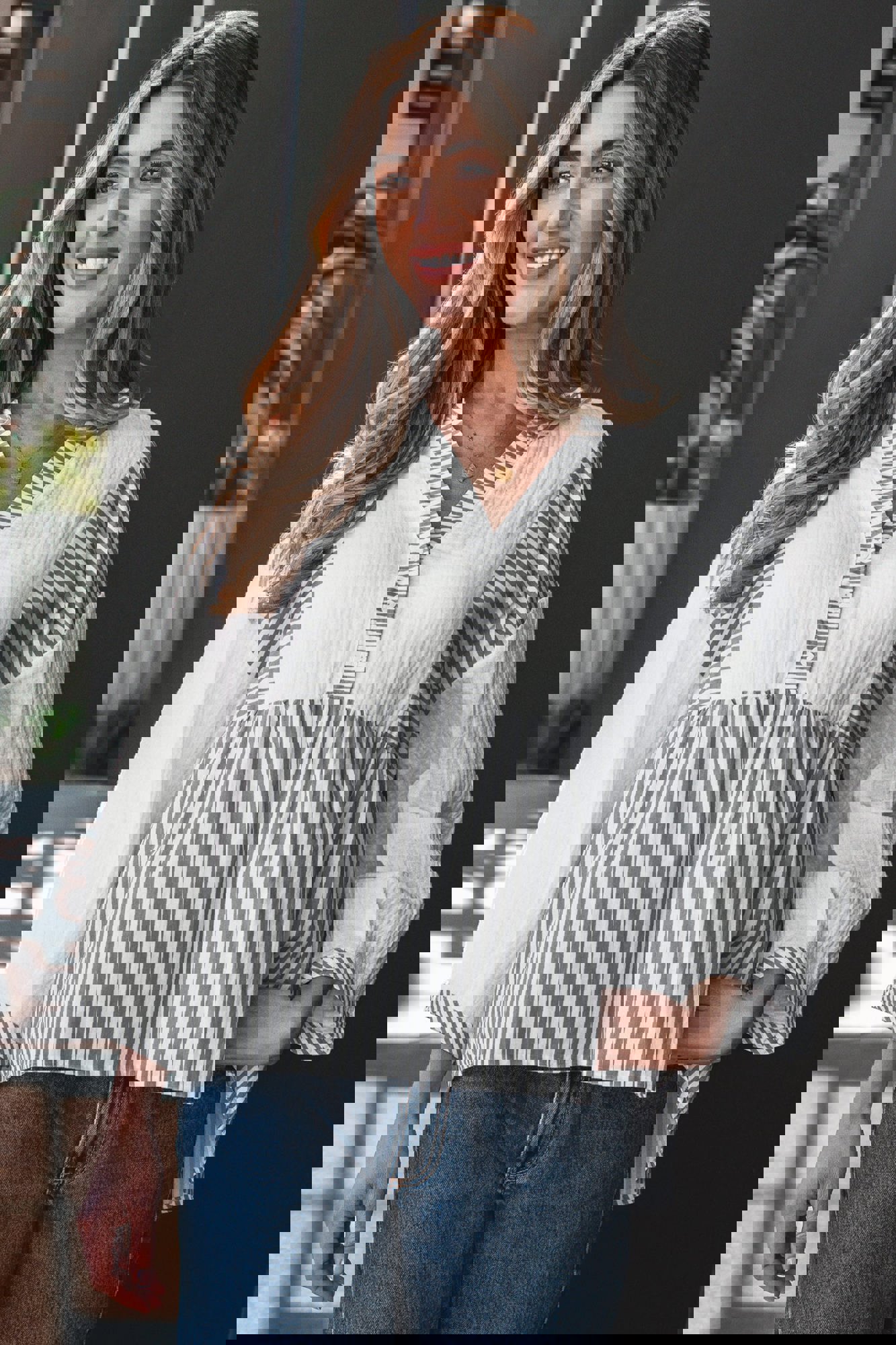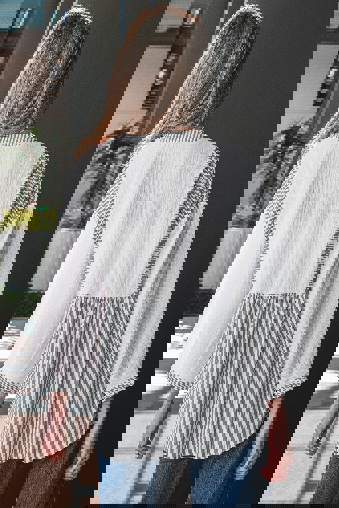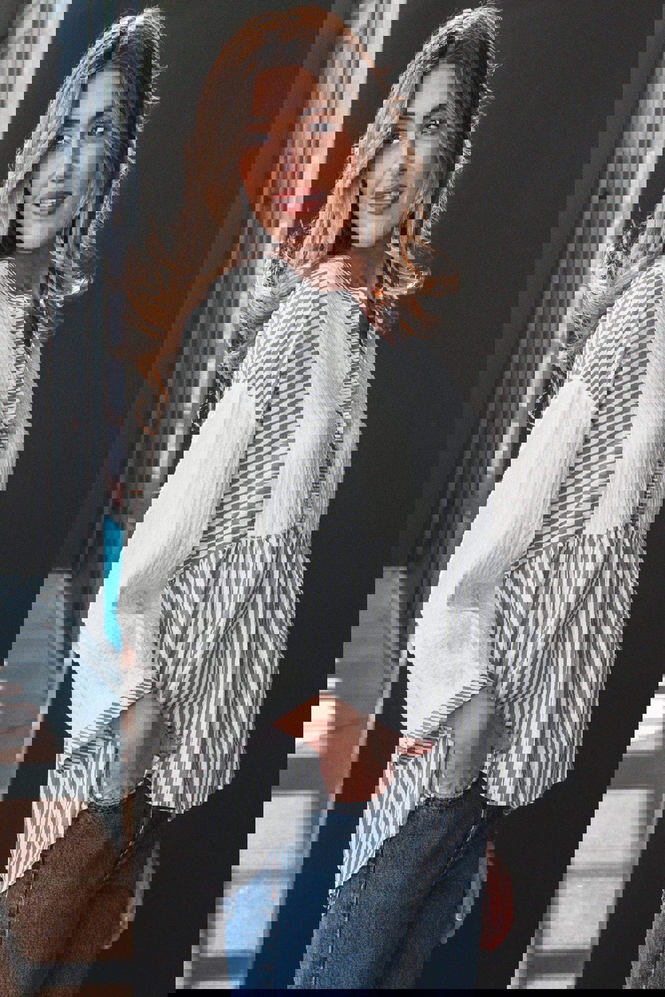 Elevate your everyday style with this charming striped blouse that brings personality to any outfit. The 3/4 sleeves and split neckline with button accents create a modern, effortless look that pairs beautifully with your go-to bottoms. Whether you're dressing up or keeping it casual, this versatile piece adds just the right amount of flair to your closet. 100% Cotton