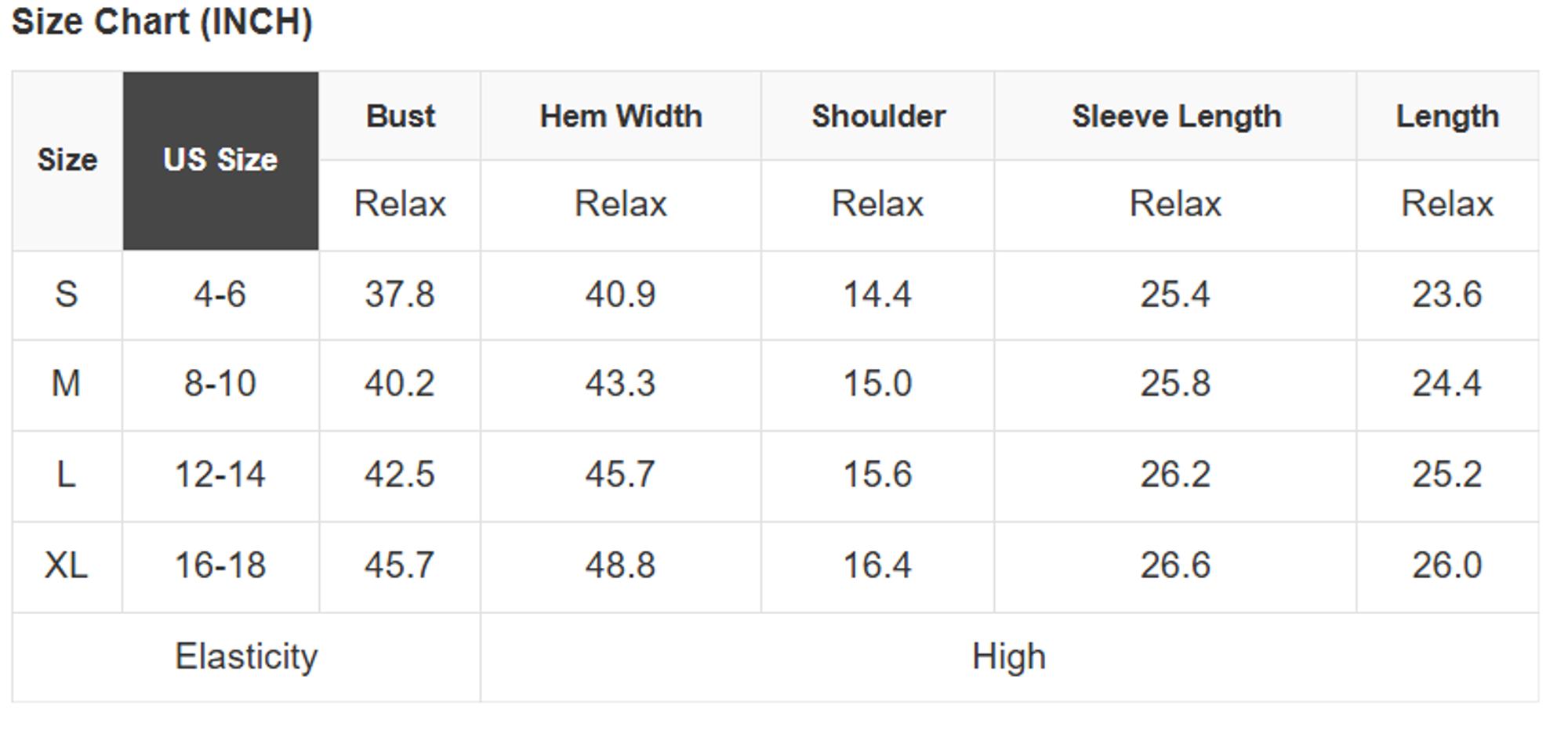 Size Info: See size chart for approximate measurements
