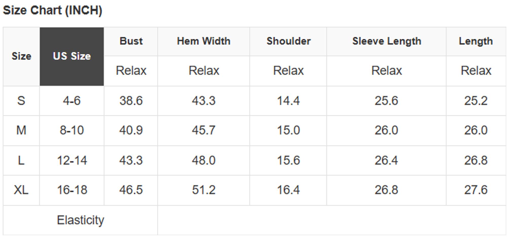 Size info: See size chart for approximate measurements.