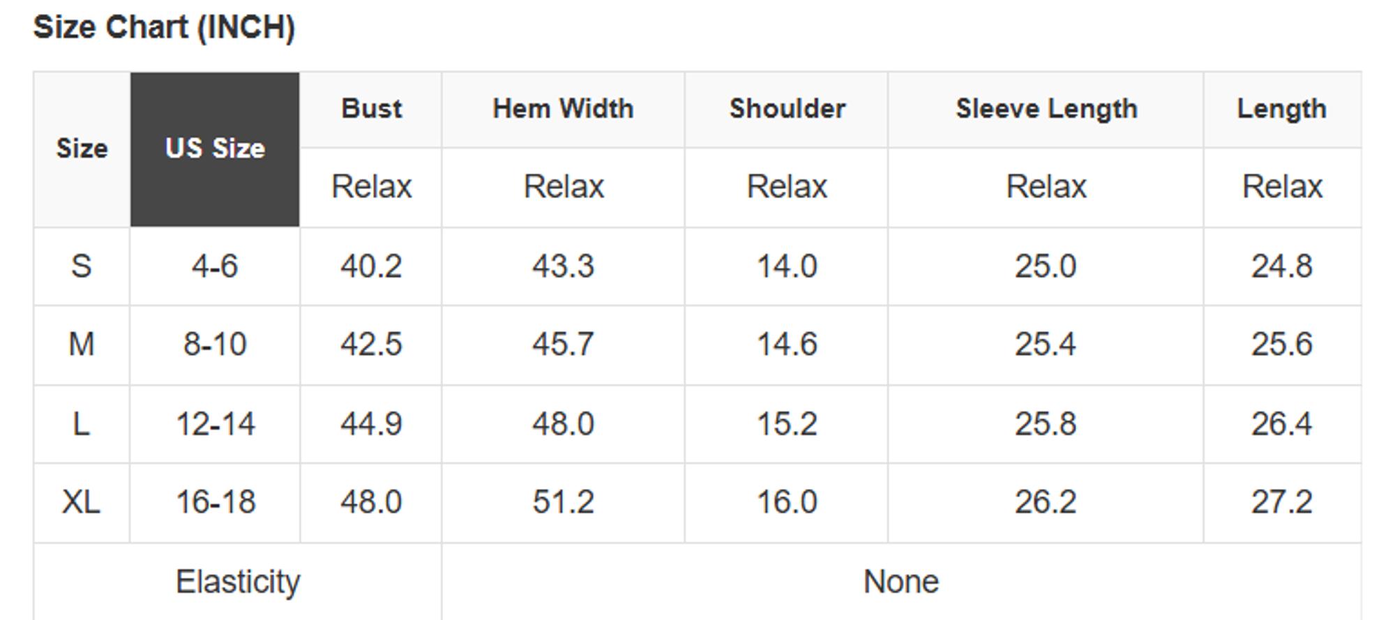 Size Info: See size chart for approximate measurements.