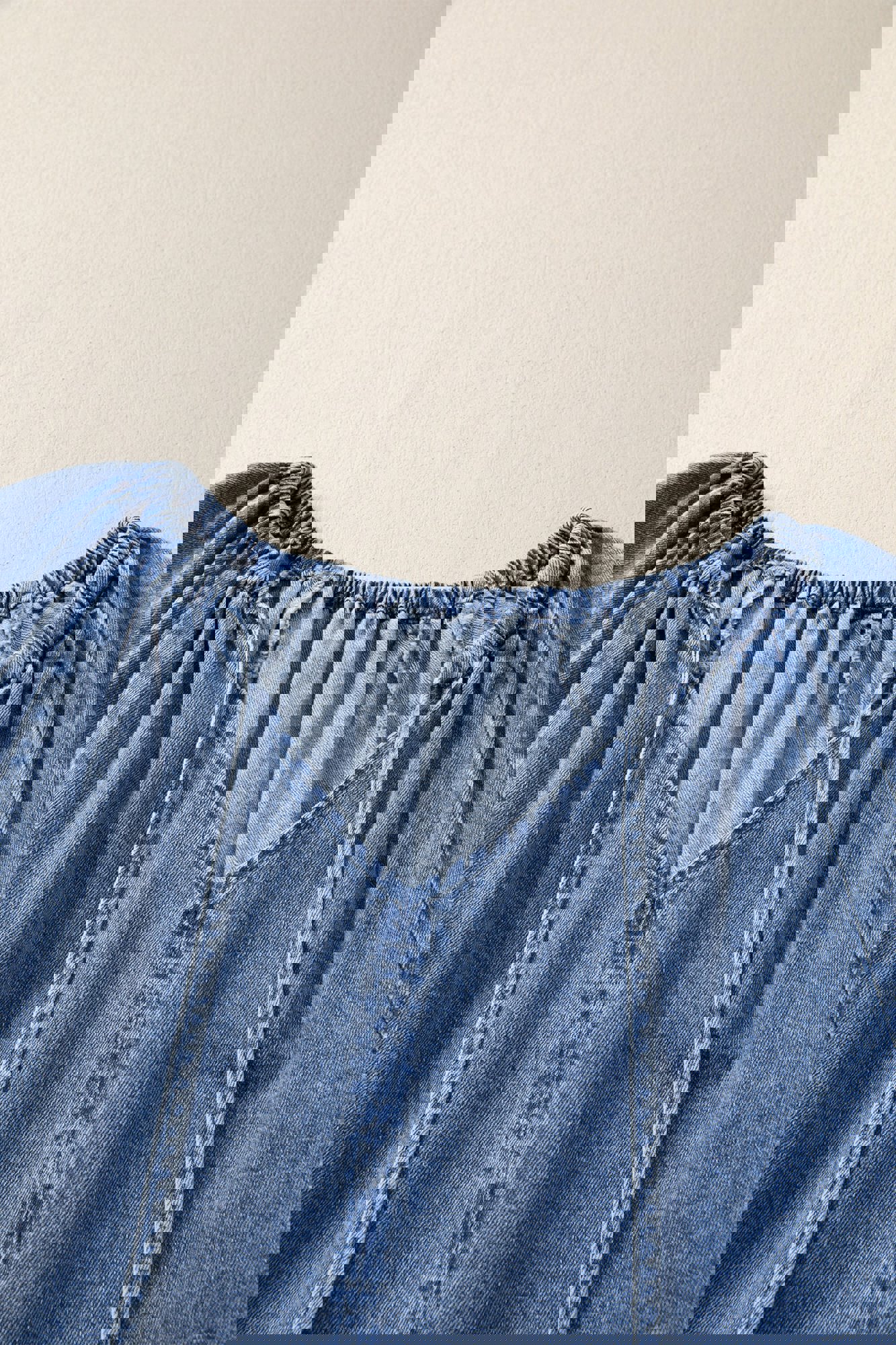 Effortlessly chic and undeniably fun, this mini dress combines timeless style with modern flair. The puff sleeves add a playful touch while the V-neckline flatters your figure with feminine elegance. Soft ruffles create graceful movement with every step, making it perfect for casual days when you want to look put-together without trying too hard. Crafted from quality denim, this loose-fitting dress is your go-to piece for weekend adventures, coffee dates, or laid-back hangouts. Cotton/Polyester