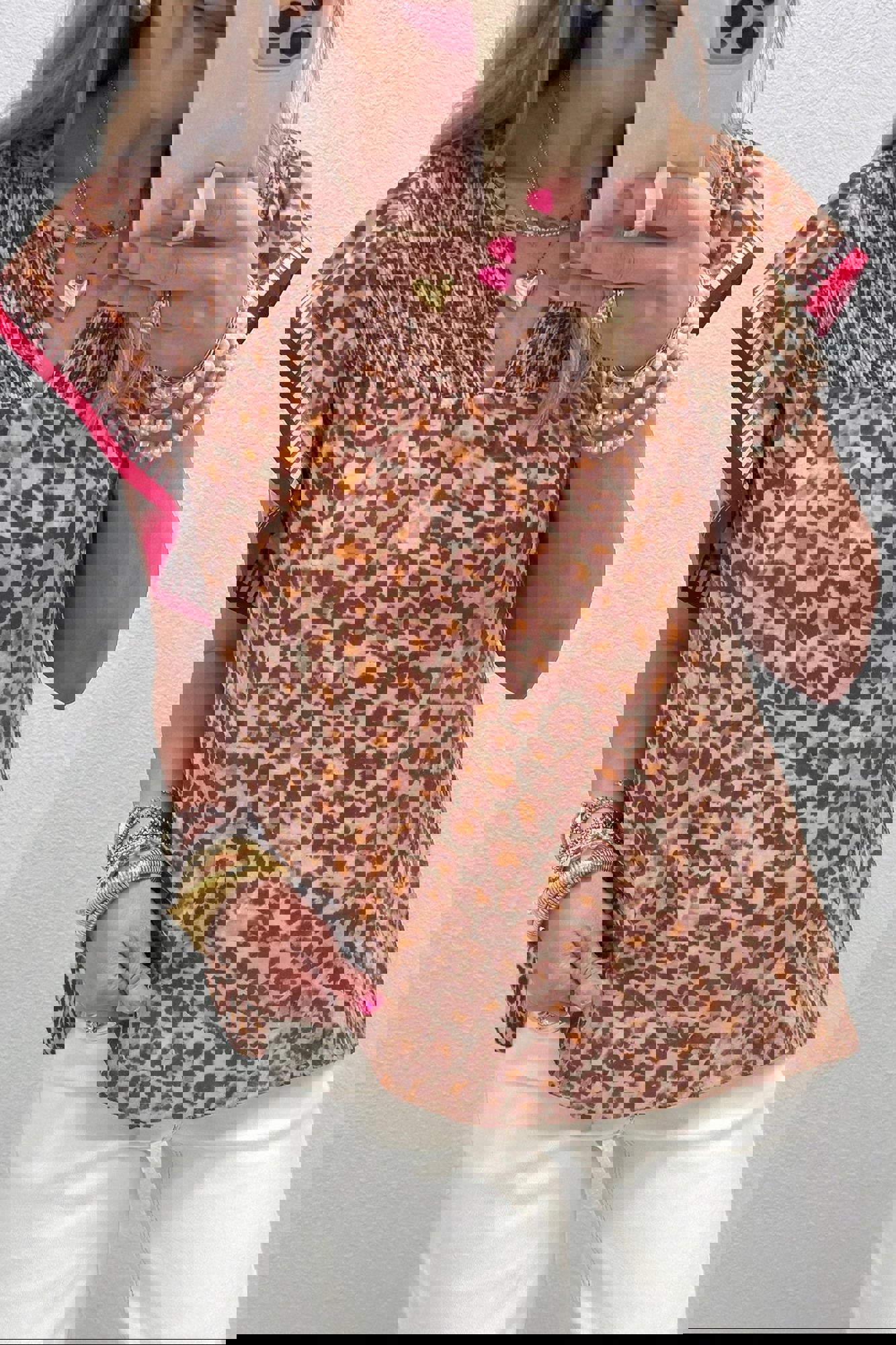 Make a statement with this blouse that effortlessly blends wild style with everyday wearability. The striking contrast trim frames the neckline and cuffs for instant visual pop, while delicate ruffled short sleeves add a flirty, feminine touch. Whether you're dressing it up for a night out or keeping it casual with your favorite jeans, this versatile piece brings that bold, on-trend energy to any outfit. Perfect for anyone ready to unleash their inner fashionista! 100% Viscose