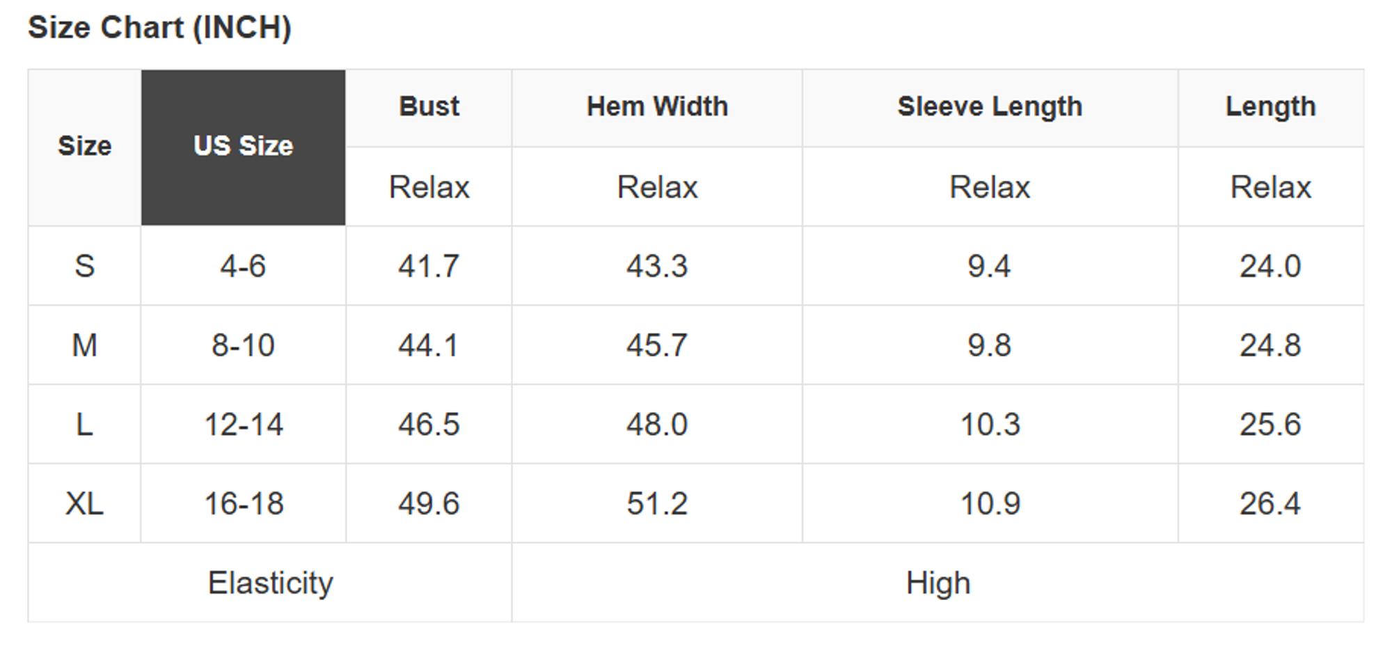Size info: See size chart for approximate measurements