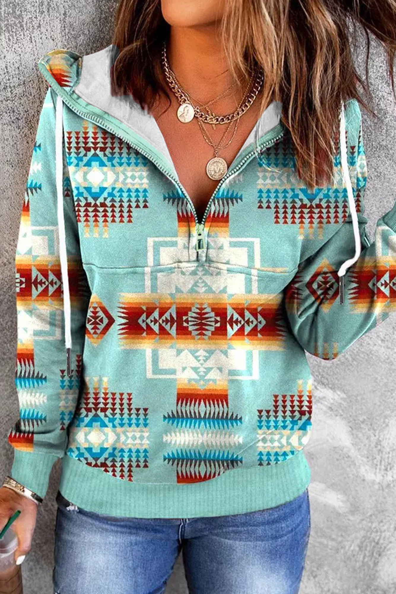 Stay cozy and cool in the Aztec Drawstring Zipper Hoodie! Featuring a vibrant Aztec pattern and an easy zipper front, this hoodie is perfect for layering on chilly days or adding a splash of style to your casual look. The adjustable drawstring hood keeps you comfy, while the soft fabric feels great all day long. Whether you're out exploring or just lounging around, this hoodie brings a fun, laid-back vibe to your wardrobe.