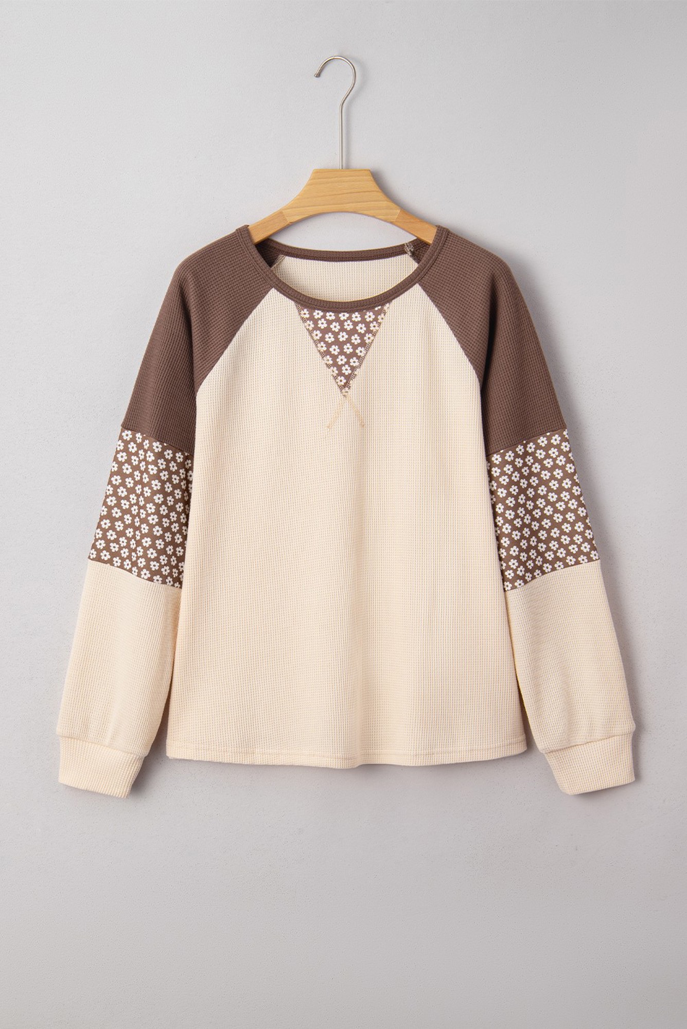 Embrace cozy autumn days with this playful Floral Print Patchwork Color Block Long Sleeve Top. Its warm brown tones and vibrant patchwork design bring charming fall vibes to your wardrobe. Perfect for layering on crisp days, this top adds a fun, cheerful touch to any casual outfit while keeping you comfortable and stylish all season long.
