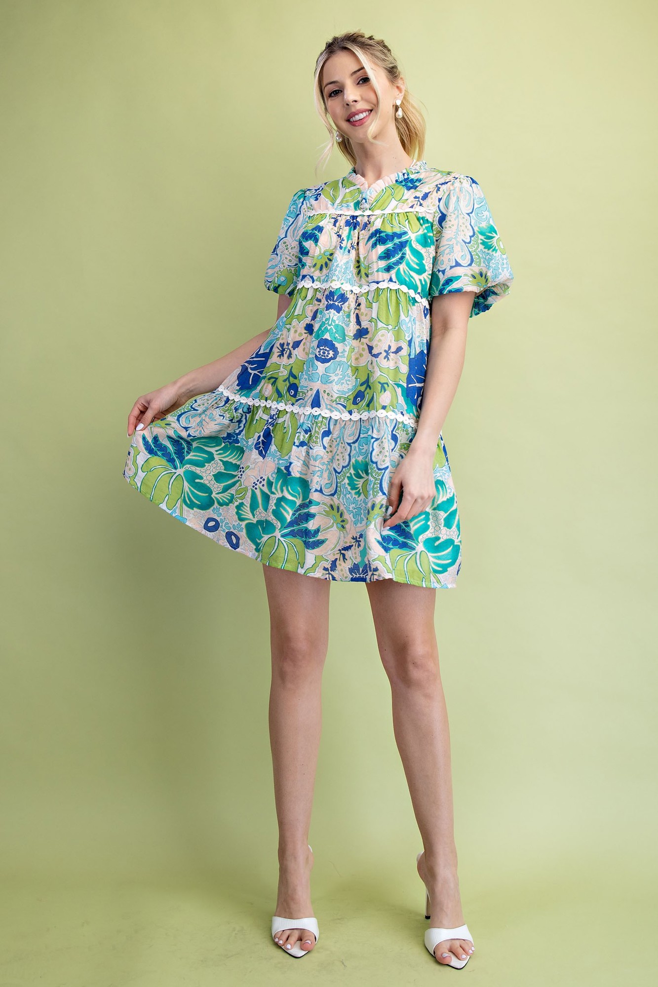 Twirl into spring in this charming Little Miss Summer Mini Dress that captures the essence of fresh-air style. Layered ruffles create movement and dimension, while soft blues and greens evoke the season's natural palette. Perfect for garden parties, casual outings, or whenever you want to feel effortlessly put-together. The playful silhouette flatters all figures and pairs beautifully with sneakers or sandals for an easy, breezy vibe.