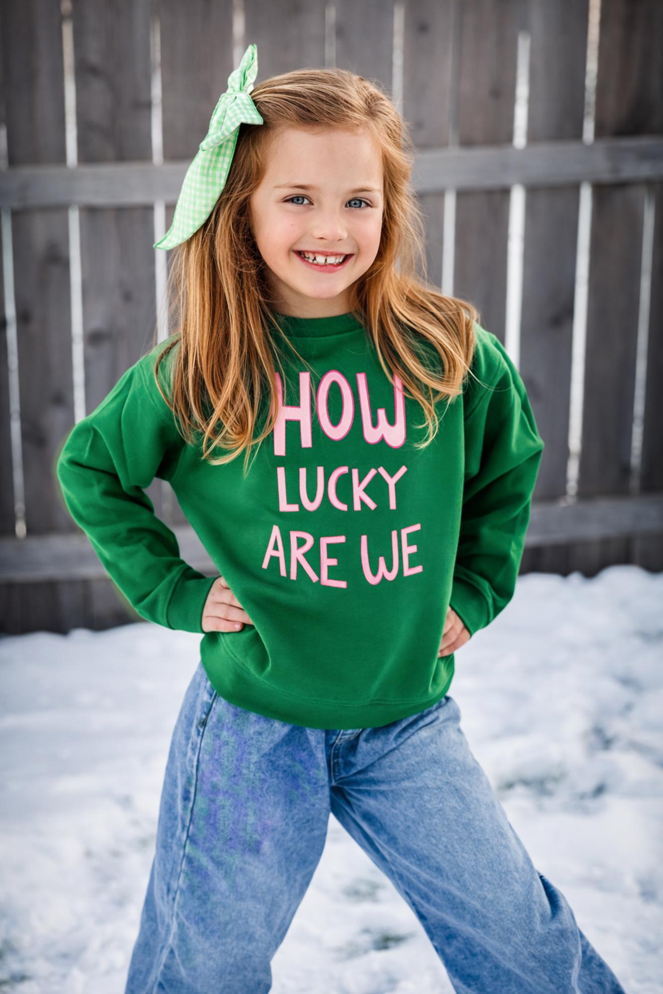 St. Patrick’s Day Girls Sweatshirt | How Lucky Are We Matching Sister & Best Friend Crewneck (Toddler Youth)