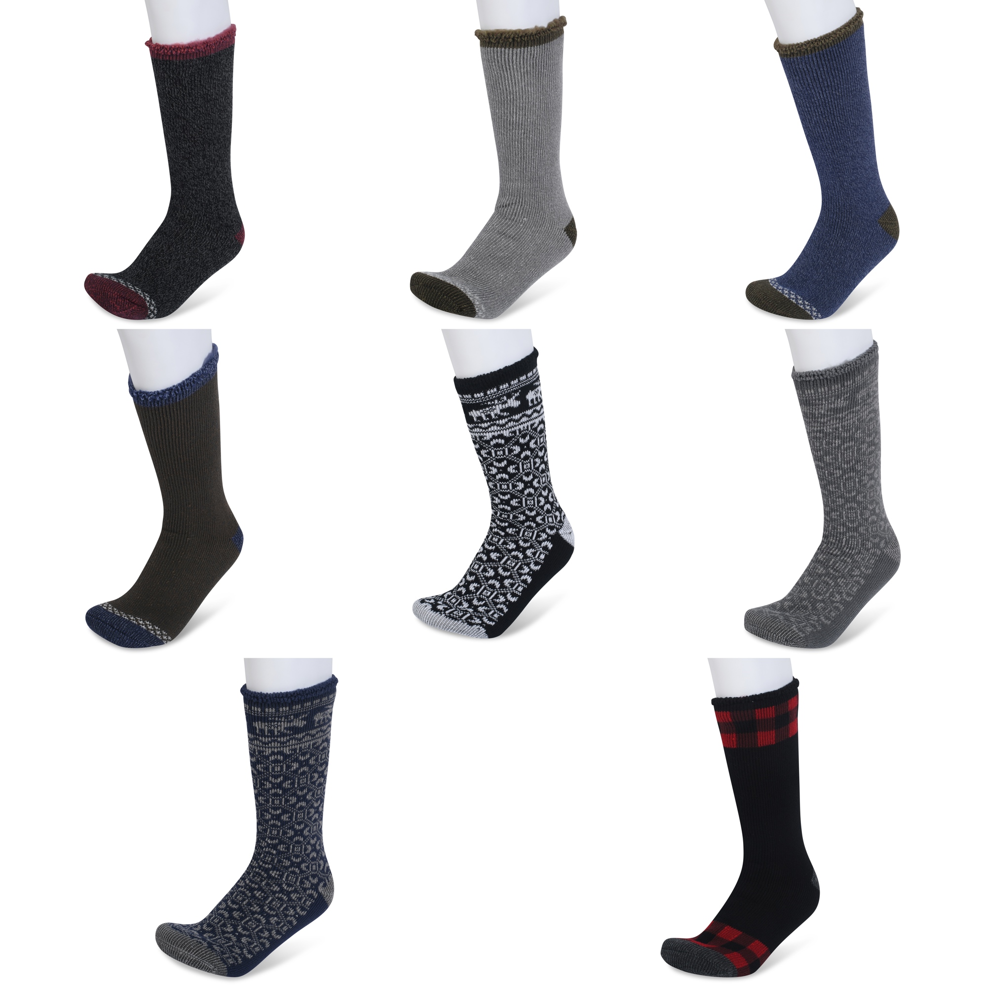 Mens thermal insulated socks. inside is 4x brushed for warmth and comfort. moisture wicking yarns keep your feet dry. added nylon in toes and heels for durability. non binding top. Great for lounging around the house. These will become your new favorite socks