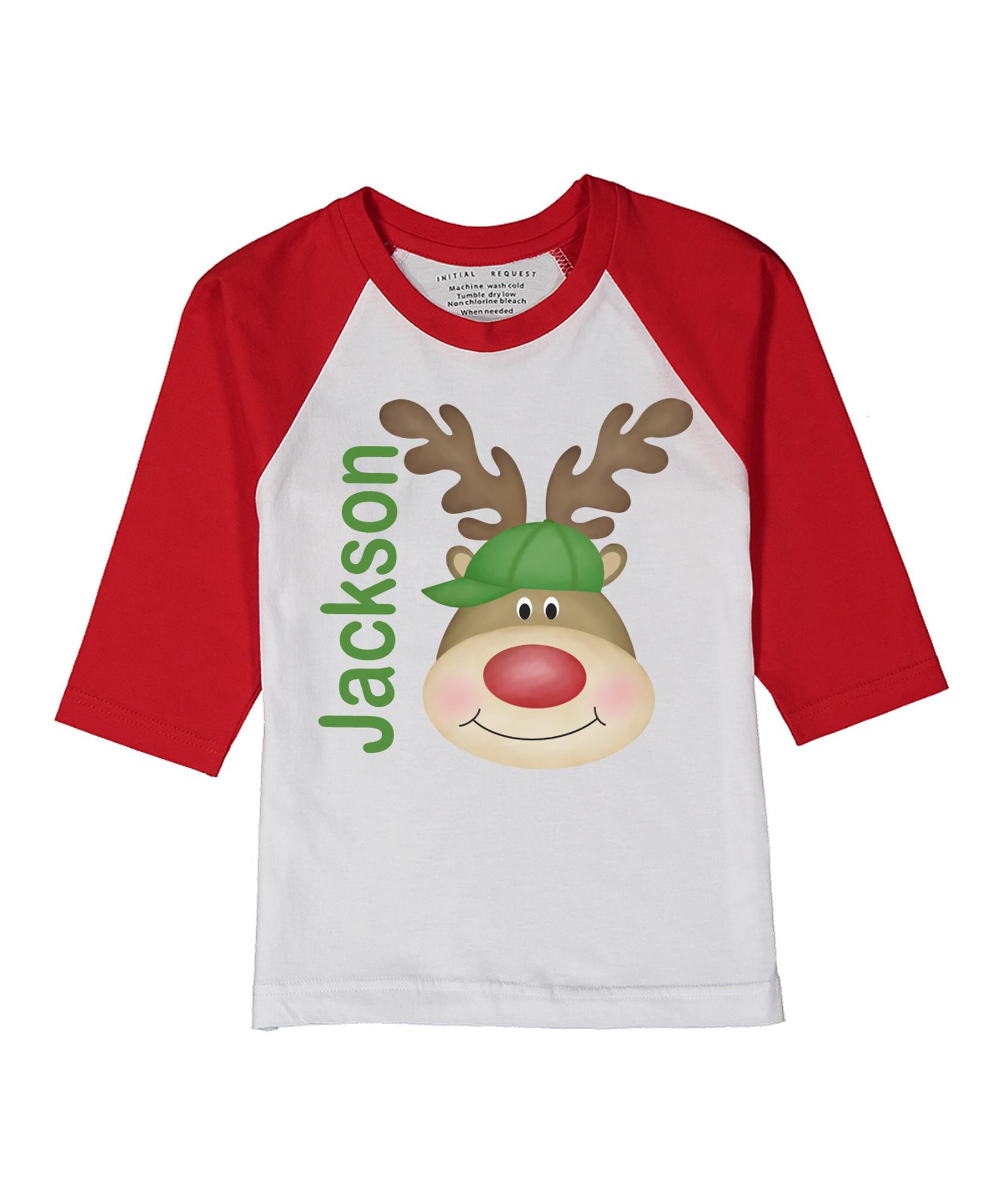 Christmas Graphic Tee | Rudolph Graphic | Red Raglan Holiday Tee | Personalized Christmas Tee for Kids