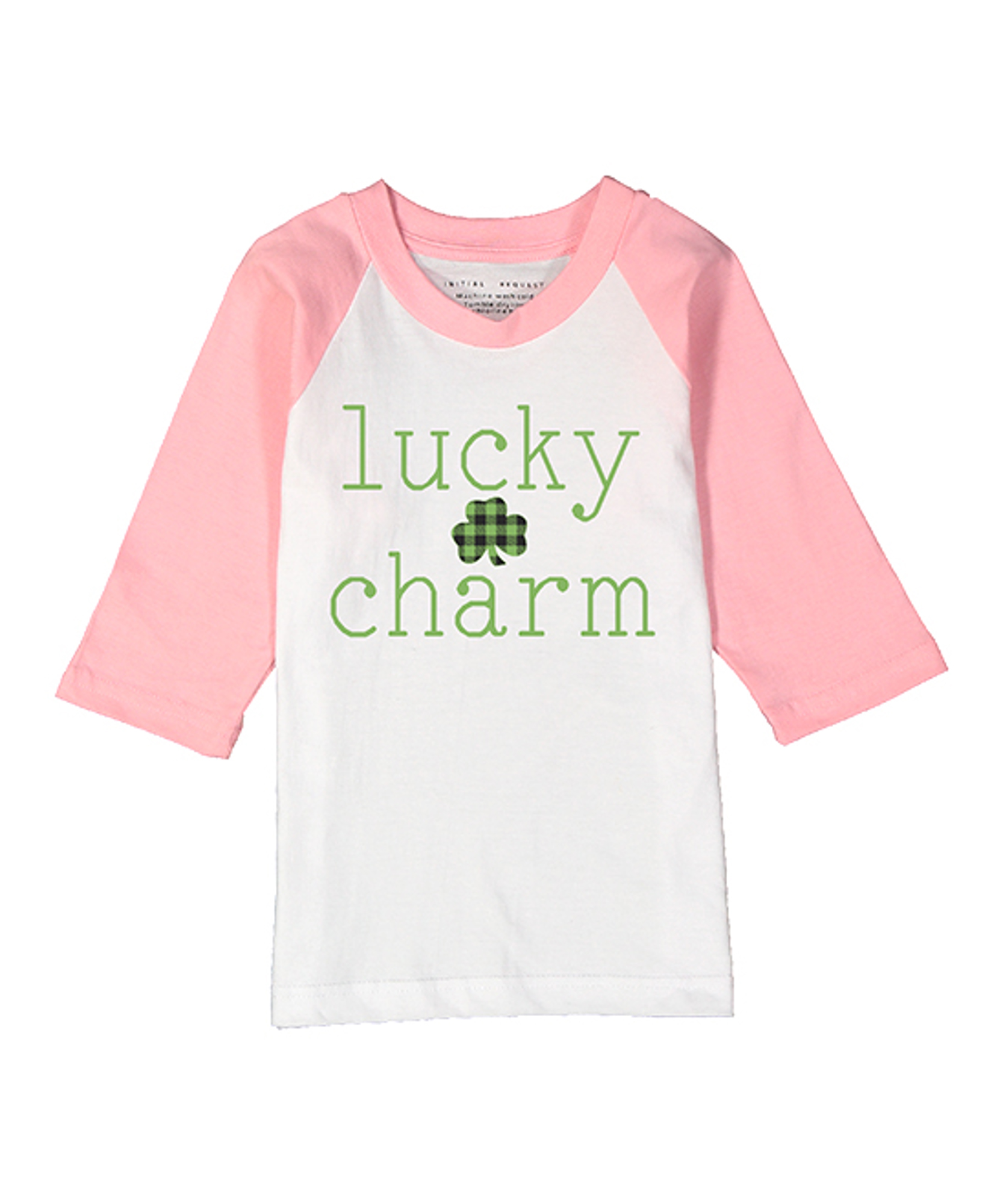Lucky Charm | St. Patrick's Day Graphic Tee | Pink Raglan Tee for Girls