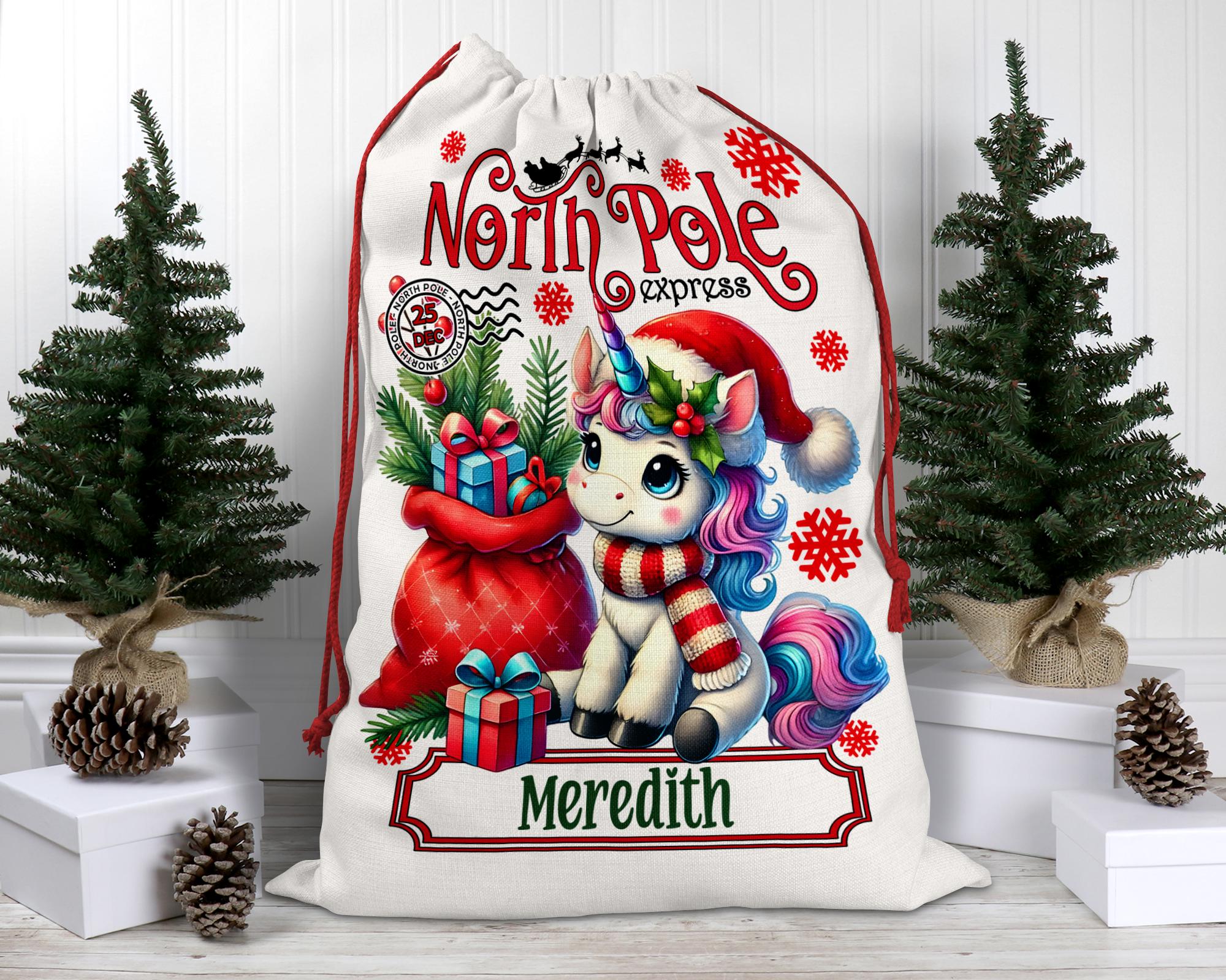 Personalized Unicorn Santa Sack – North Pole Express Gift Bag