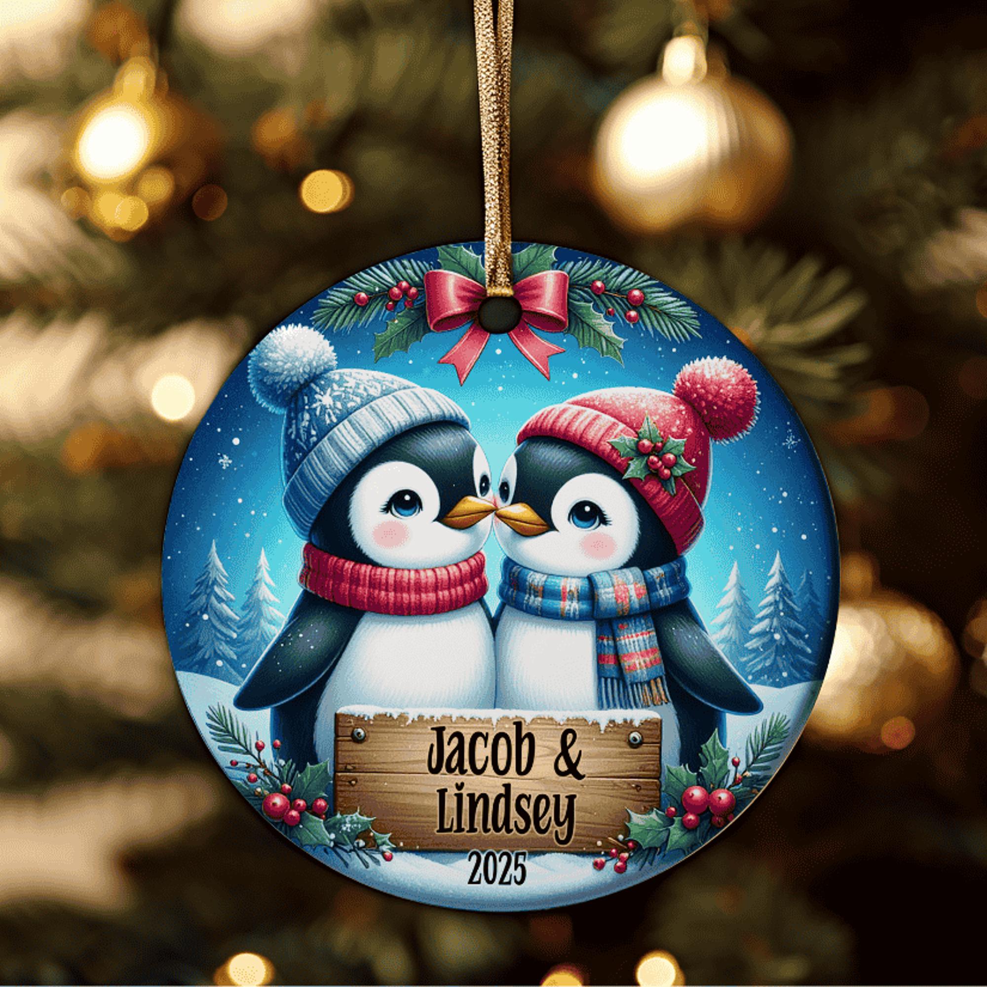Celebrate your love this holiday season with a personalized penguin couple ornament — custom names & year make it a keepsake you’ll cherish forever! ✨🎁