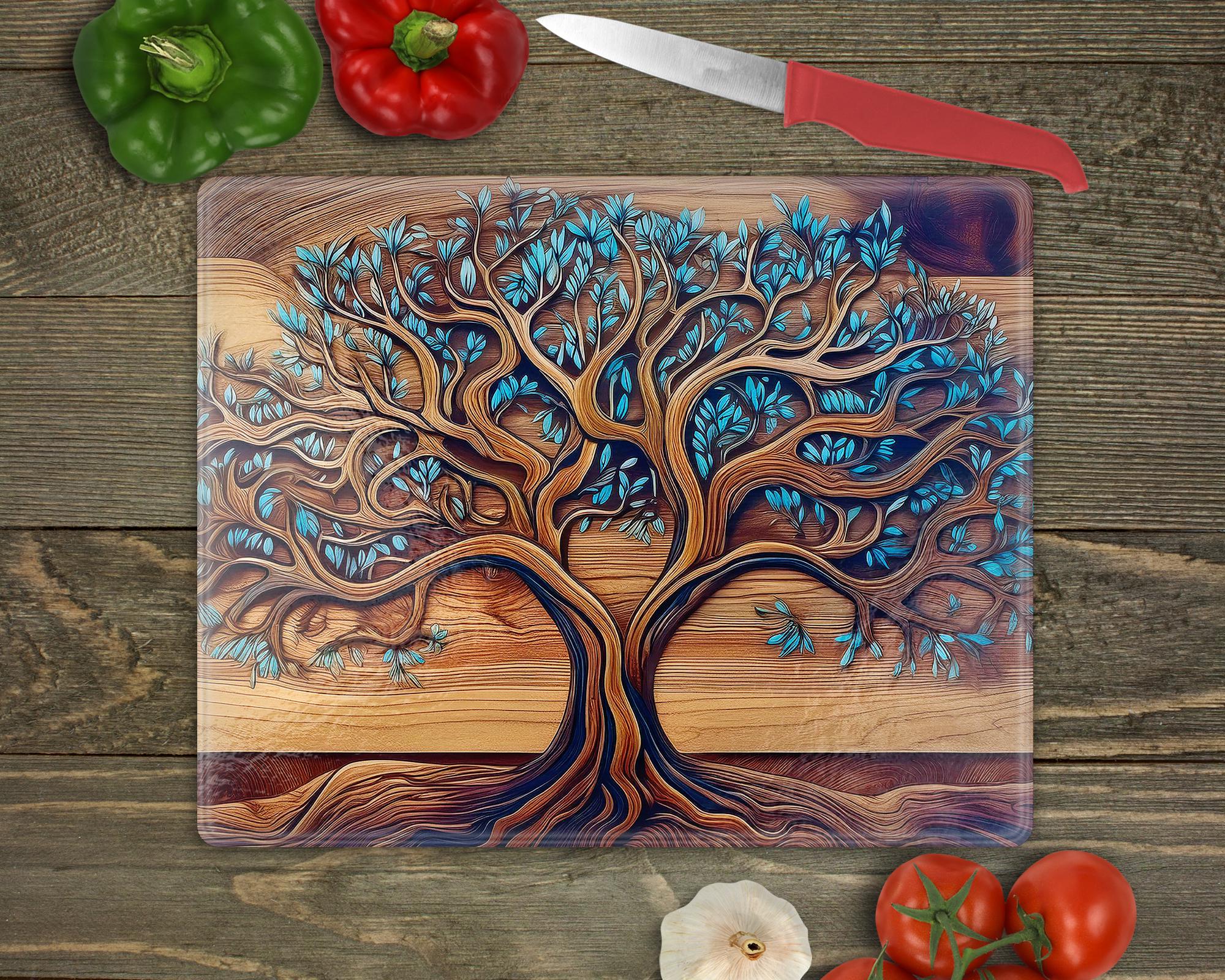 Personalized Tree Of Life Tempered Glass Cutting Board, Serving Board, Wedding Bridal Shower, Housewarming Gift Gift,