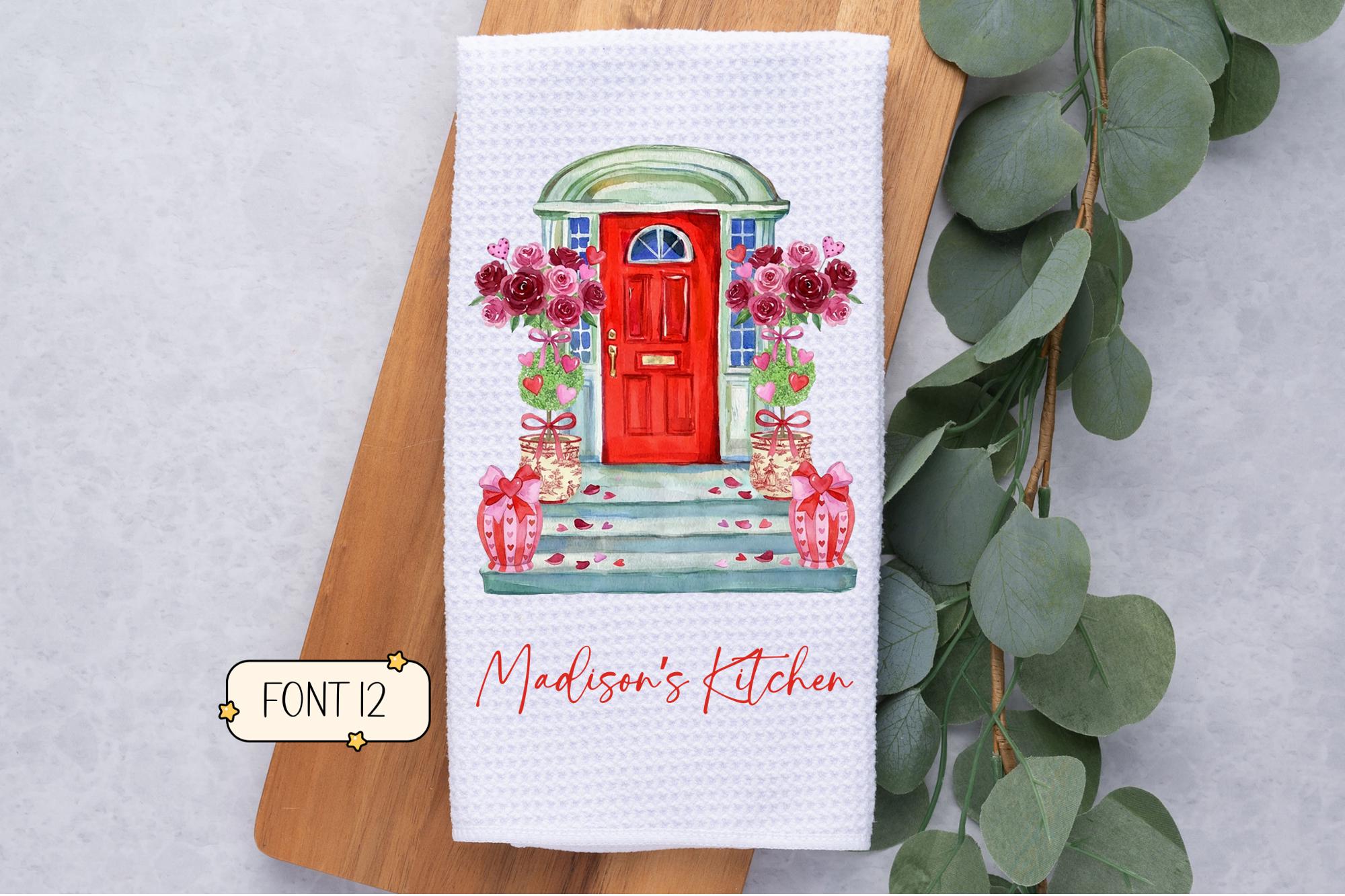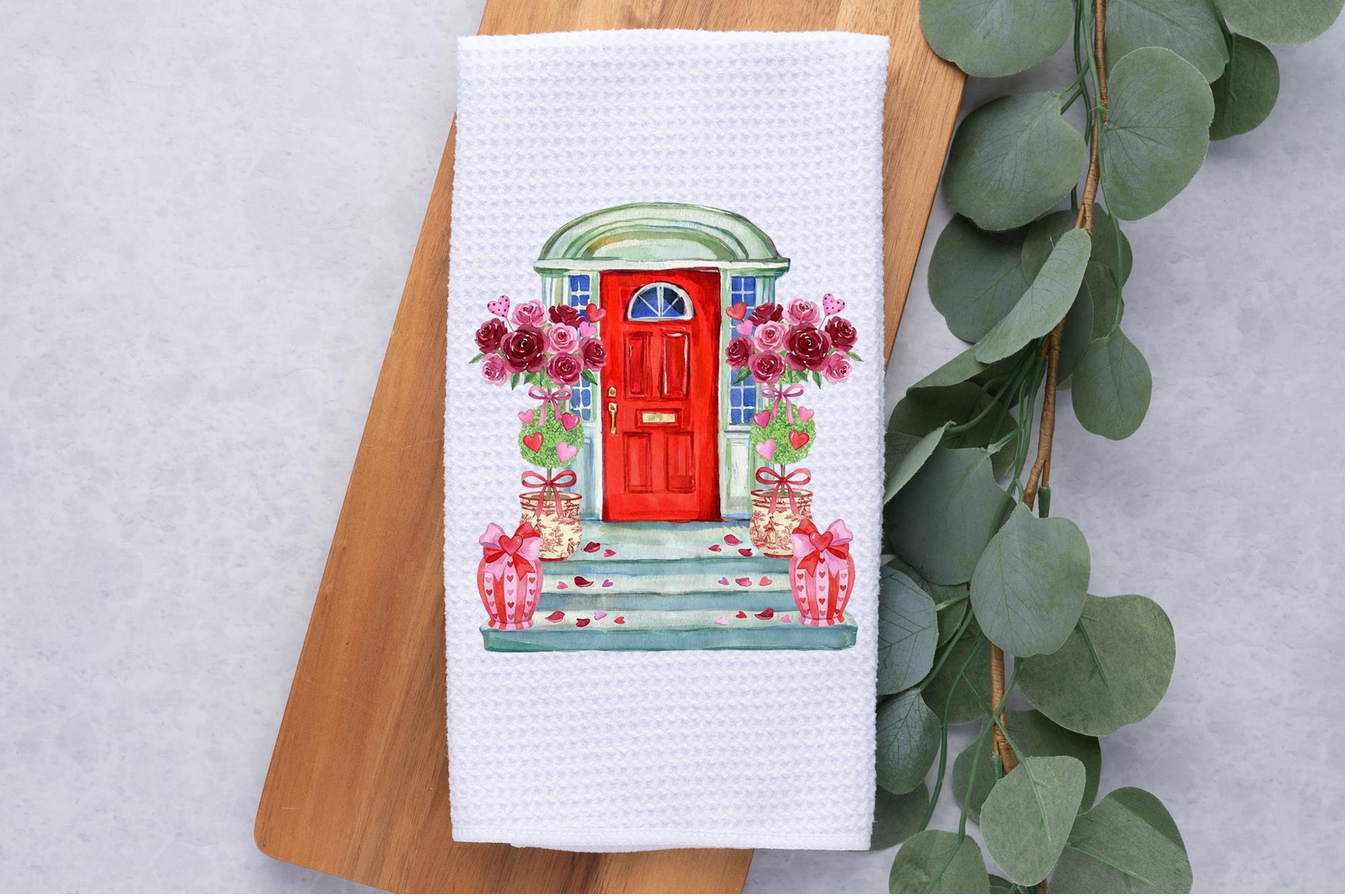 Personalized Valentine's Day Front Door Waffle Weave Kitchen Towel, Valentines Kitchen Decor, Hostess Housewarming Gift