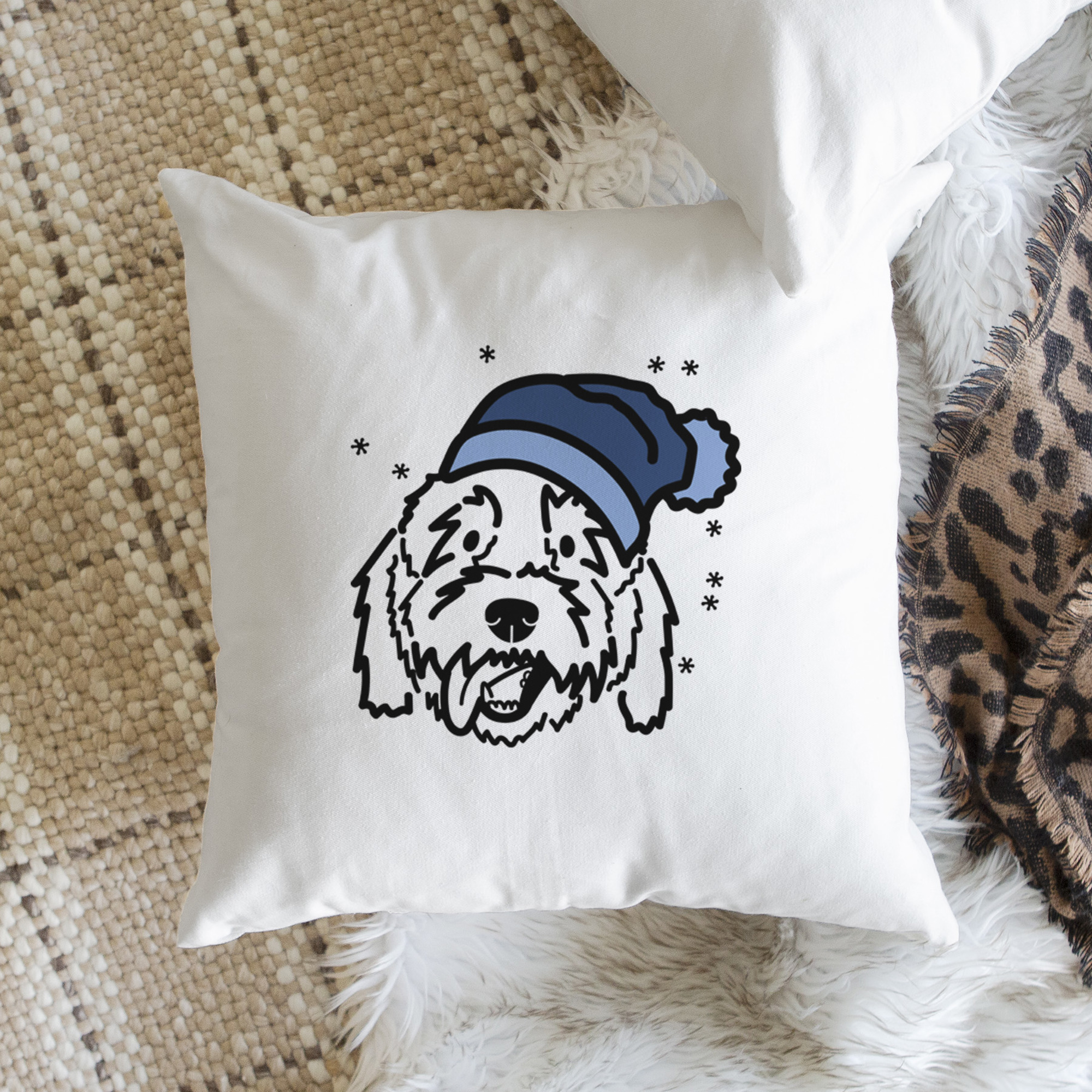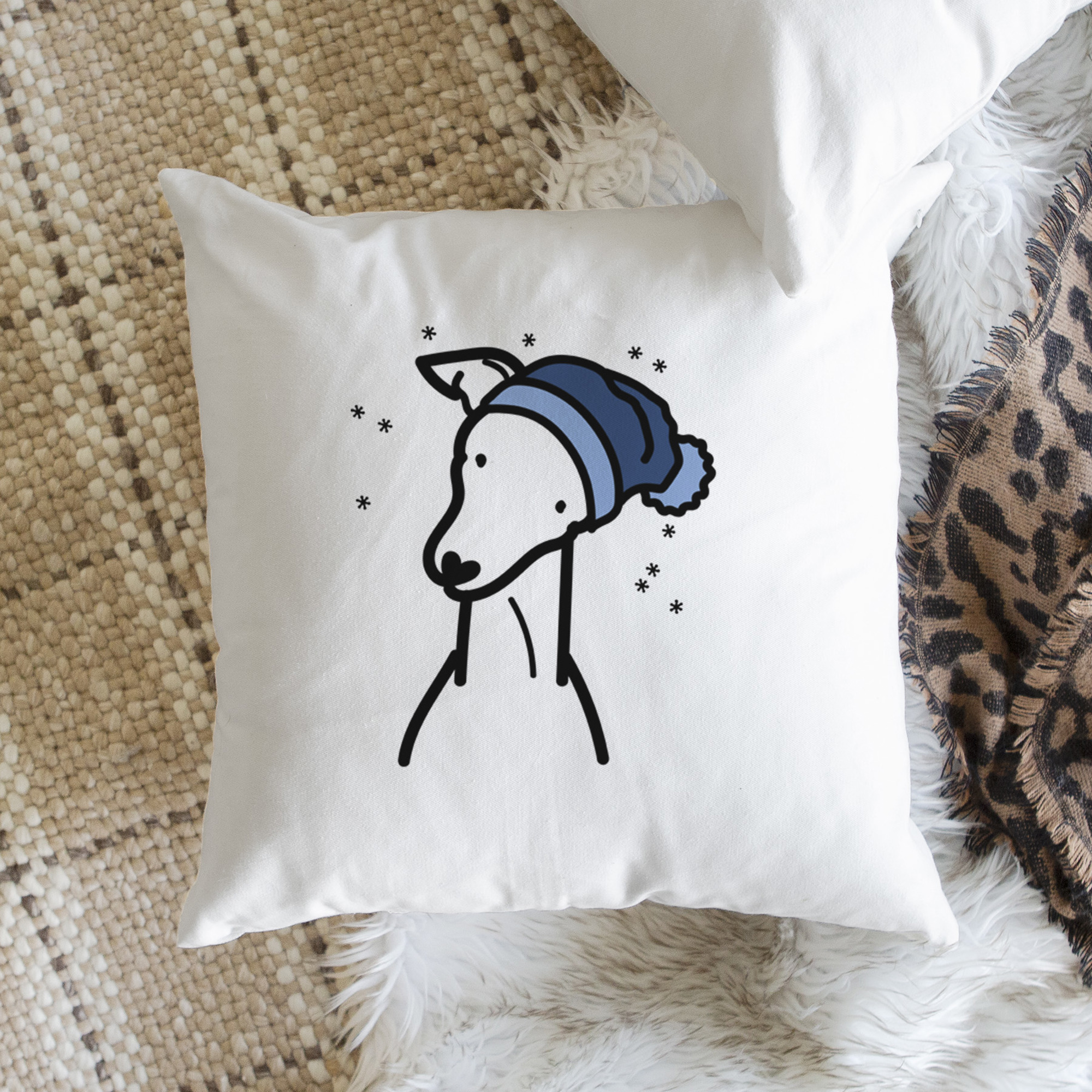 Beanie Winter Dog Breed Throw Pillow Cover -50+ Breeds