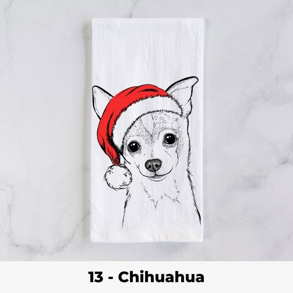 Santa Hat Christmas Dog Tea Towel - 25+ Breeds