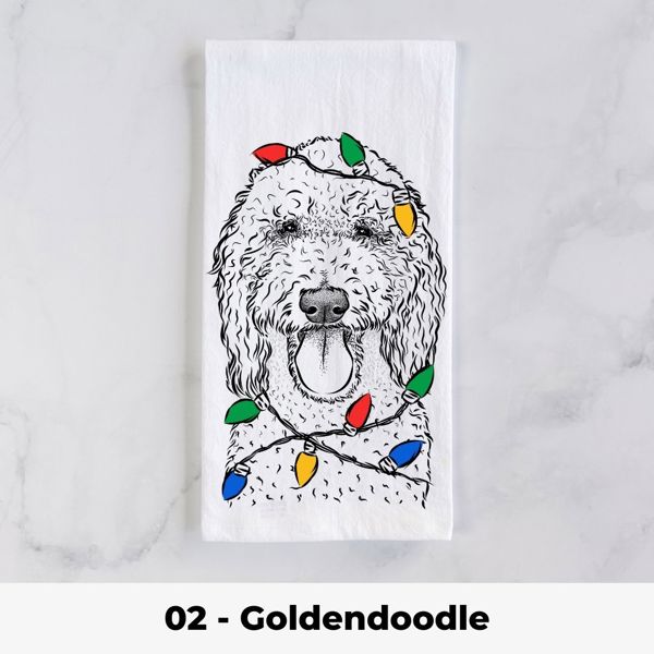 Dog Christmas Lights Tea Towel - 25+ Breeds