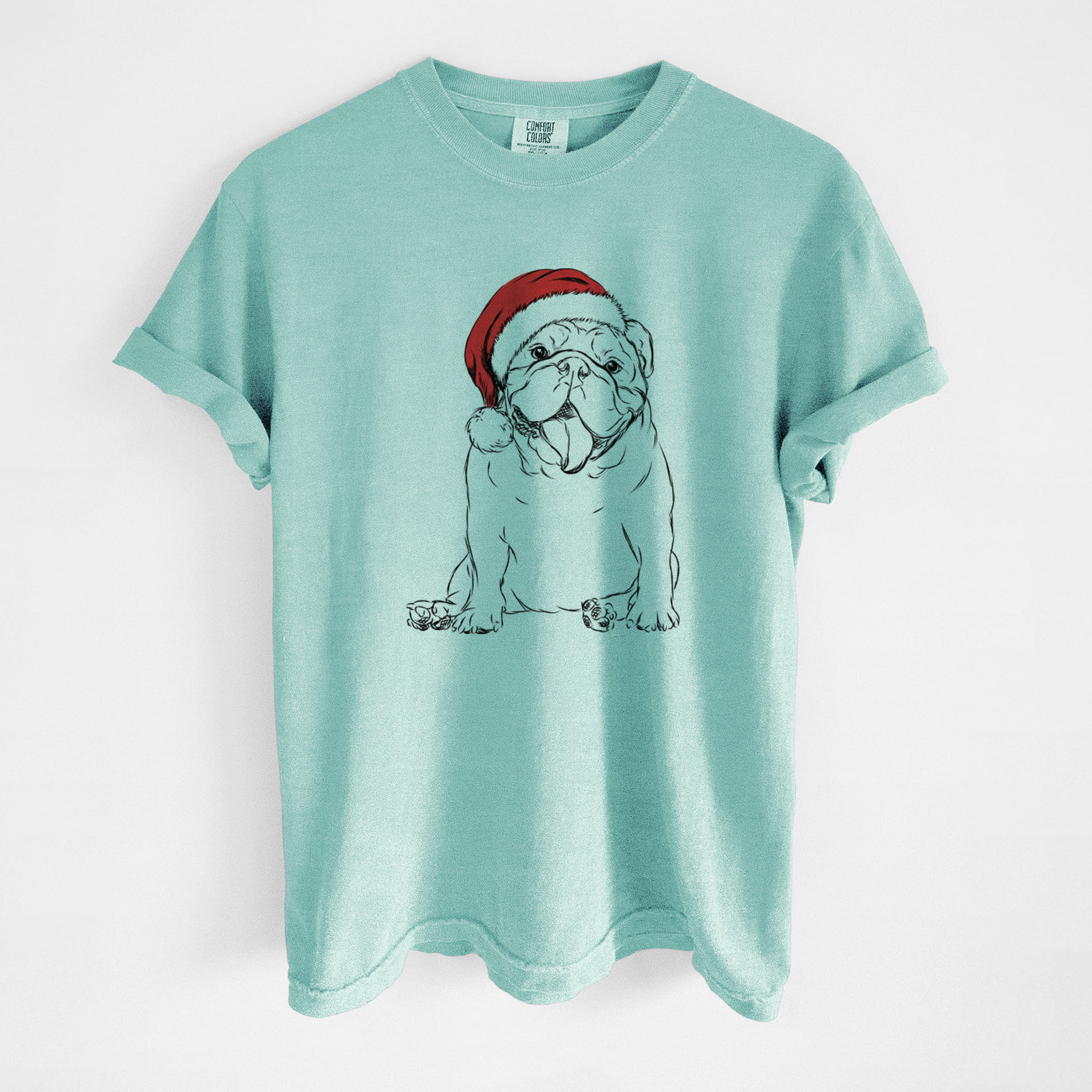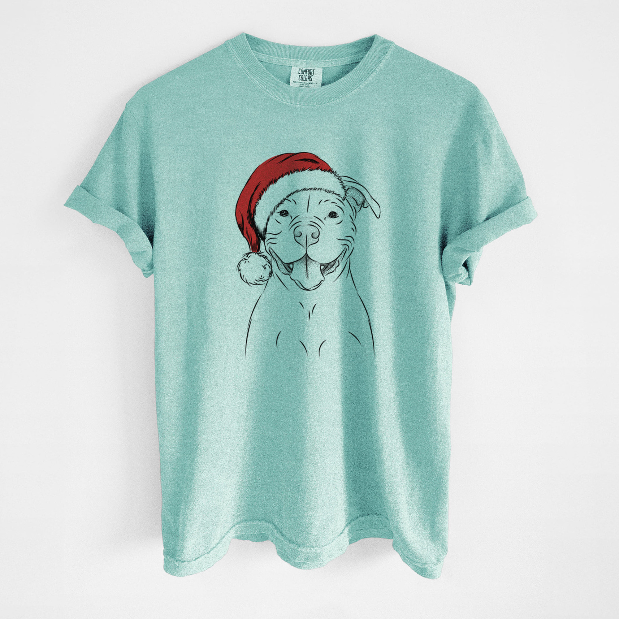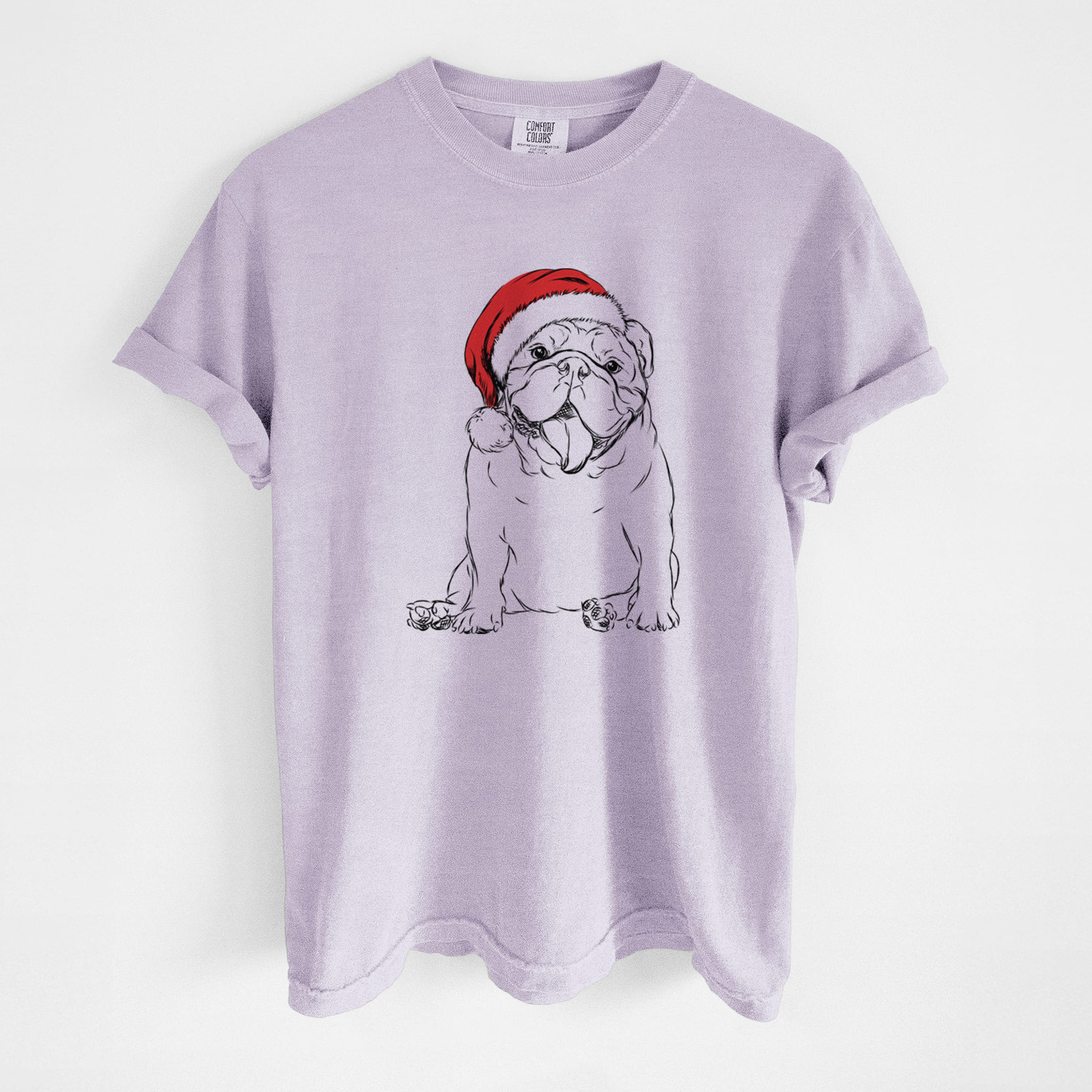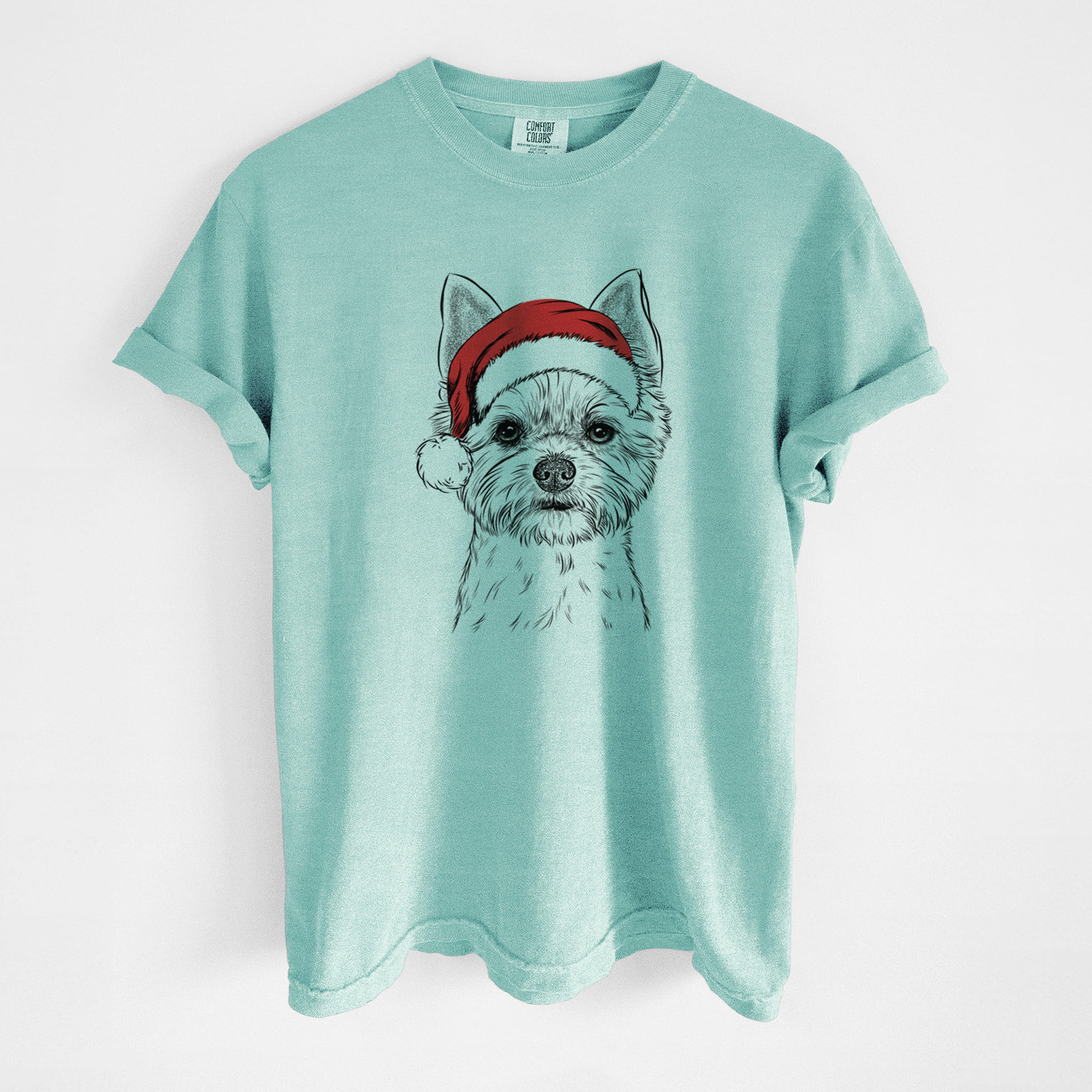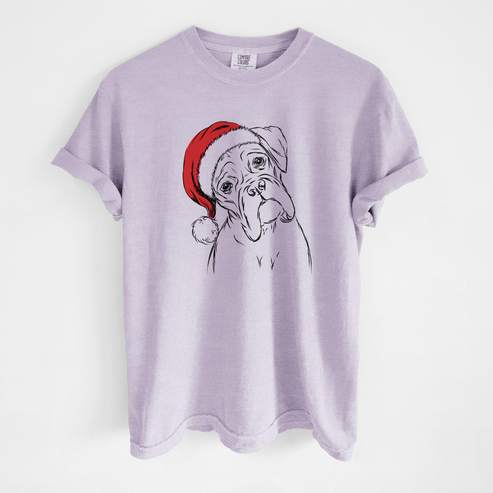 Unique Christmas themed Tee contains a hand drawn 100% original dog sketch wearing a santa hat.