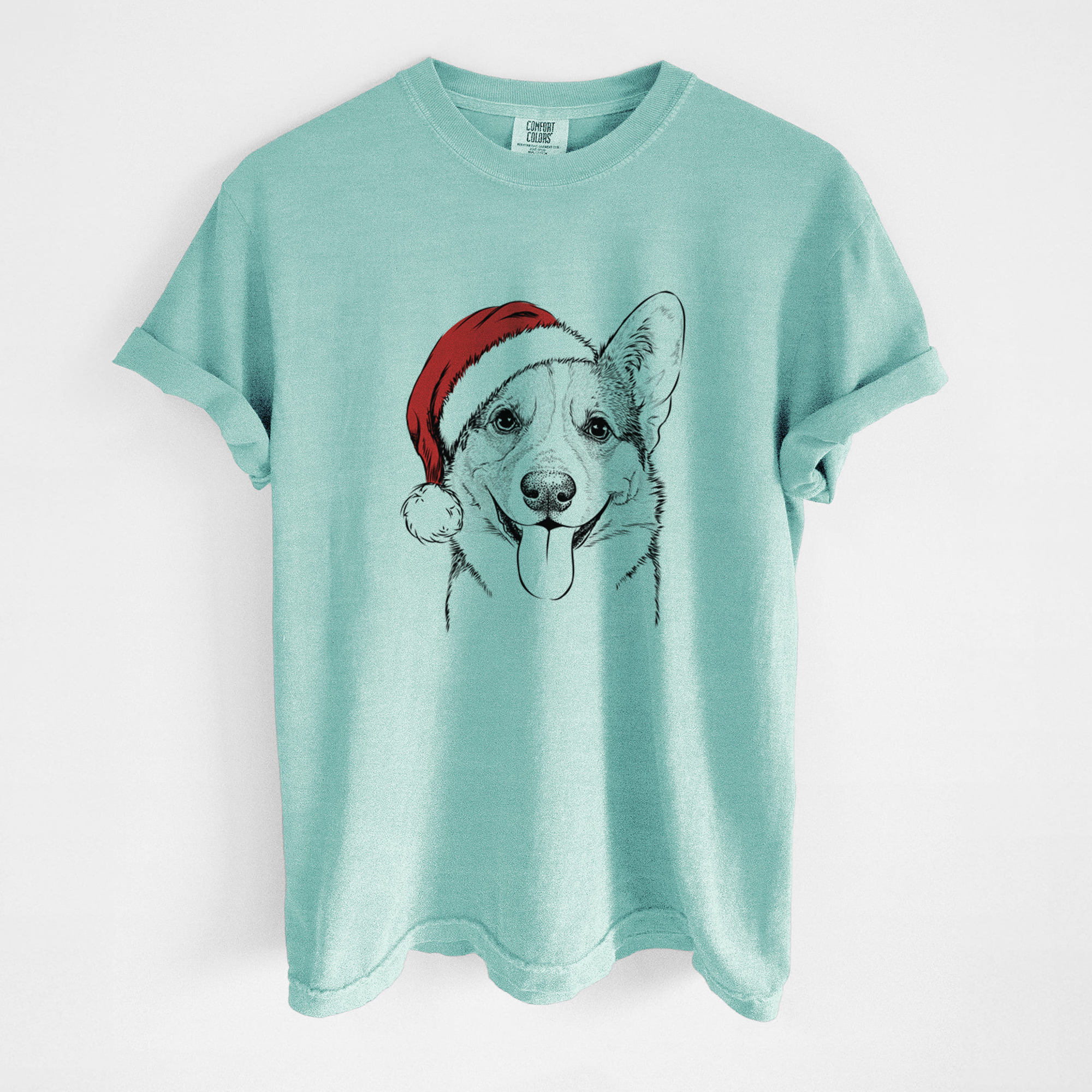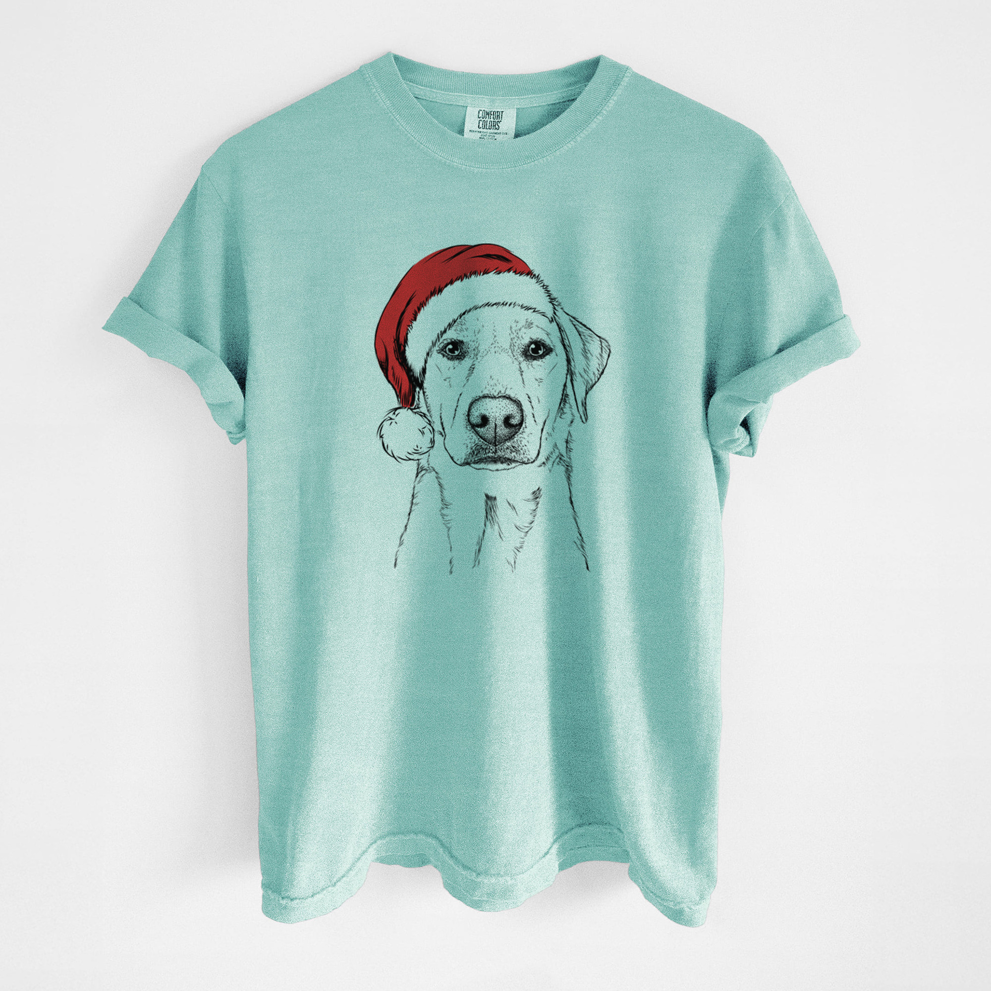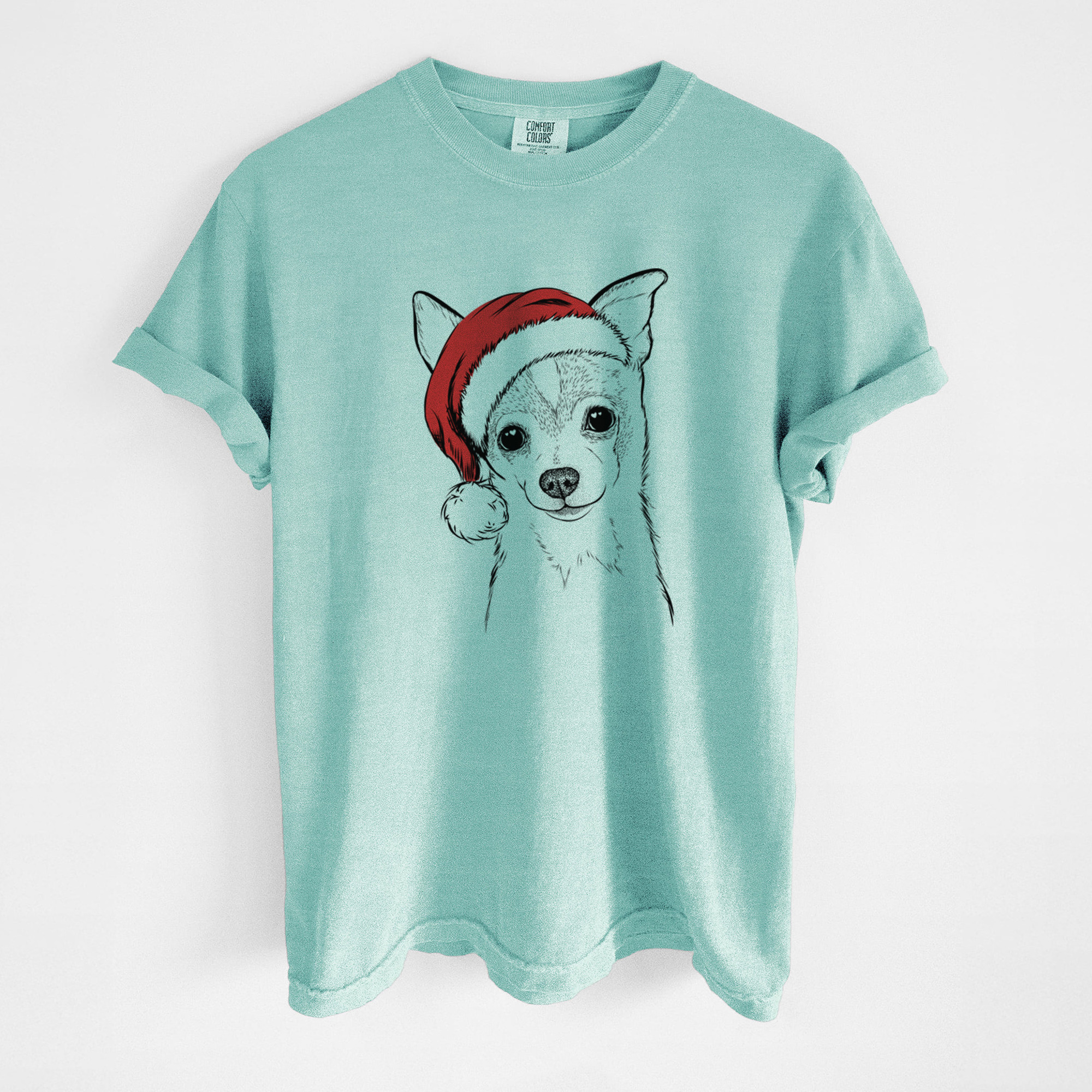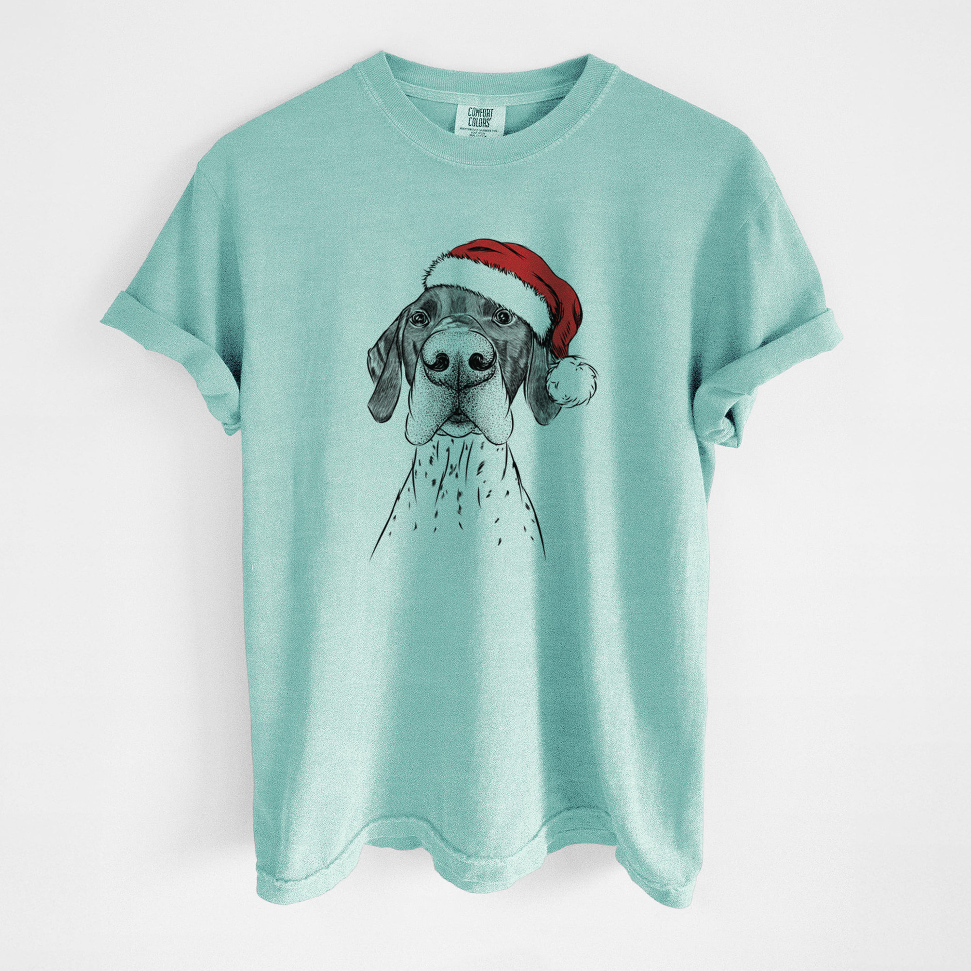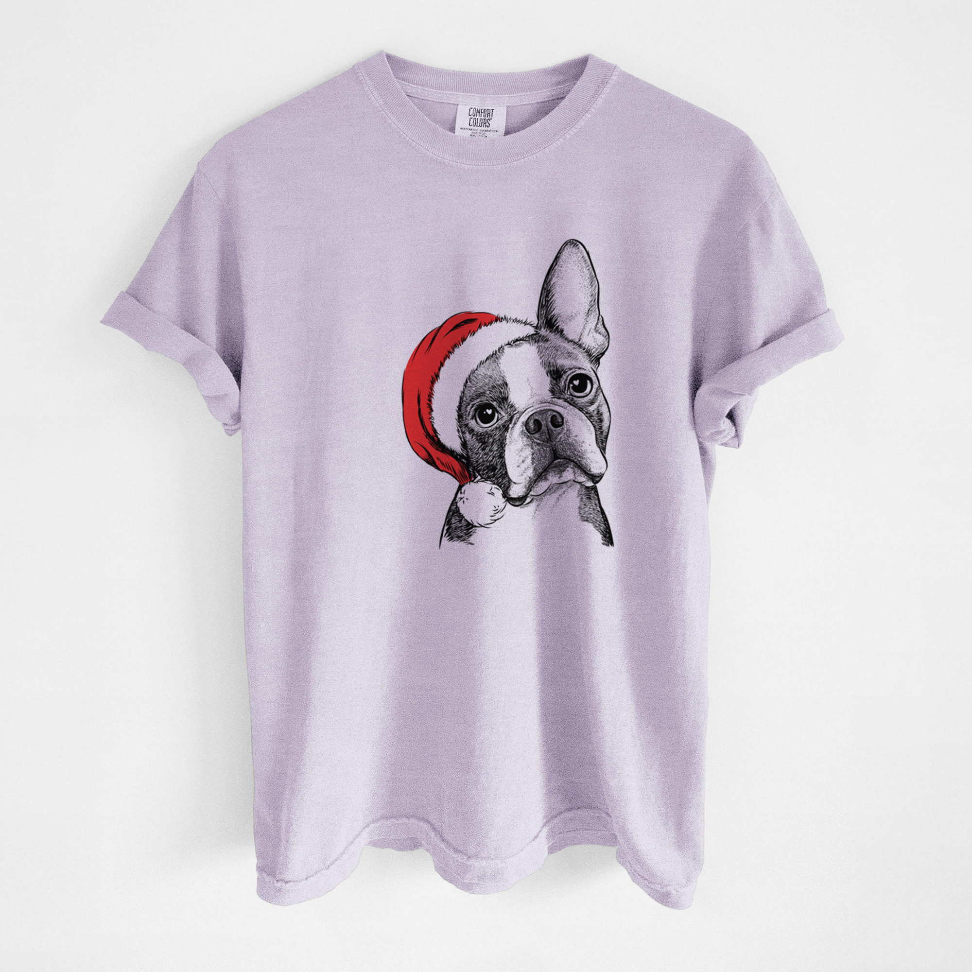 Unique Christmas themed Tee contains a hand drawn 100% original dog sketch wearing a santa hat.