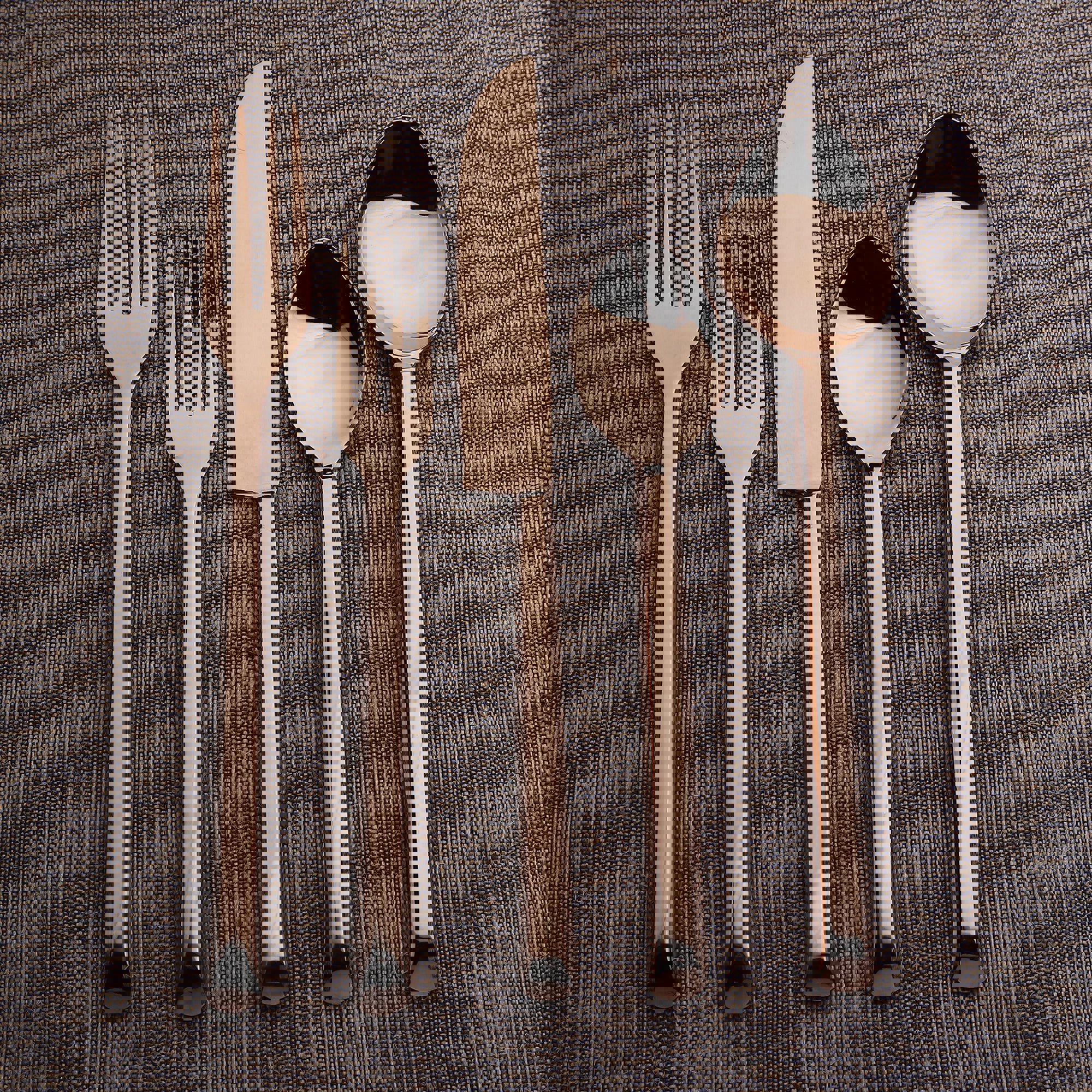 Dress your table with the Plateau flatware set. This stylish collection features unique square handles with beveled ends, adding a sophisticated geometric touch to your table. Designed for both casual and formal dining, the Plateau flatware is a perfect blend of functionality and elegance. Dress up your table with our Plateau Flatware Set. An eye-pleasing set of five, the handcrafted design flaunts beveled edge handles. The look is both rustic and modern for a table defined by style and versatility. Rendered from 18/8 stainless steel Chic, organic texture for a distinctive table setting Each handcrafted set includes a salad fork, dinner fork, table knife, soups spoon, and teaspoon Delivered in eco-friendly cloth packaging for protection and stylish gift-giving Dishwasher safe (Lemon-scented or corrosive detergents not recommended)