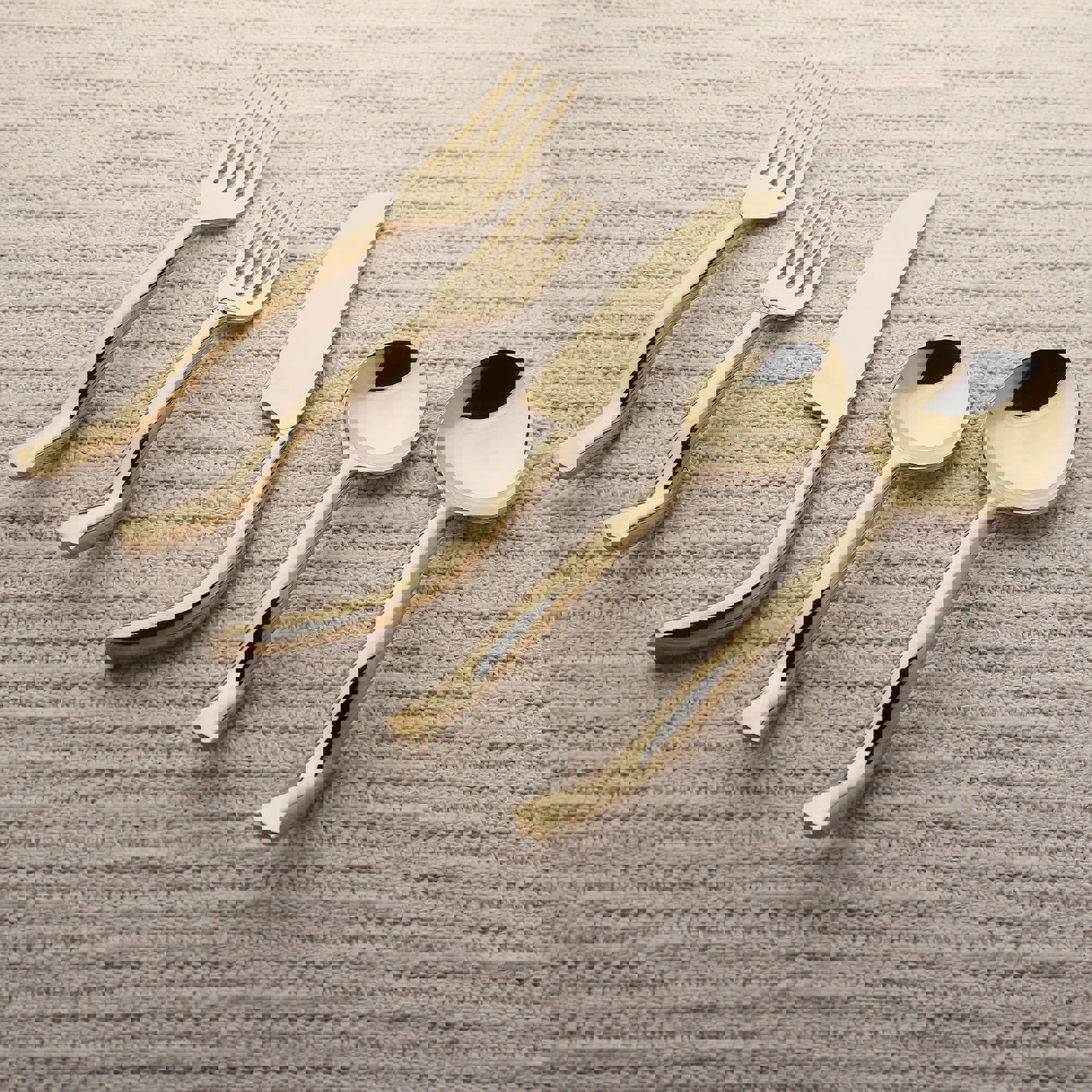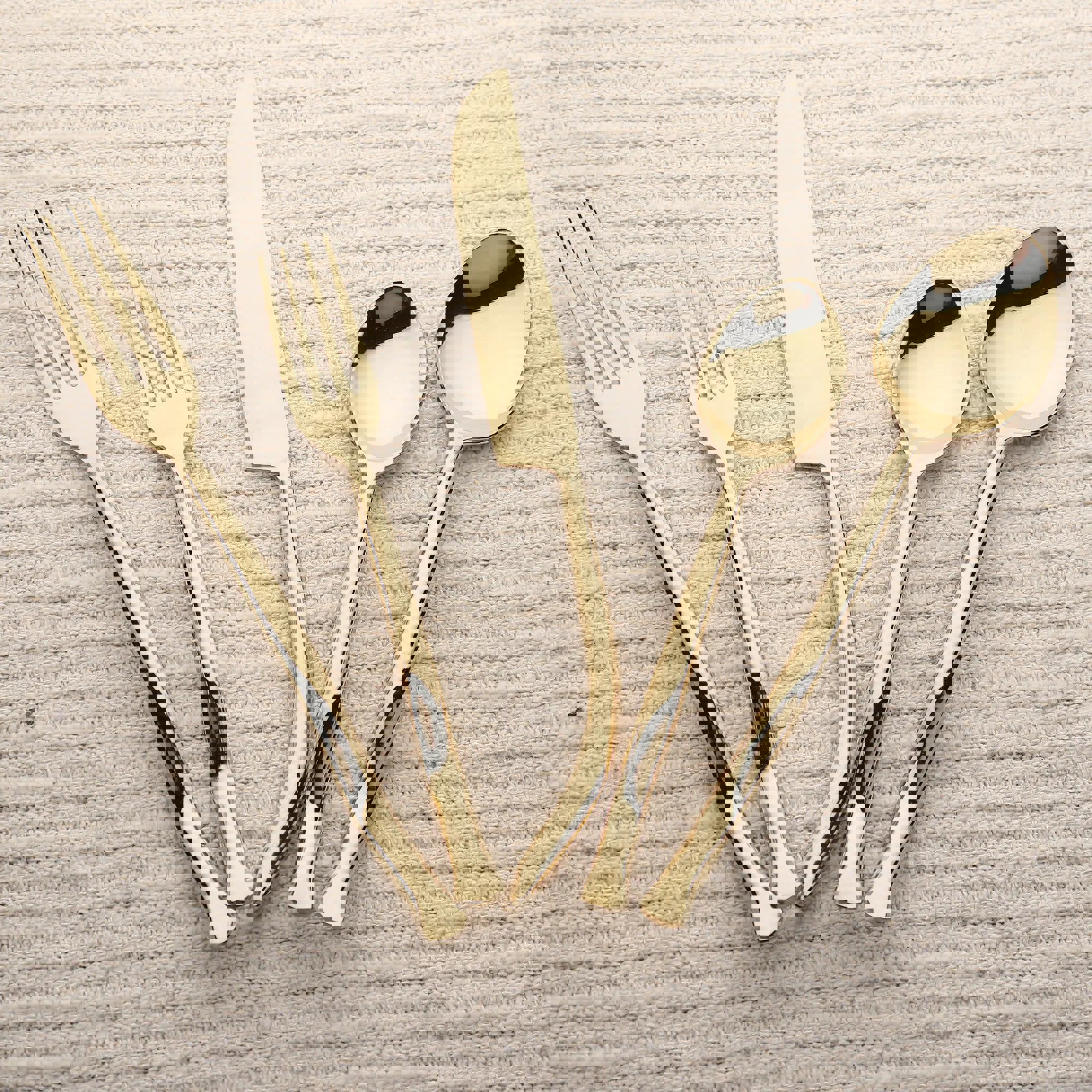 Our Twig Flatware Set features twig-like handles with distinctive diagonal ends and mirror-polished utensils. The knife has a unique curved handle lending an artistic look to your table setting. Our Twig Flatware Set features twig-like handles with distinctive diagonal ends and mirror-polished utensils. The knife has a unique curved handle lending an artistic look to your table setting. At the heart of the Twig flatware collection is its unique design. The pieces feature a subtle twig motif, which adds a natural and sophisticated touch to your tableware collection. The design is timeless, so it complements various table settings and decor styles, from rustic to contemporary. Whether for everyday use or special occasions, this flatware set is designed to meet all your dining needs. Rendered from 18/8 stainless steel Chic, organic texture for a distinctive table setting Each handcrafted set includes a salad fork, dinner fork, table knife, soups spoon, and teaspoon Delivered in eco-friendly cloth packaging for protection and stylish gift-giving Dishwasher safe (Lemon-scented or corrosive detergents not recommended)