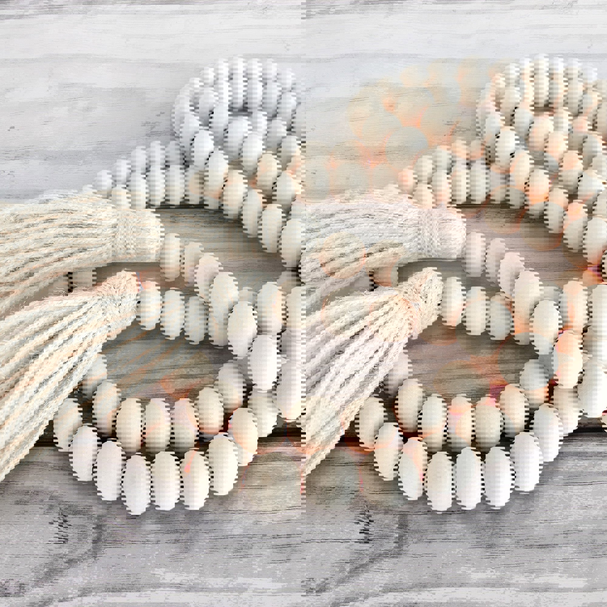 76" Wood Bead Garland with Jute Tassels