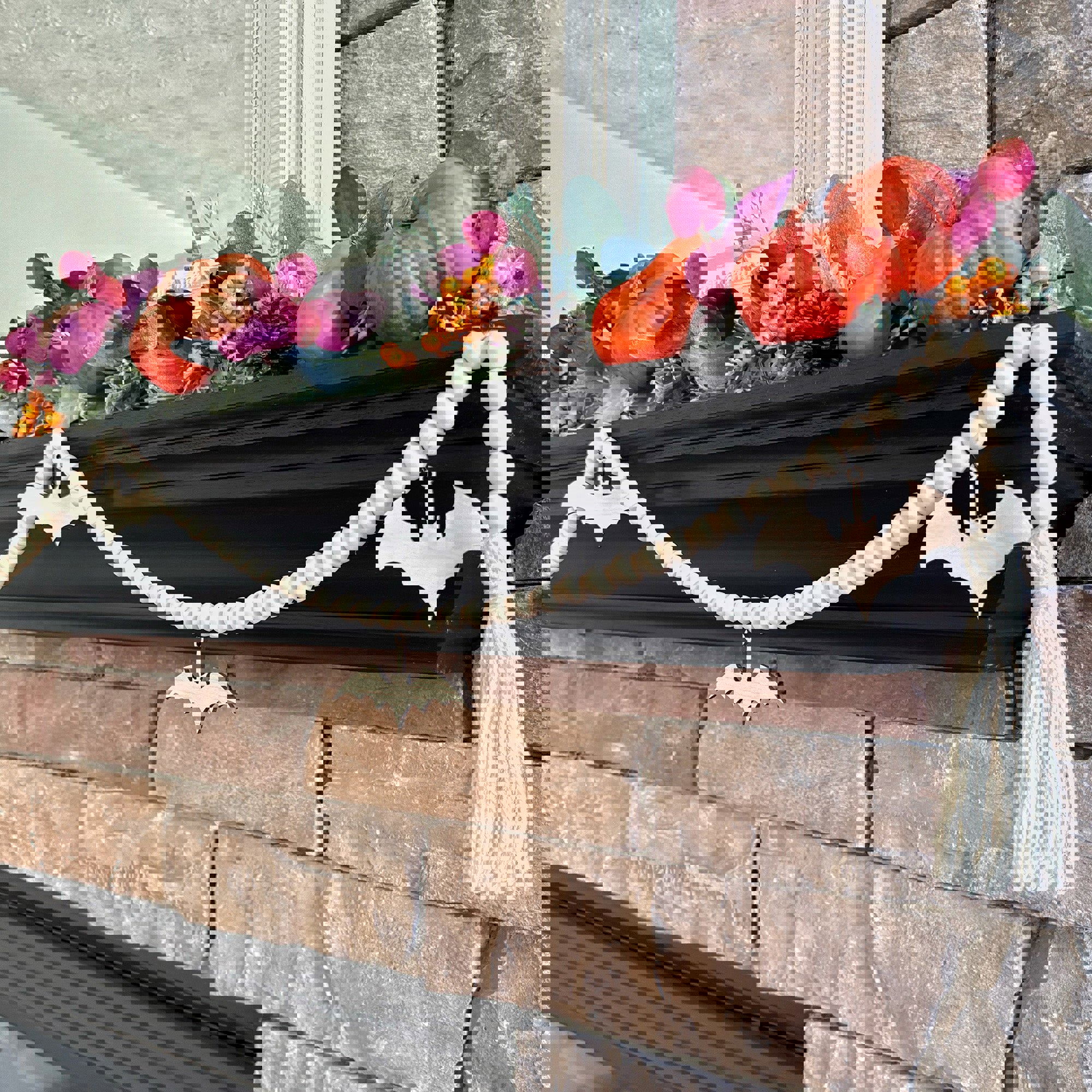 Bat Wood Bead Garland with Interchangeable Seasonal Charms