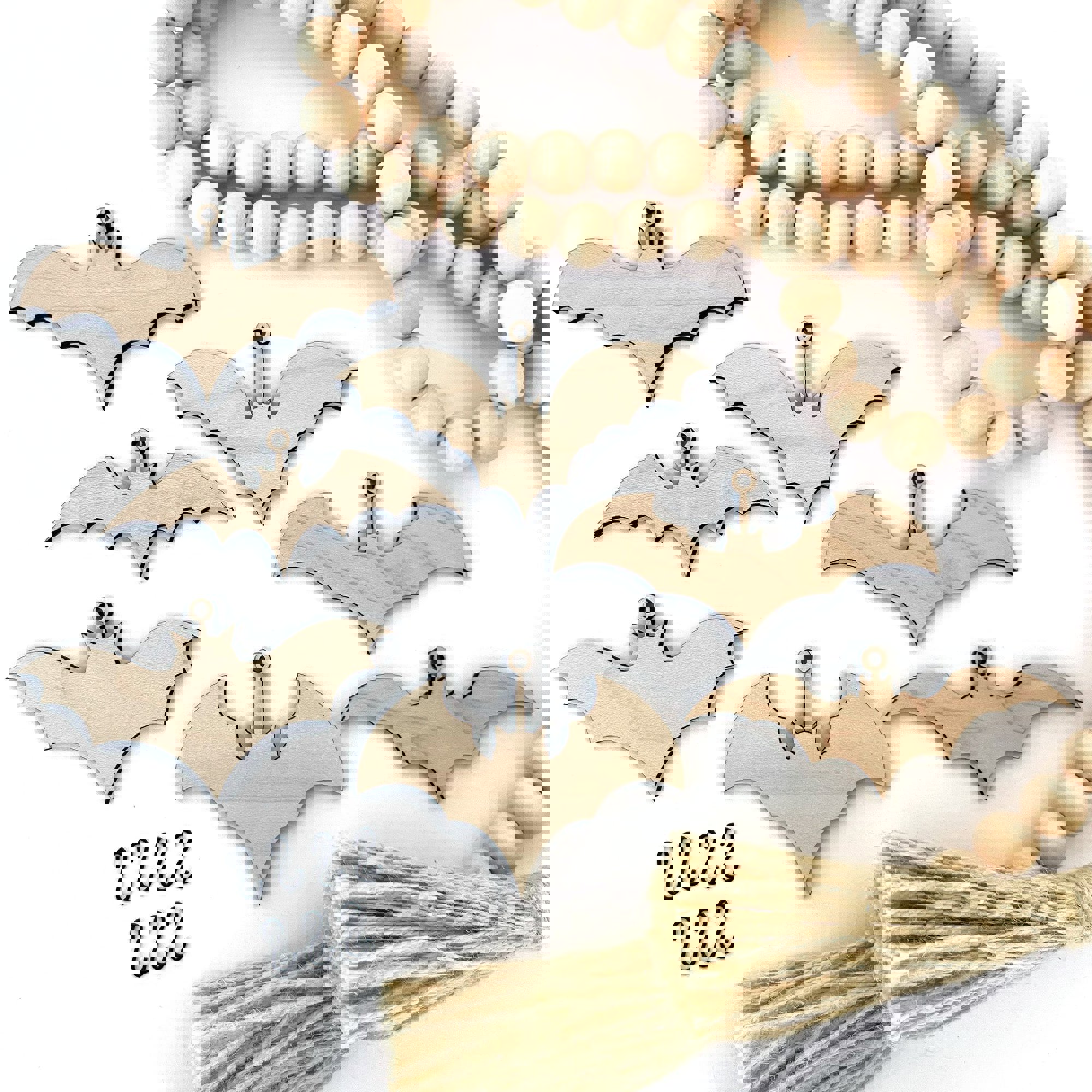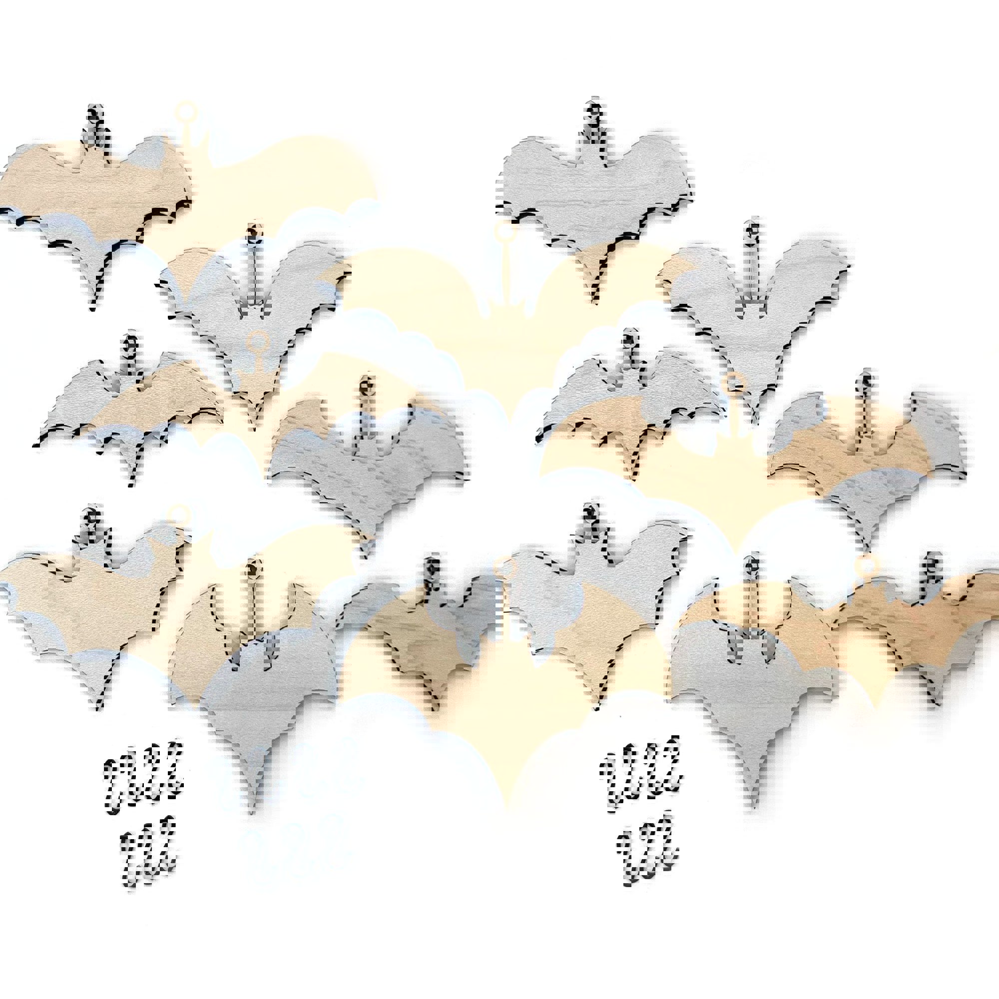 * 7 unique, laser cut bat charms that measure approximately 3.875" x 2.125", laser cut from maple wood.