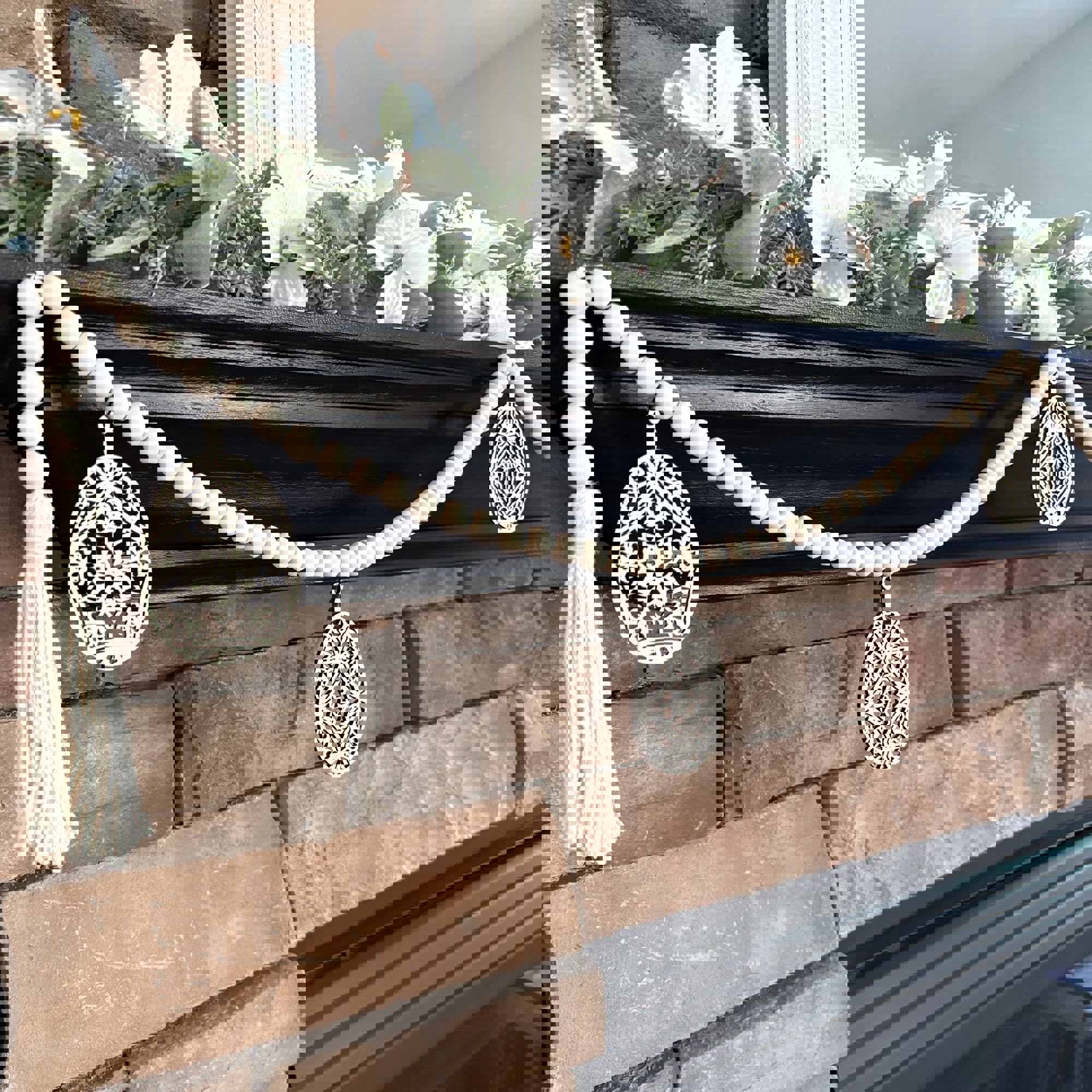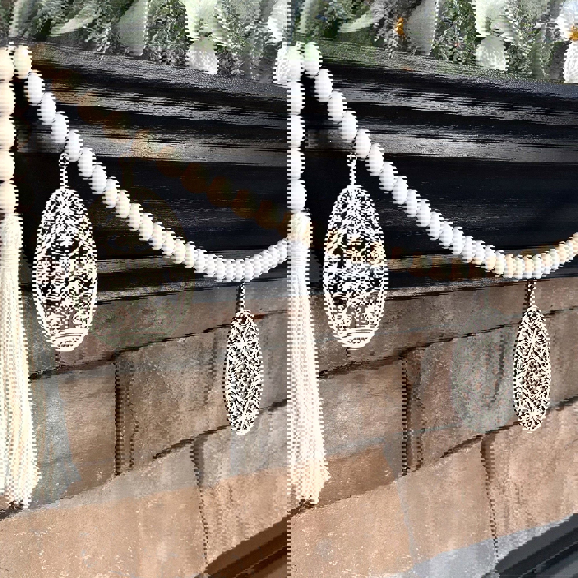 * 76" Natural wood garland with 1/2" beads and 5" tassels.