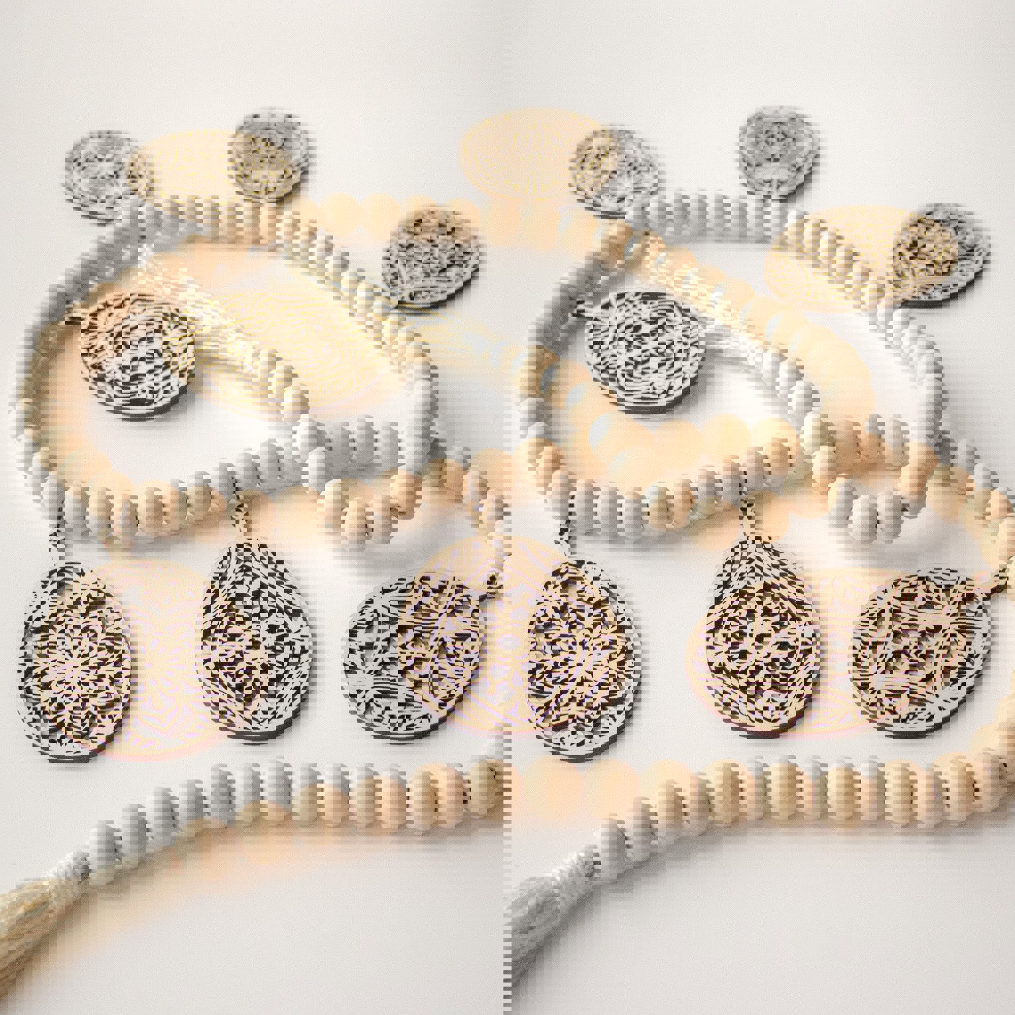 * The Pysanky Egg natural wood beaded garland is the perfect accent for your rustic chic or modern farmhouse decor!