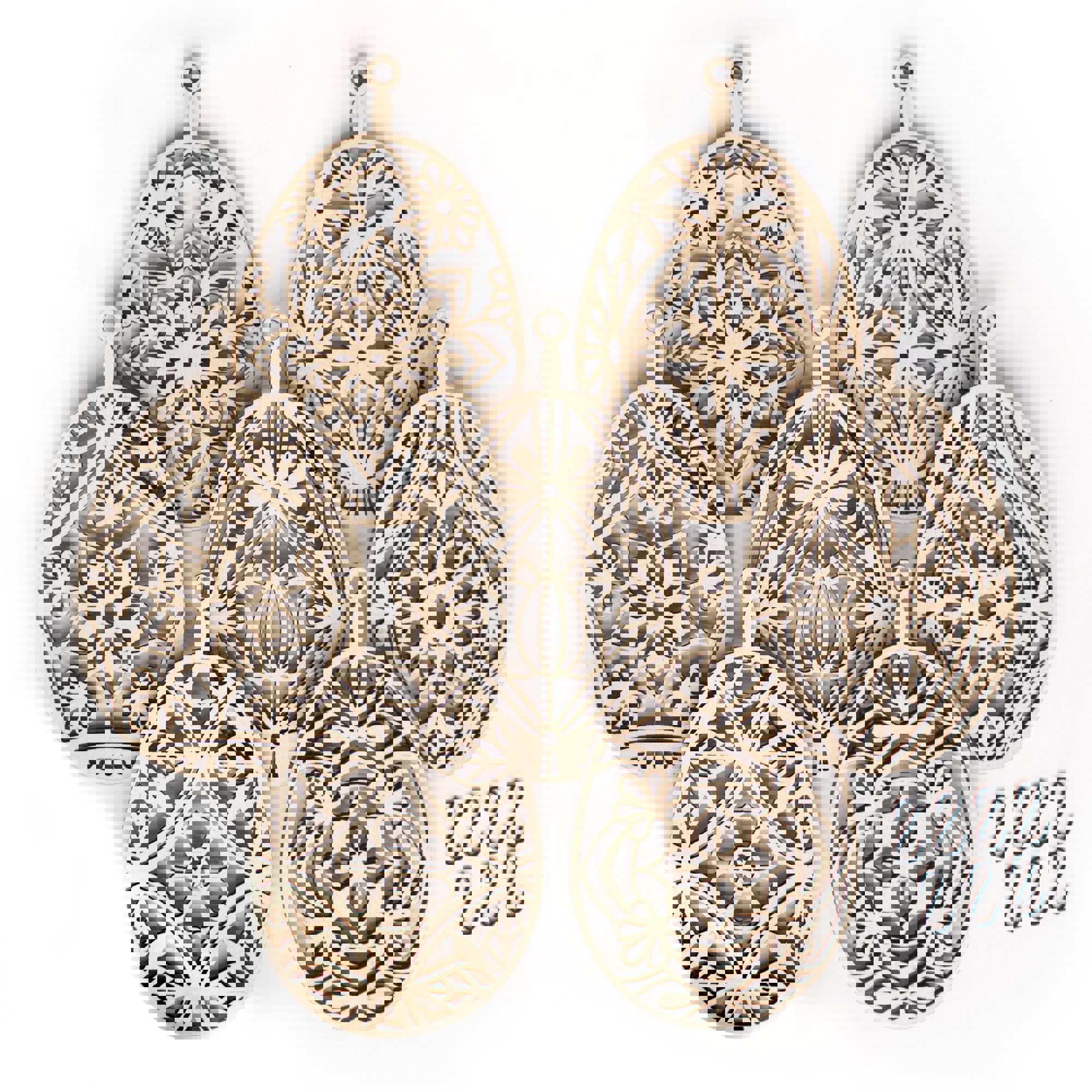 * 7 unique, pysanky-inspired Easter egg charms approximately 2.375" x 3.875".