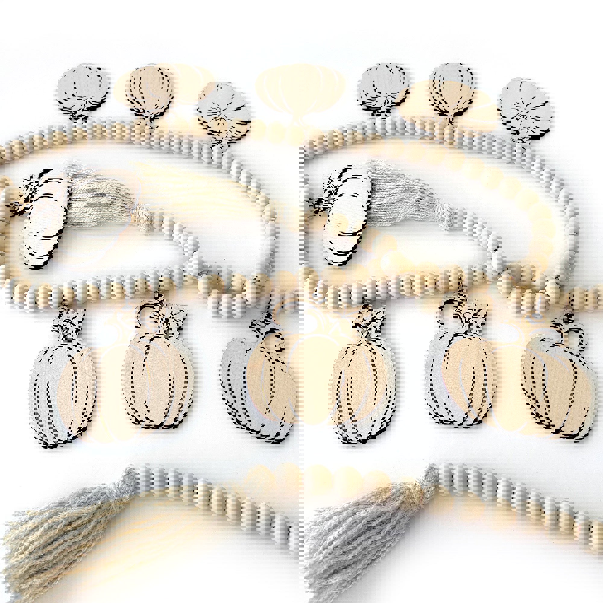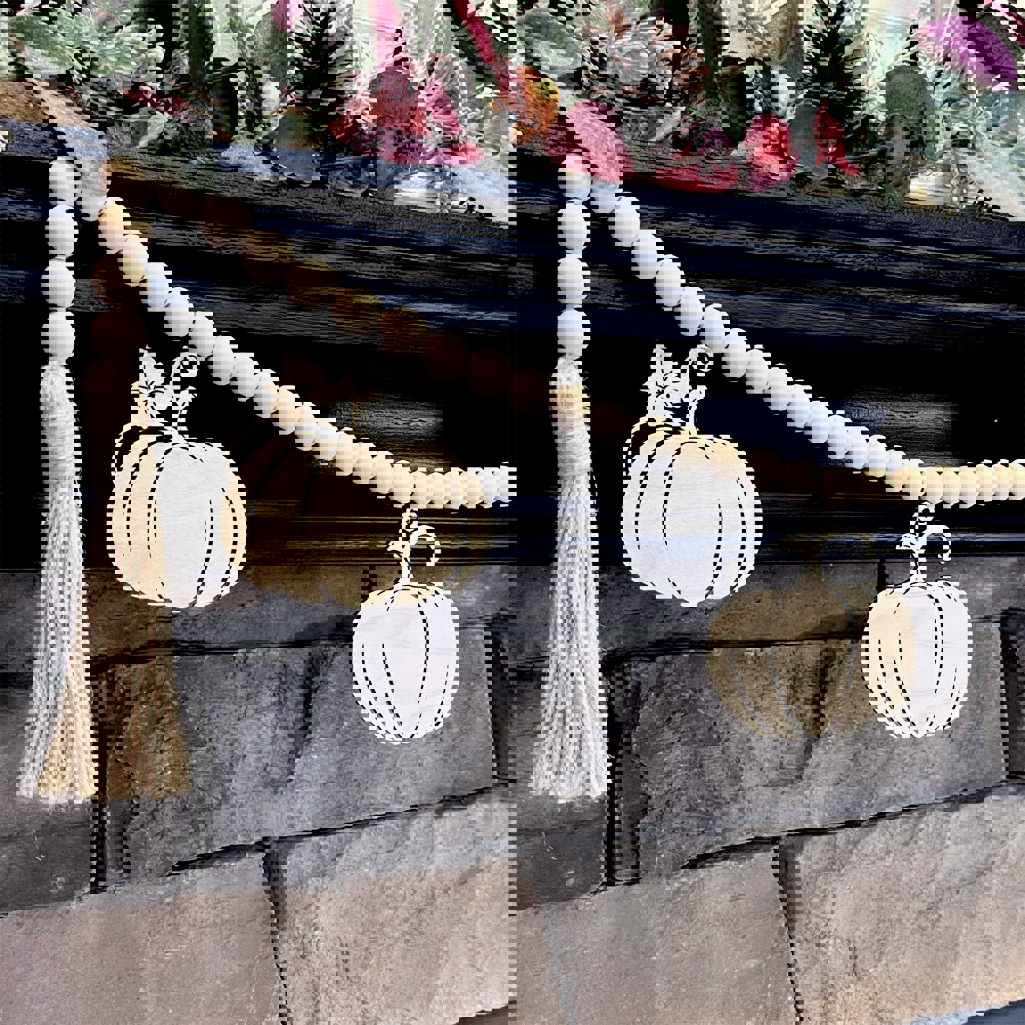Fall Pumpkins Wood Bead Garland with Interchangeable Seasonal Charms