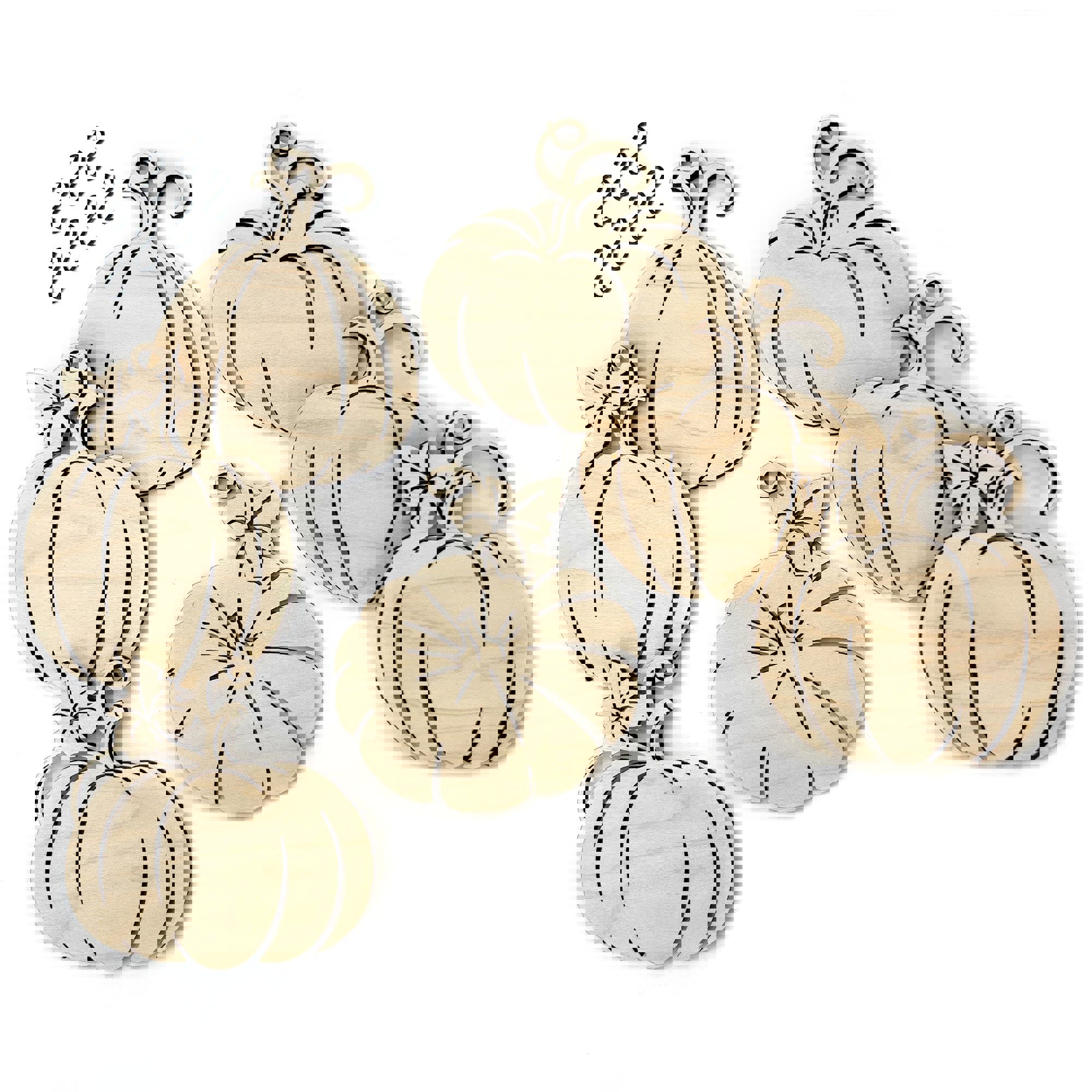 * 7 unique, laser cut fall pumpkin charms approximately 3.25" tall x 3.25" wide (each pumpkin size varies).