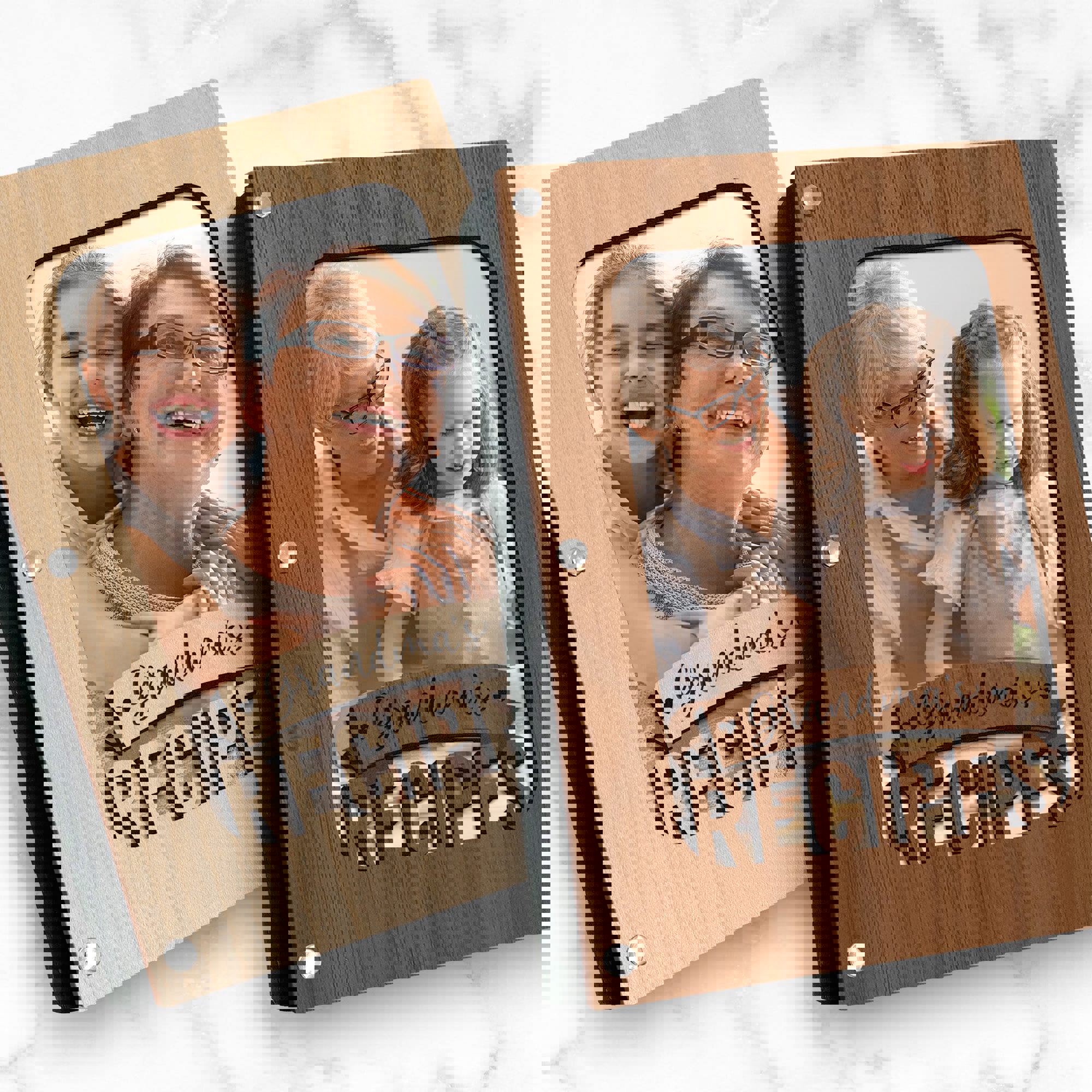 "Grandma's Recipes" Wood Recipe Book with Photo Sleeve