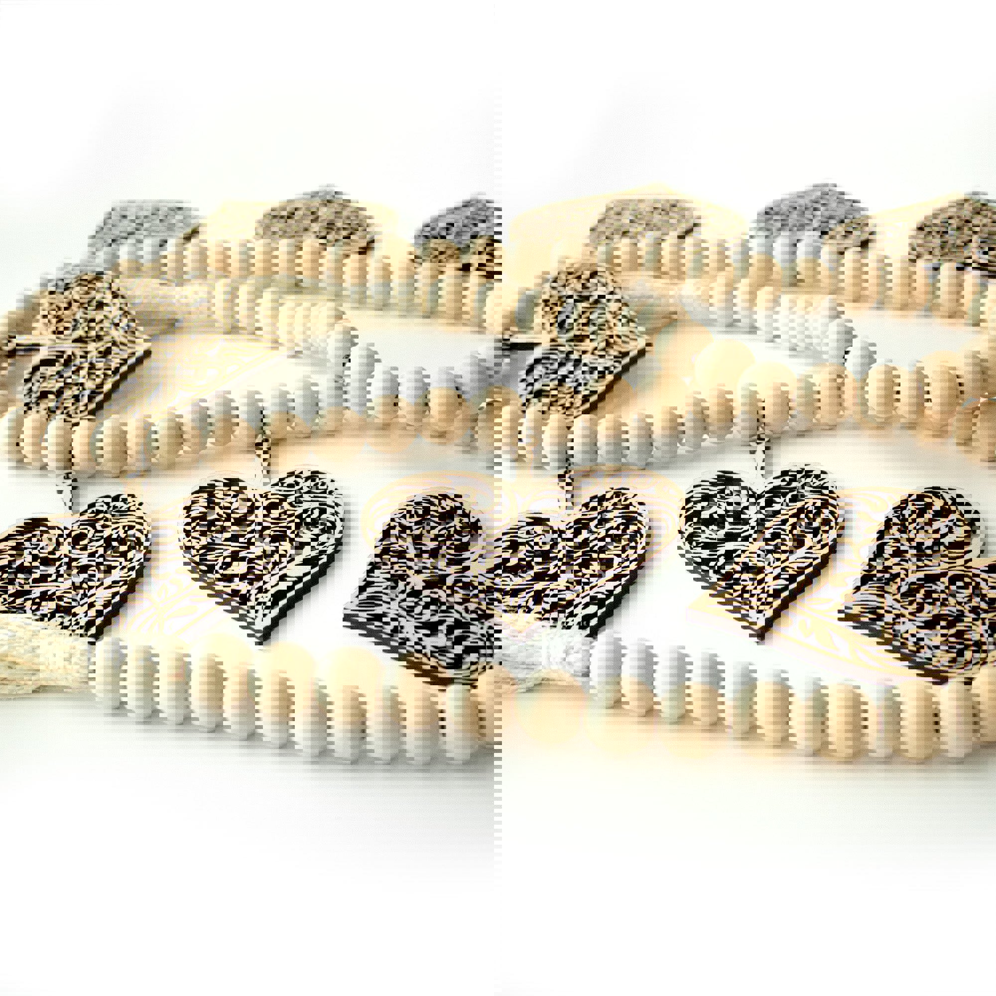 Heart Wood Bead Garland with Interchangeable Seasonal Charms