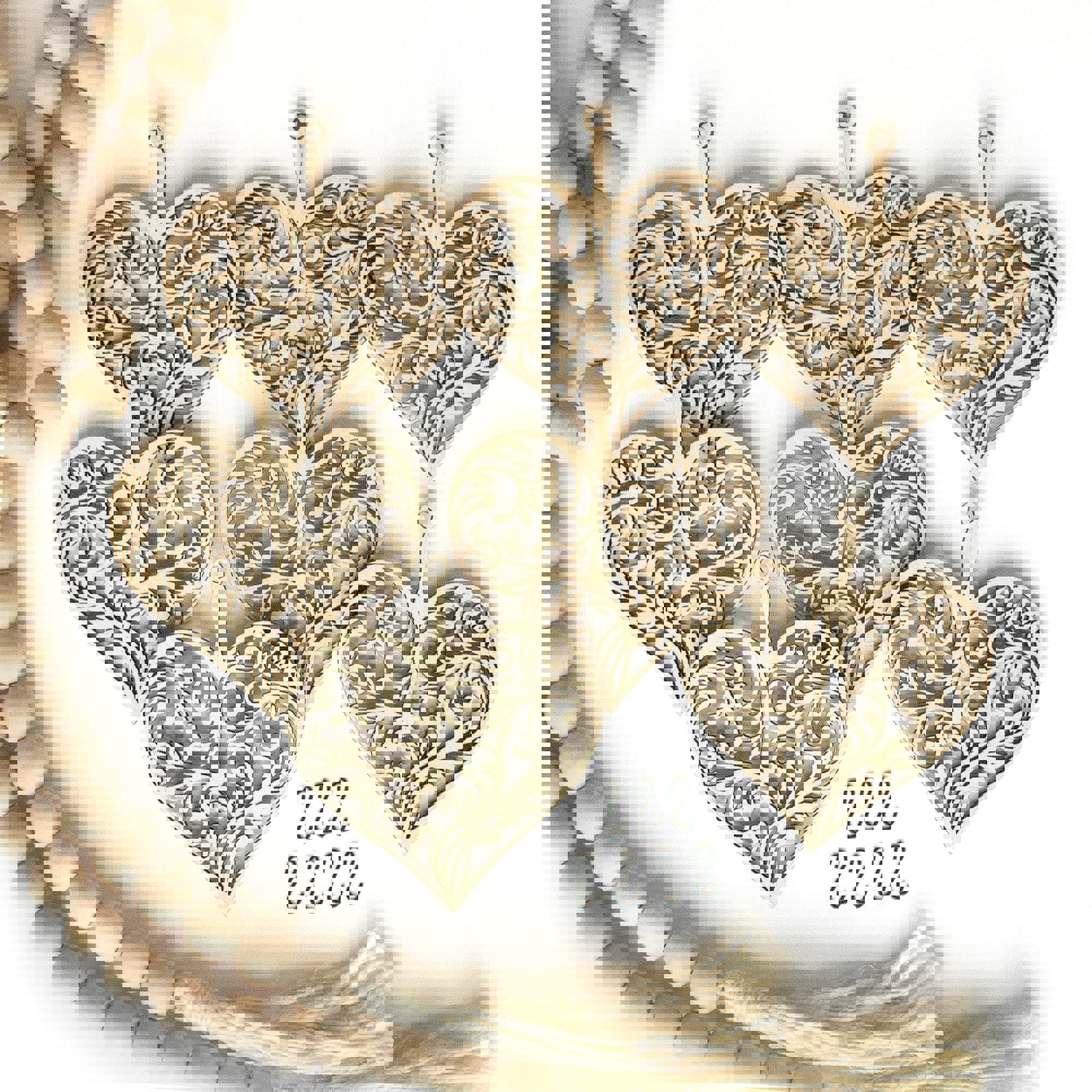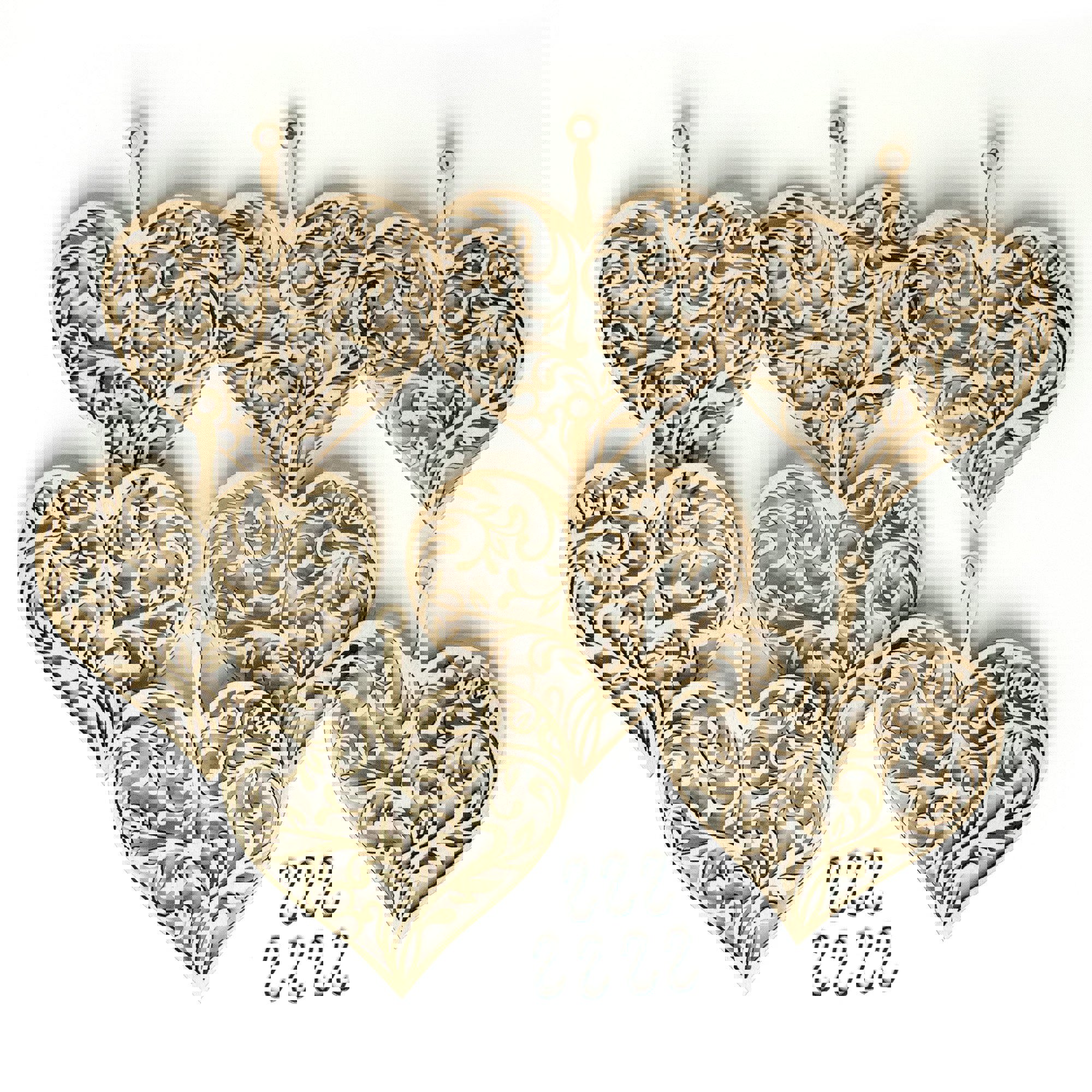 * 7 intricate, laser cut heart charms approximately 3.125" wide x 3.5" tall.