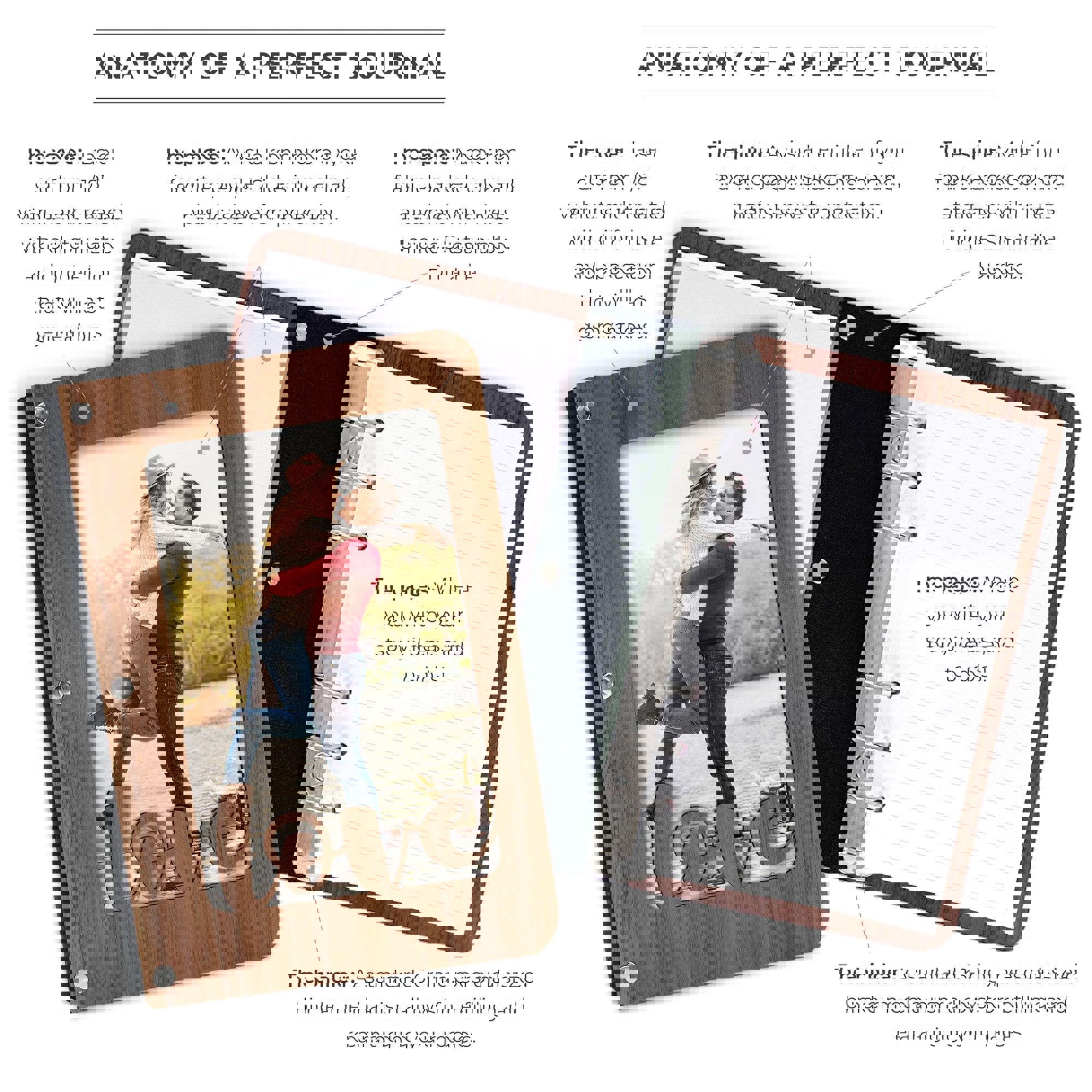 Beautiful: The journal covers are crafted from laser cut, 1/8" walnut or maple hardwood and are treated with an all-natural, environmentally friendly oil for luster, protection, and endurance.