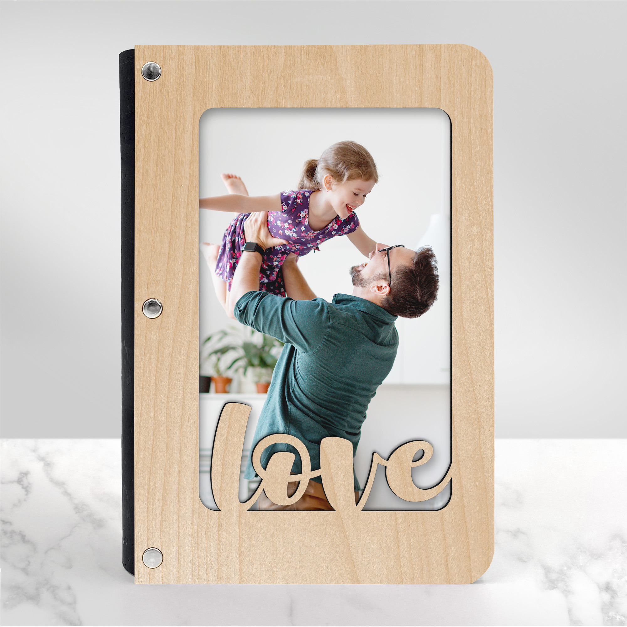 Personalized "Love" Wood Journal with Photo Sleeve