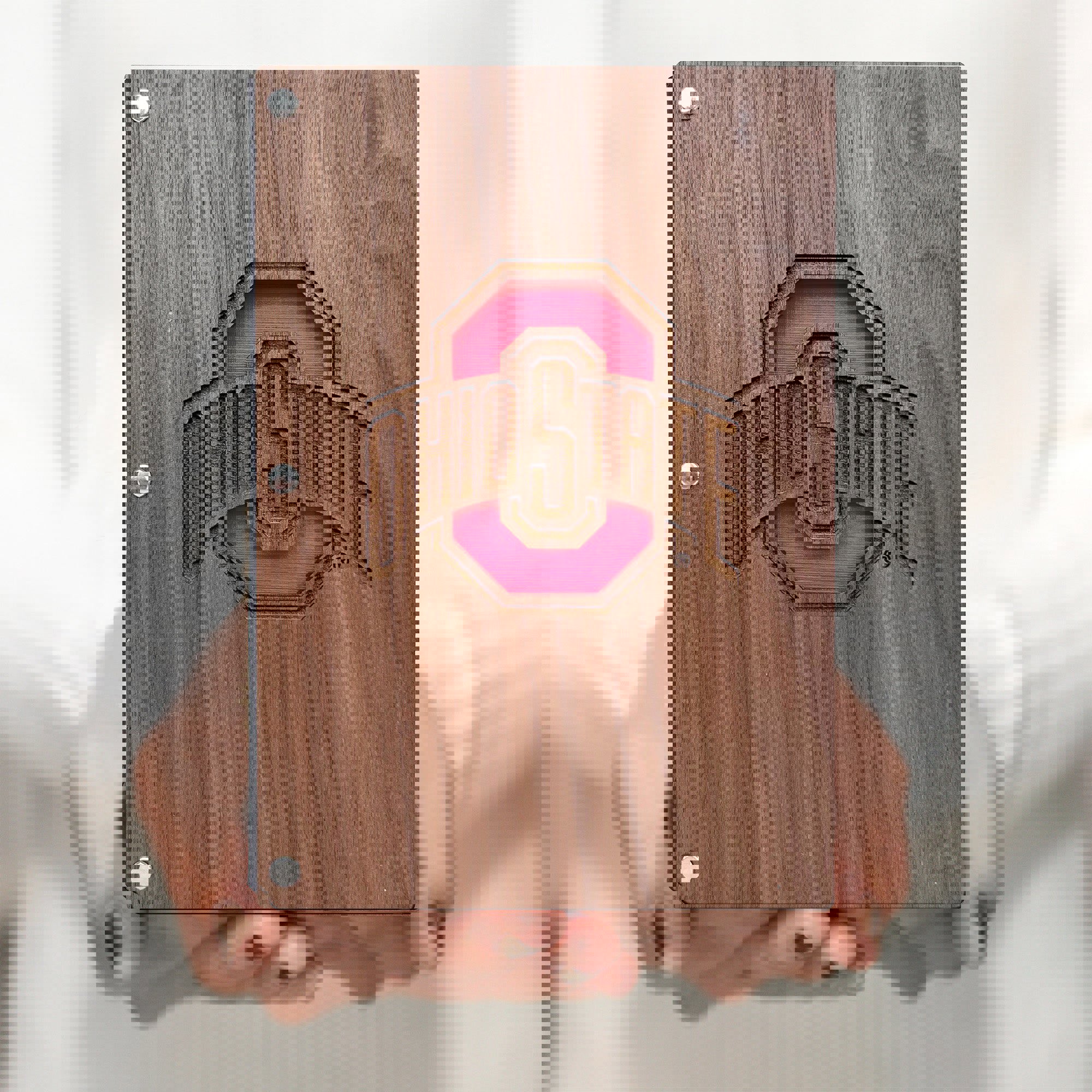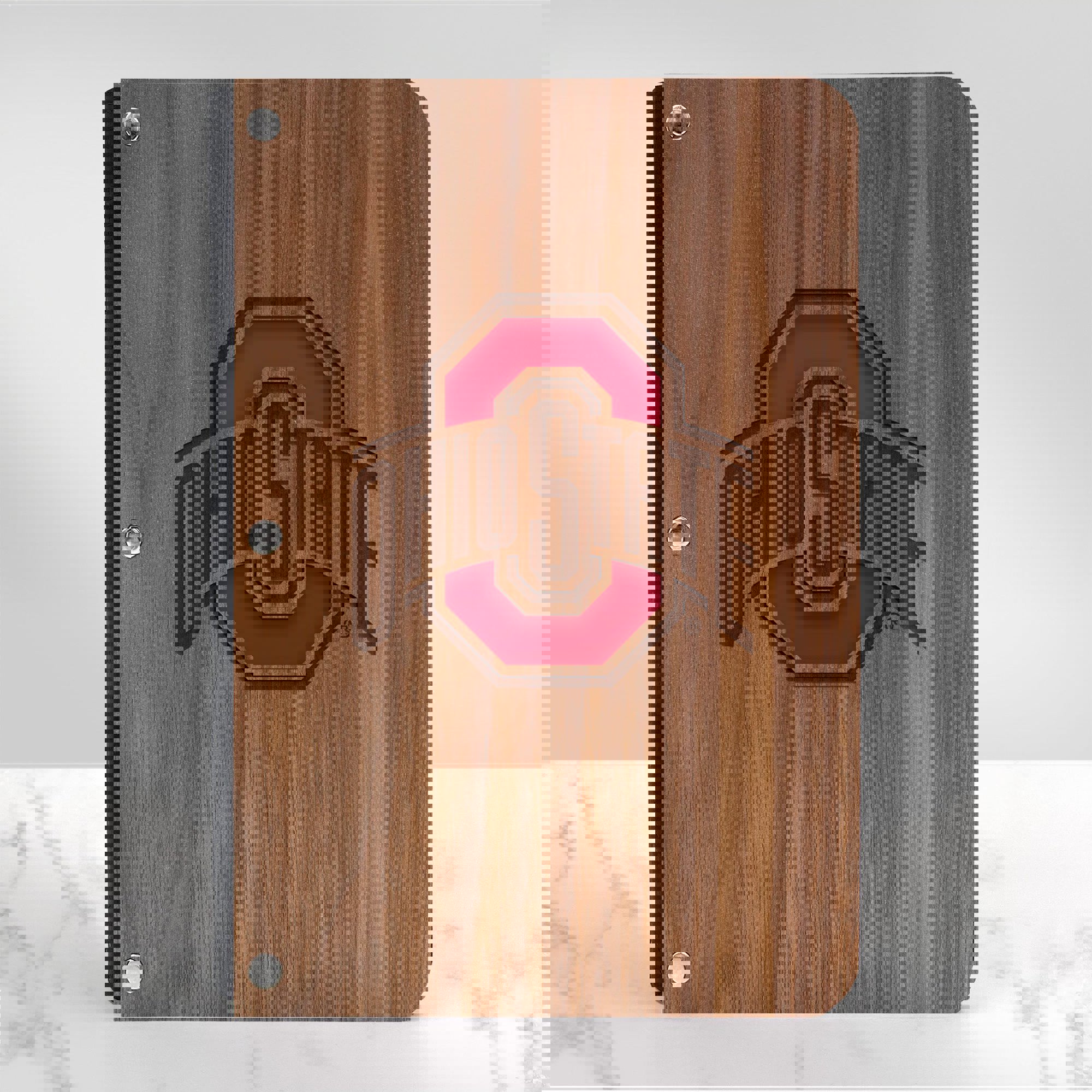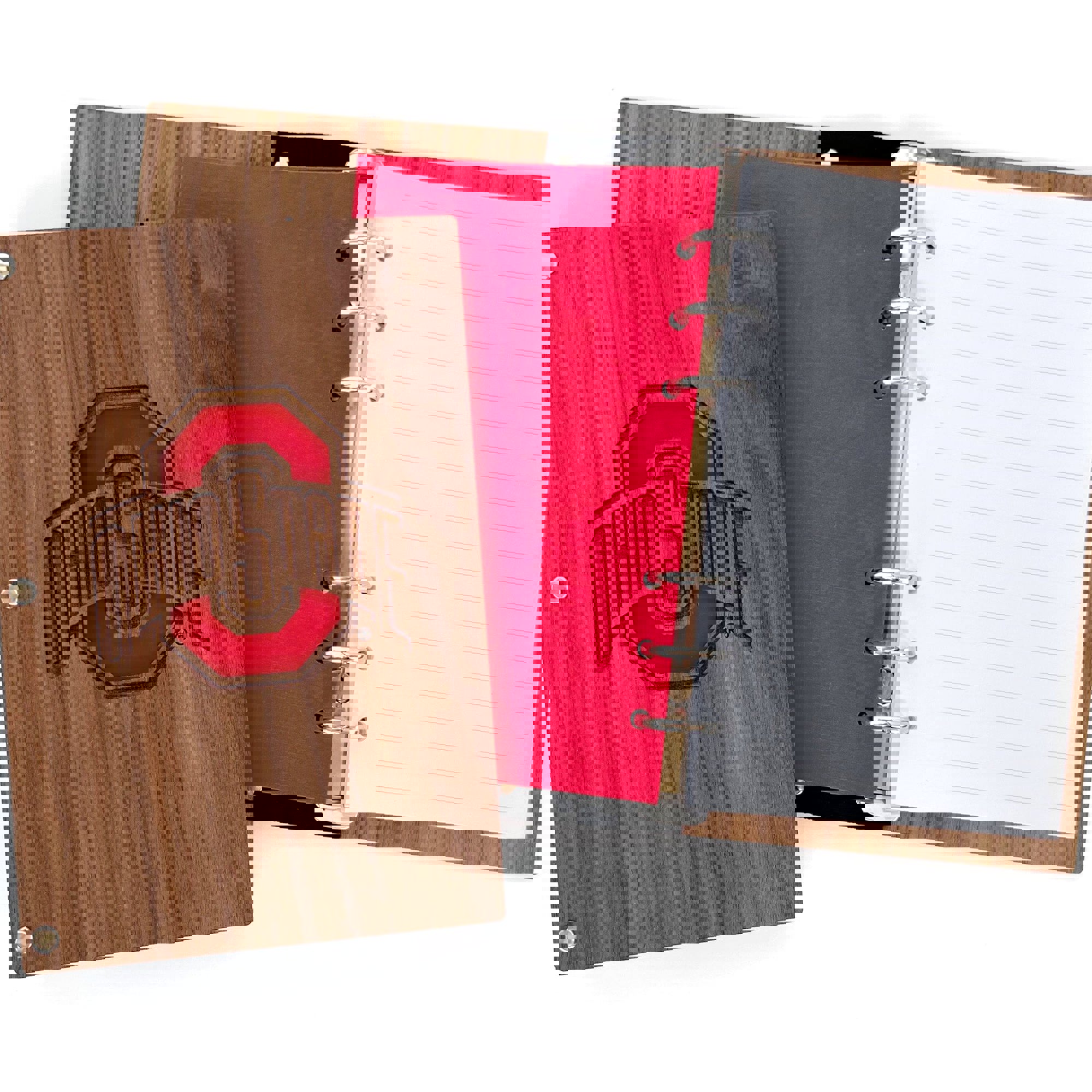 O-H! Show your Buckeyes pride with this unique Ohio State notebook with a walnut wood cover. Compose, design, and to-do in this beautiful wooden notebook! This book is perfect for work, college, or home! Go Bucks!