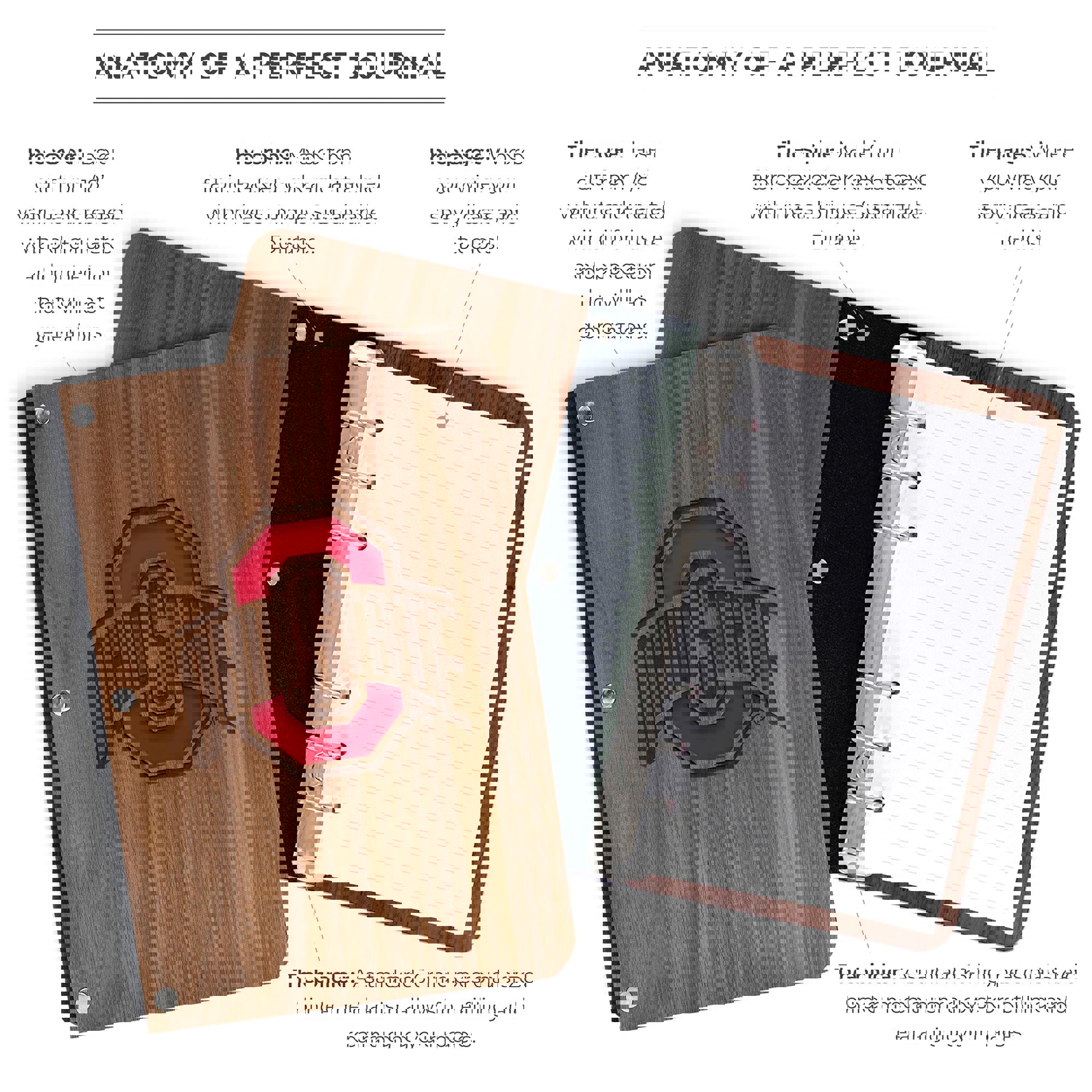 Beautiful: The journal covers are crafted from laser cut, 1/8' walnut or maple hardwood and are treated with an all-natural, environmentally friendly oil for luster, protection, and endurance.
