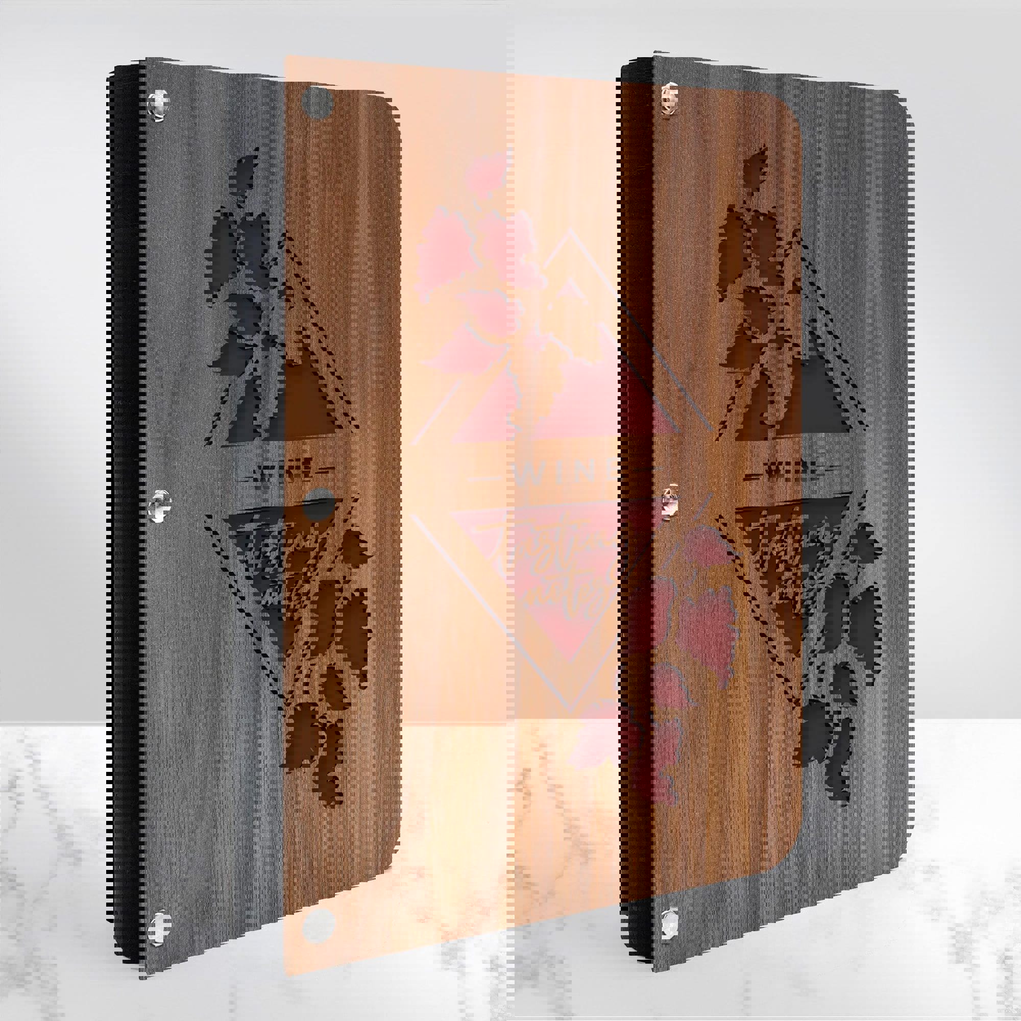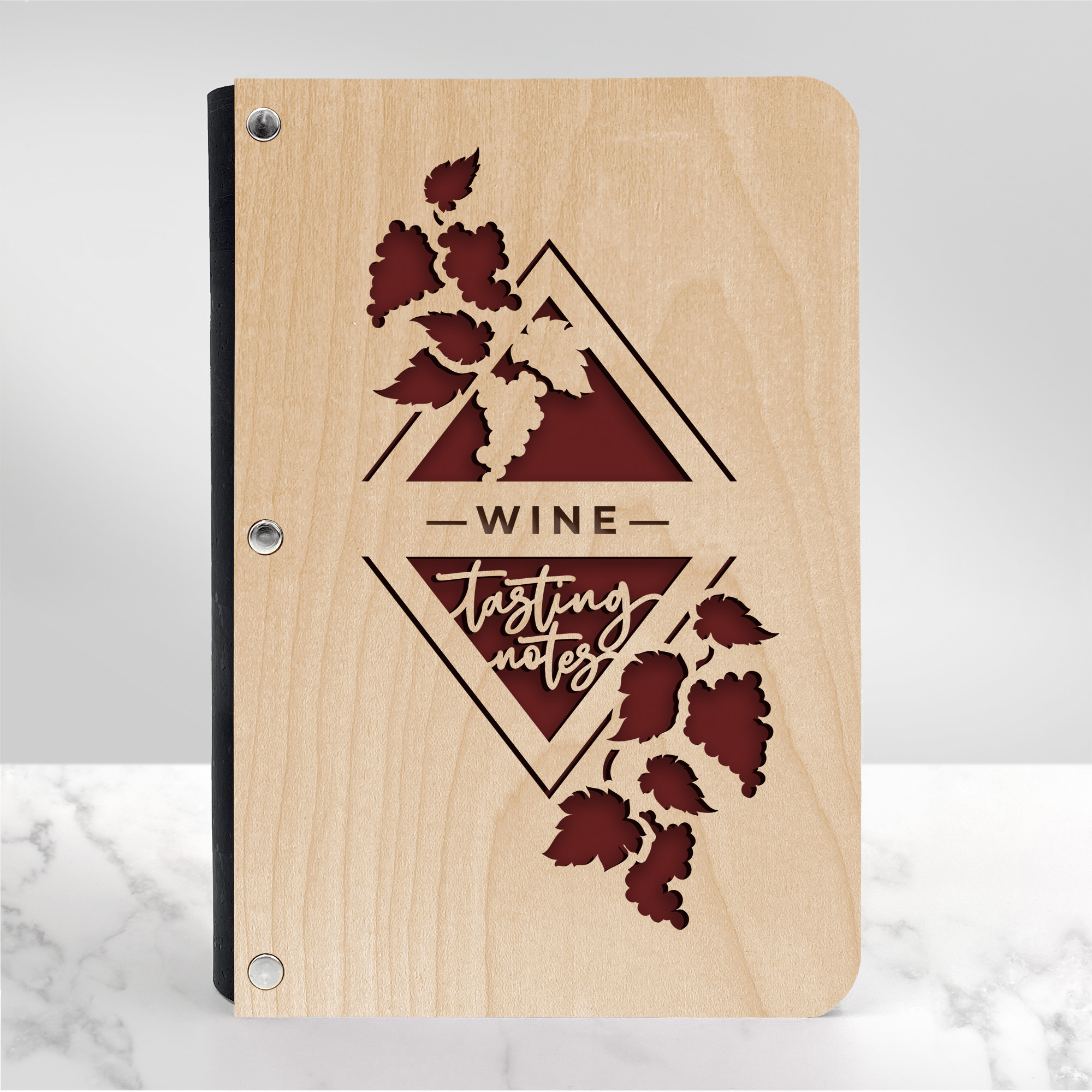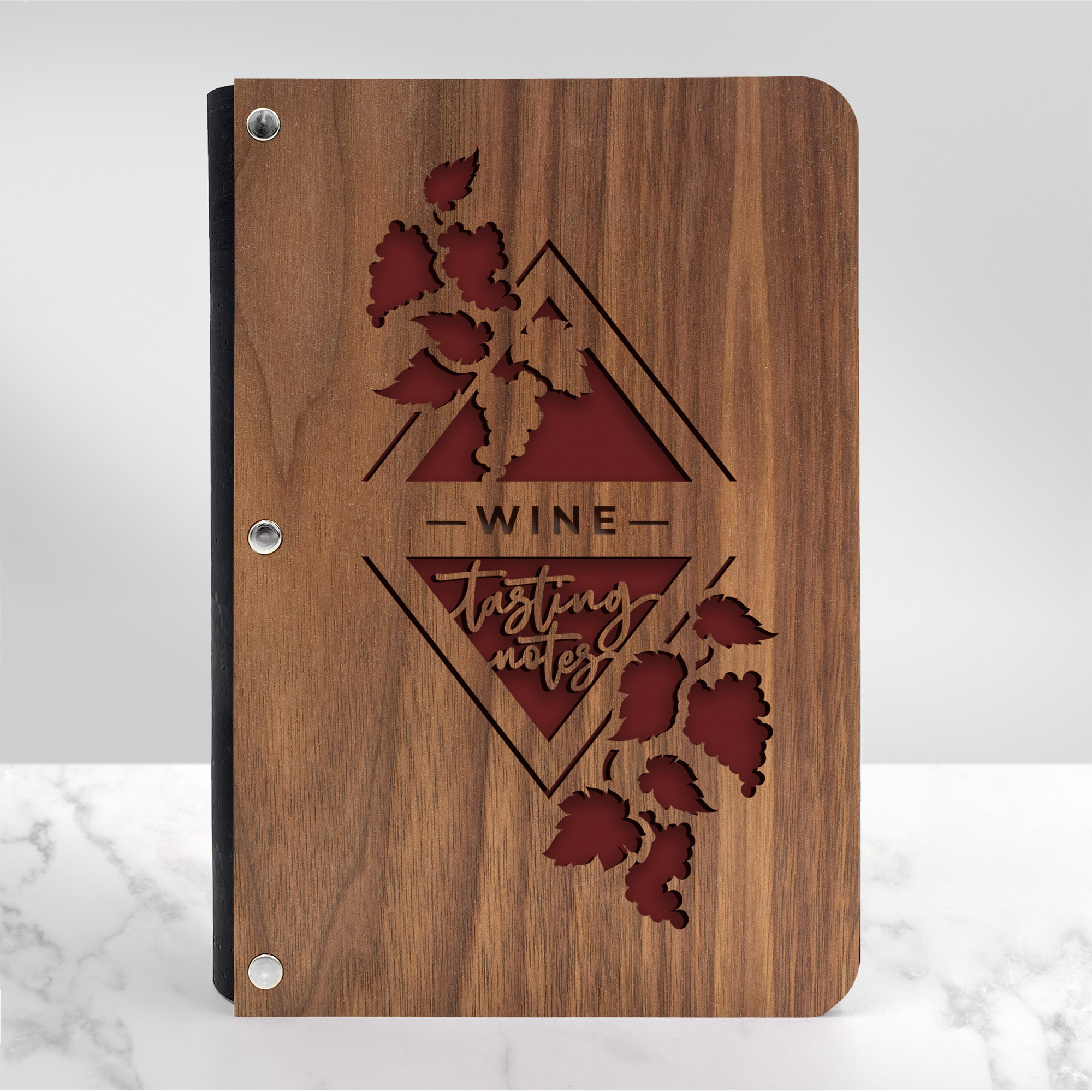 Clink your glasses, toast great times, and transport yourself to a sun-soaked vineyard! Whether a novice or a true wine connoisseur, you will treasure taking notes in this stunning, wooden wine tasting notes journal!