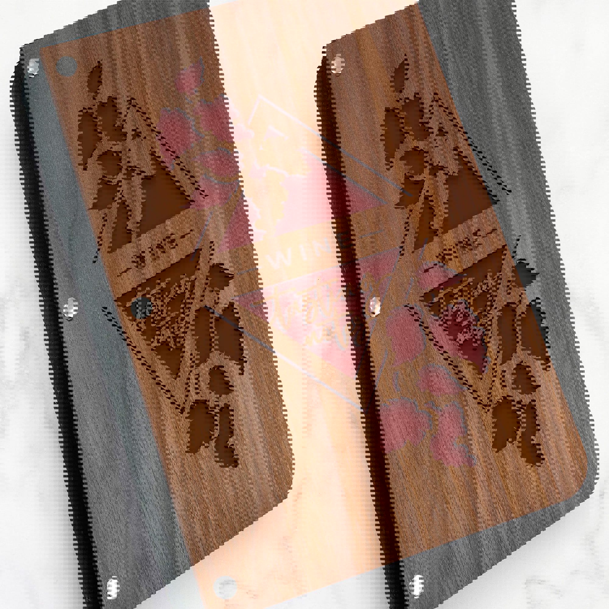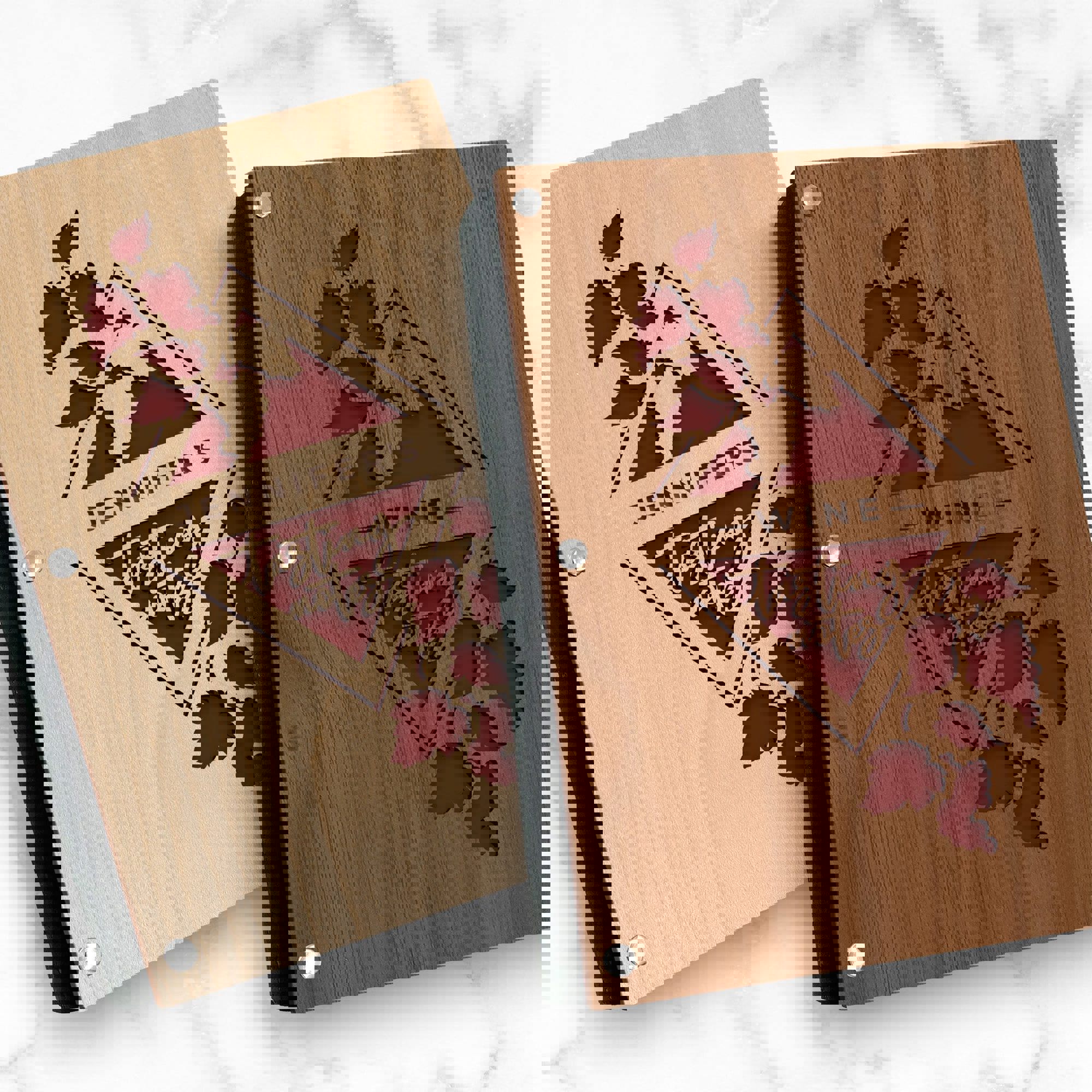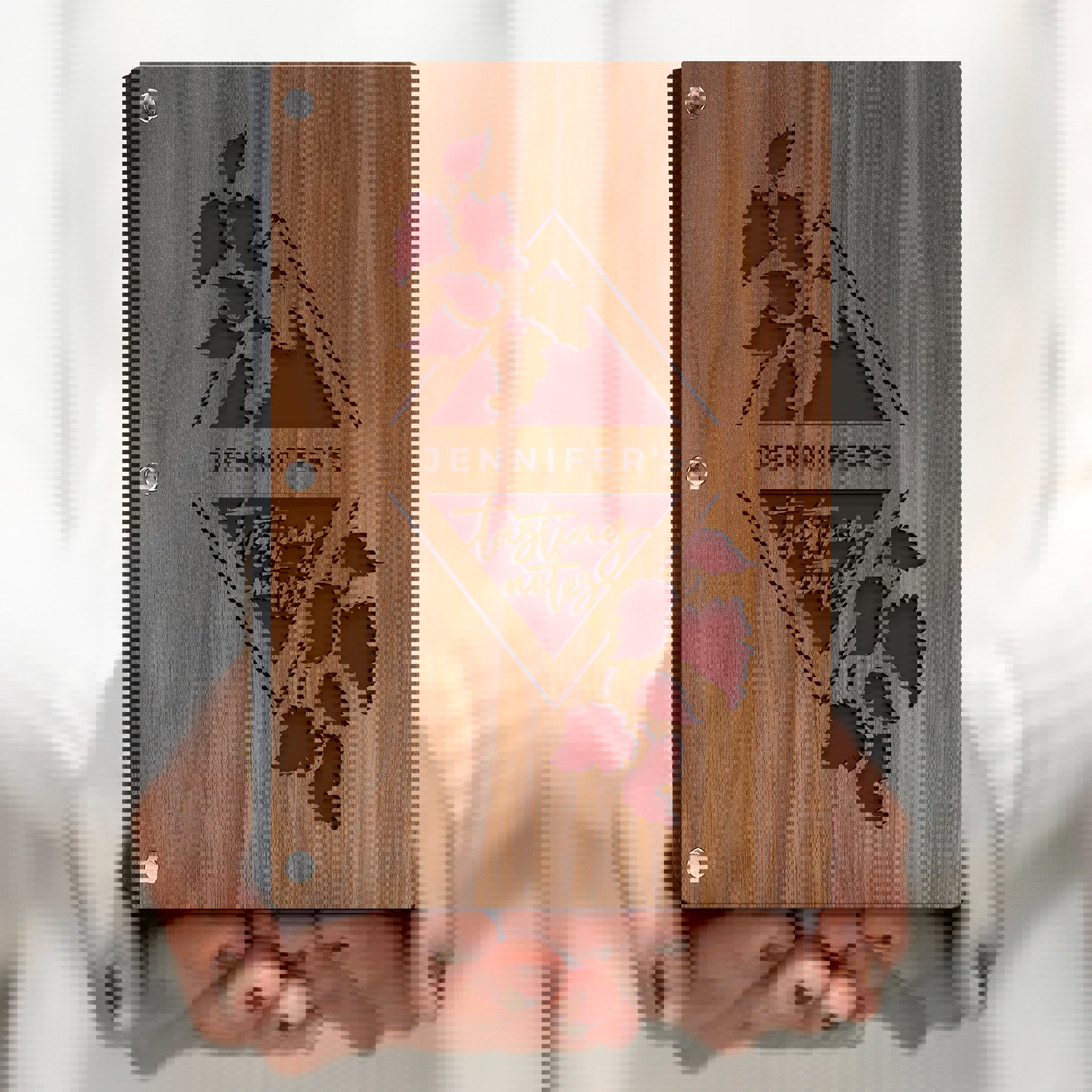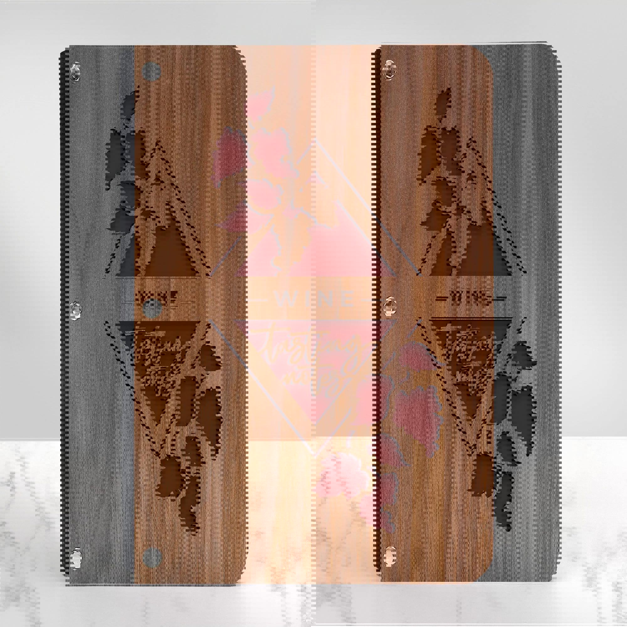 Clink your glasses, toast great times, and transport yourself to a sun-soaked vineyard! Whether a novice or a true wine connoisseur, you will treasure taking notes in this stunning, wooden wine tasting notes journal!