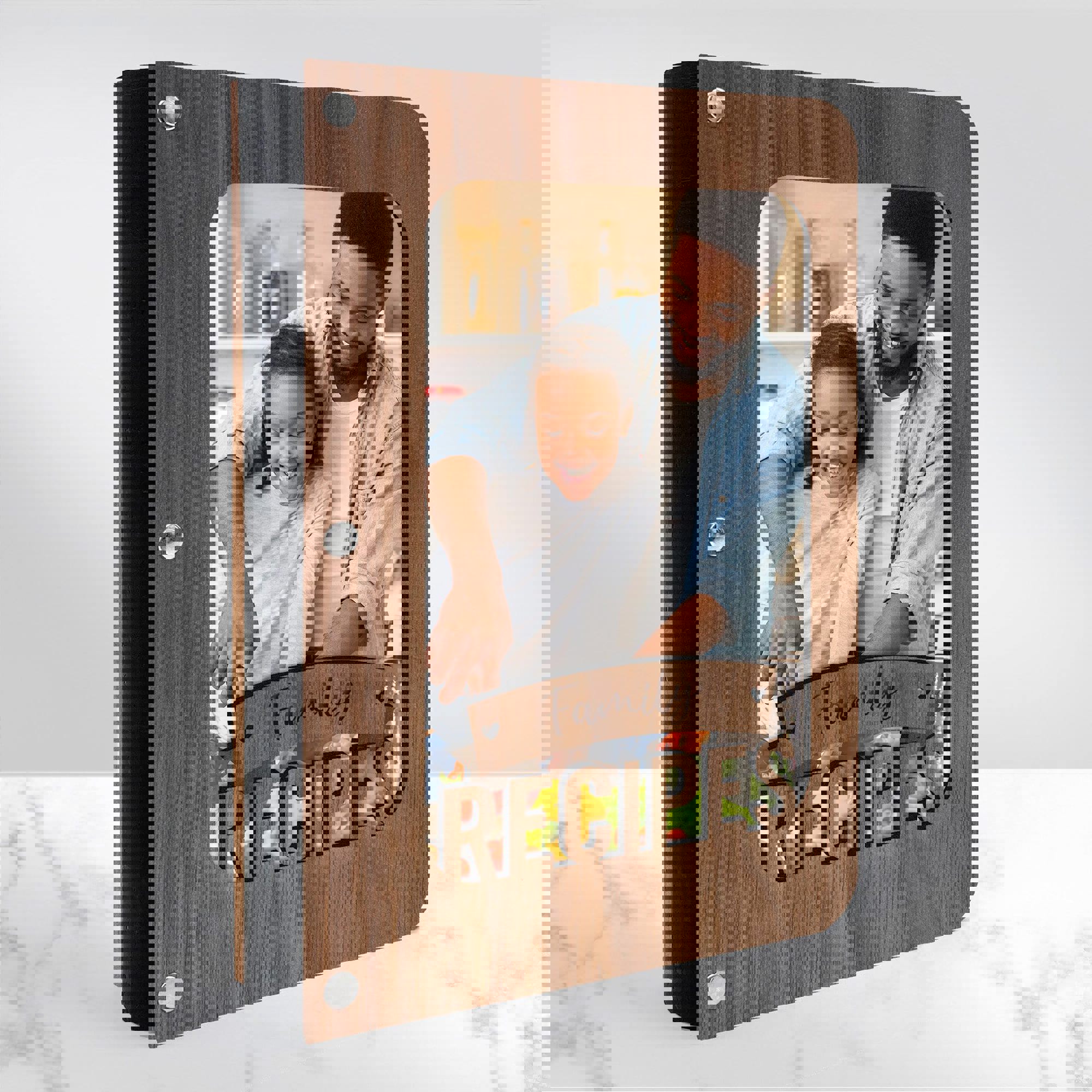 Personalizable: A hard, plastic sleeve on the back of the cover provides a place for a 4" x 6" photo of choice, AND any name can be engraved on the front!