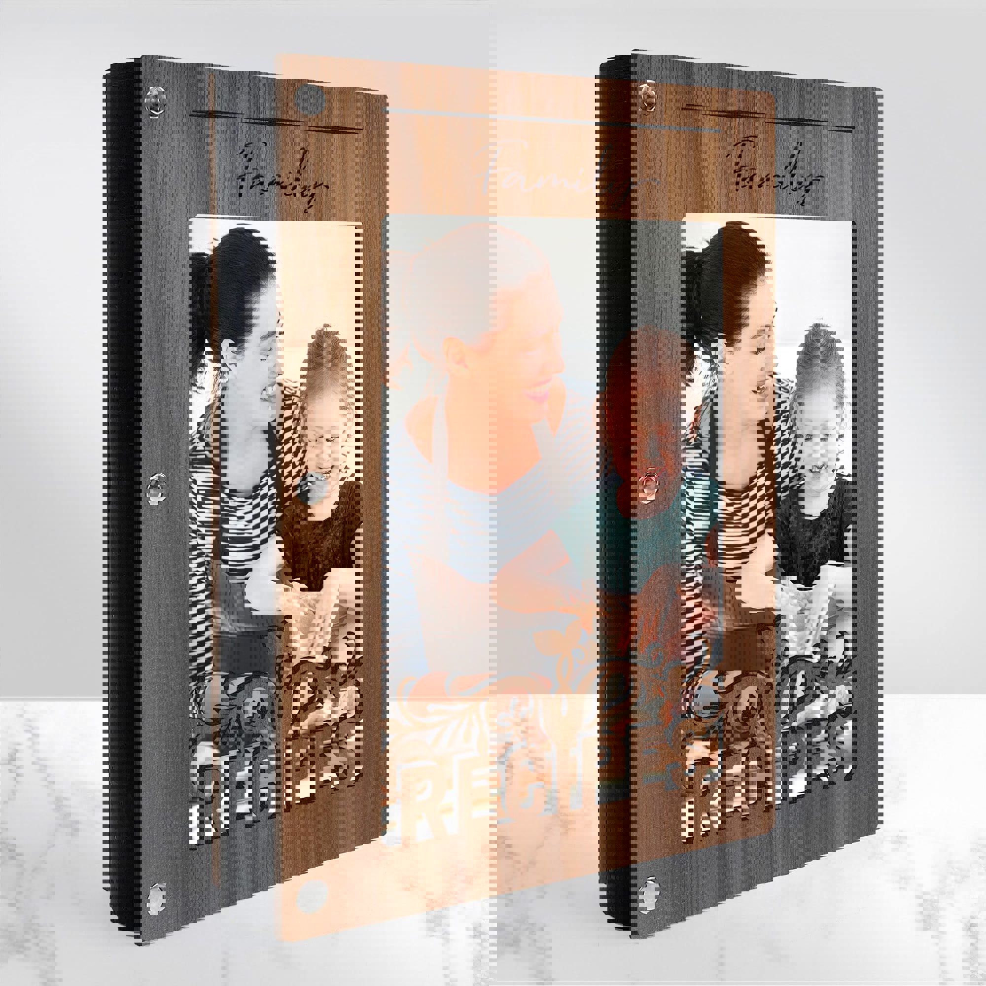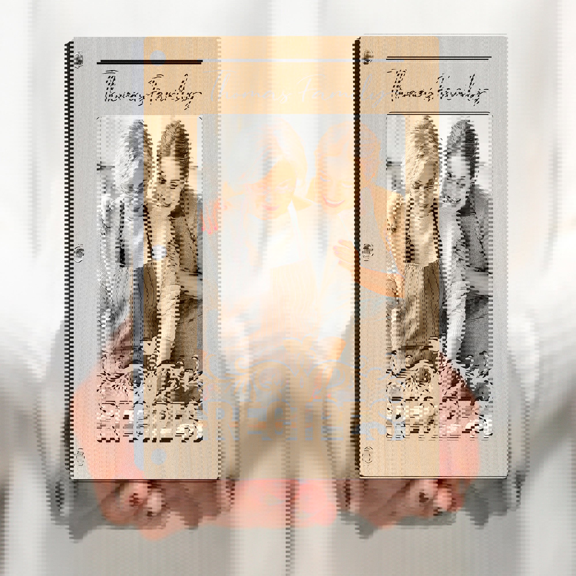Personalized Wood Recipe Book with Photo Sleeve, Harvest Design