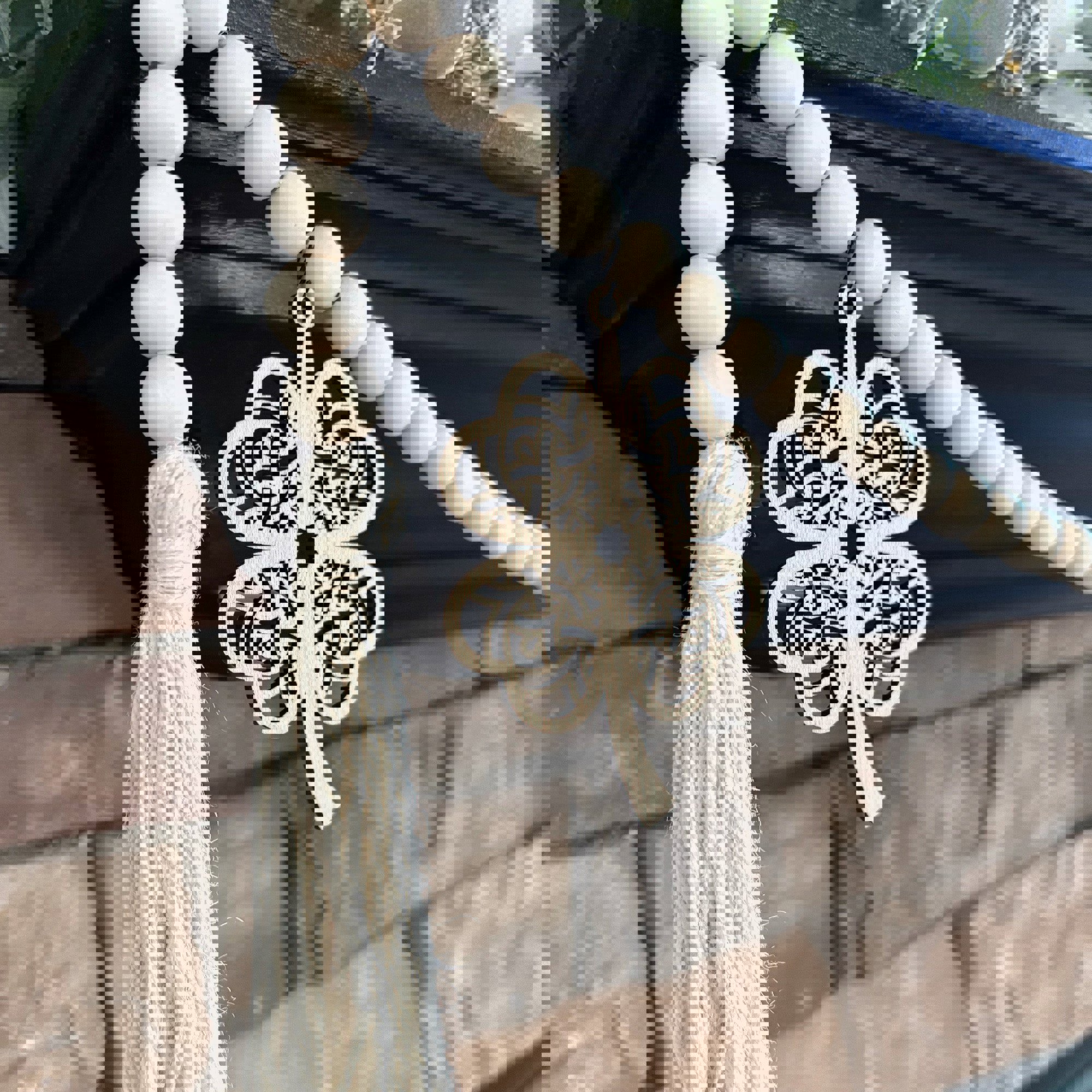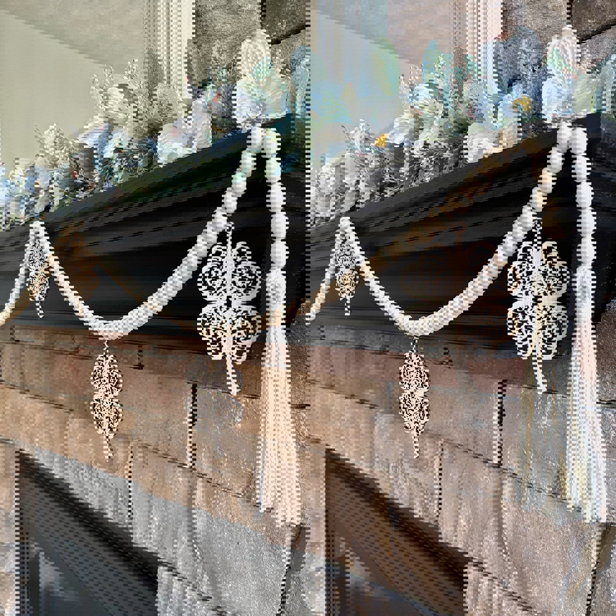 * 76" Natural wood garland with 1/2" beads and 5" tassels.