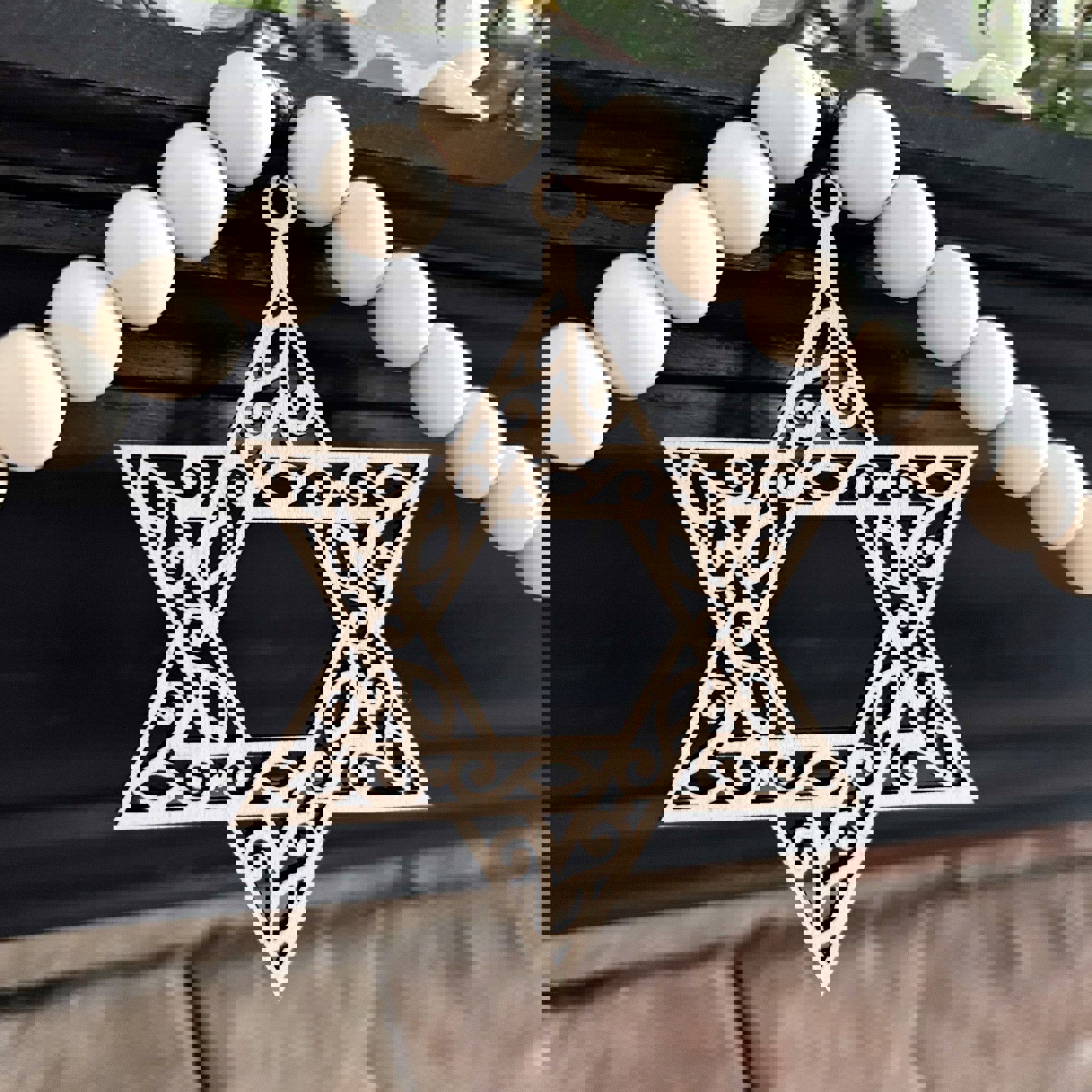 Star of David Wood Bead Garland with Interchangeable Seasonal Charms