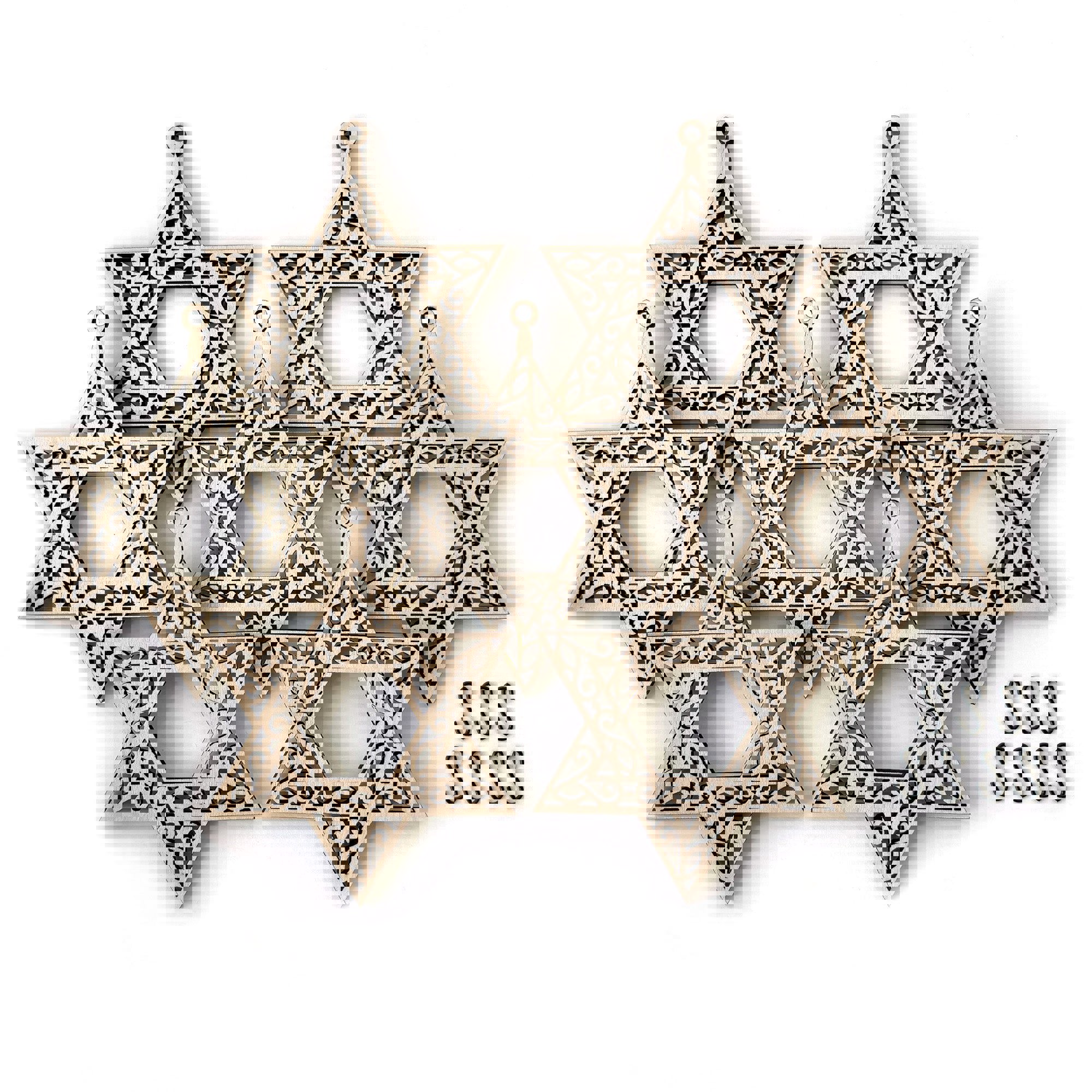 * 7 unique, Star of David charms approximately 3.125" x 4".