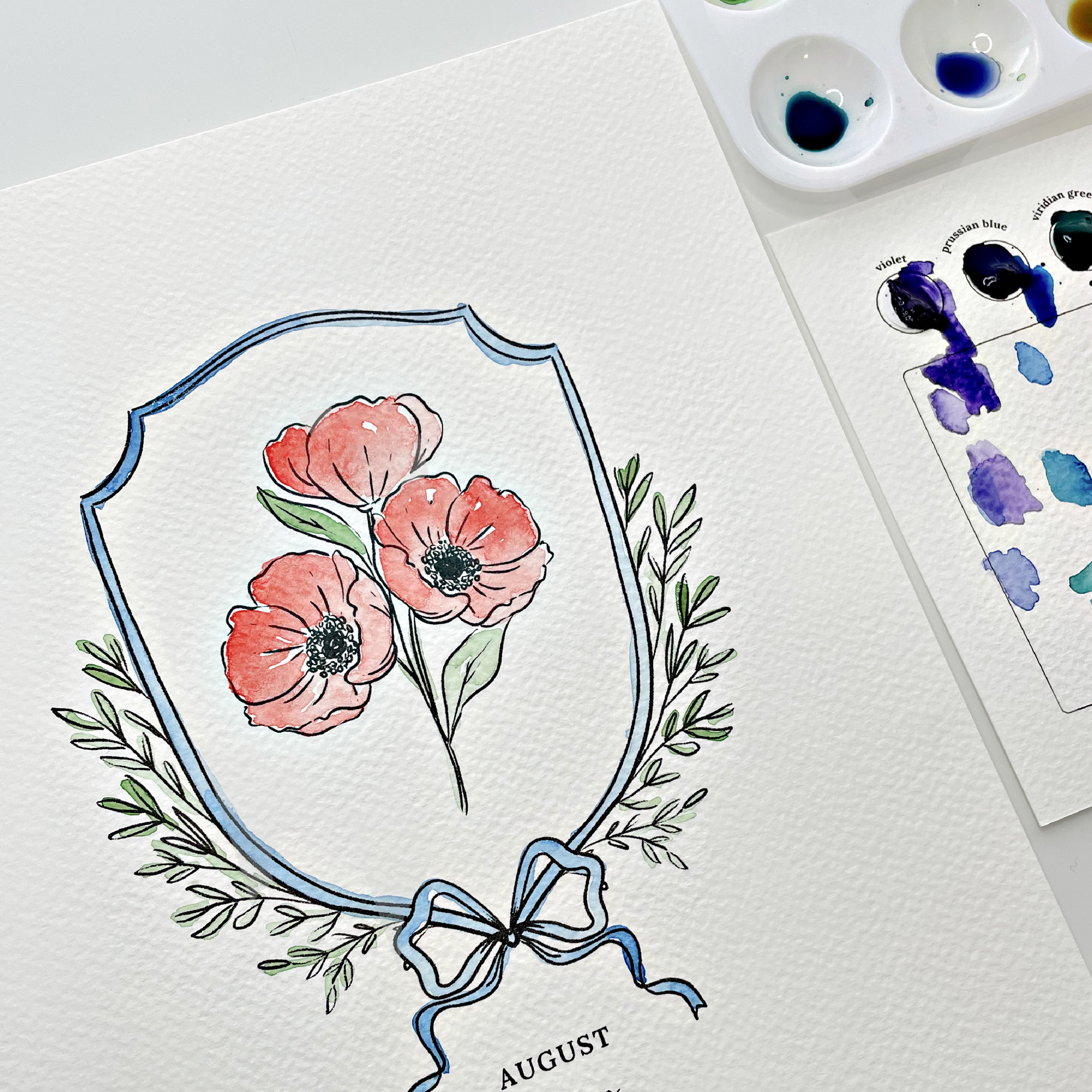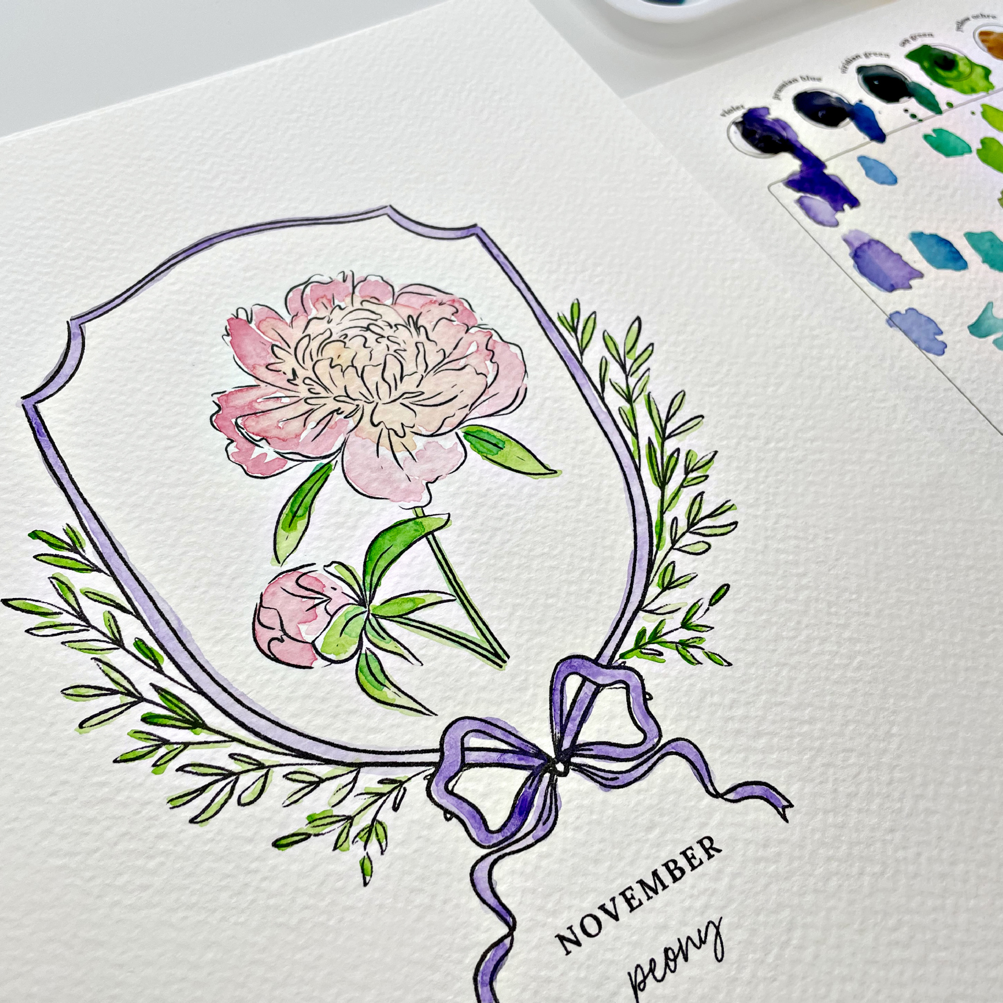This one-of-a-kind keepsake sketched birth flower turned into a fun watercolor paint kit.